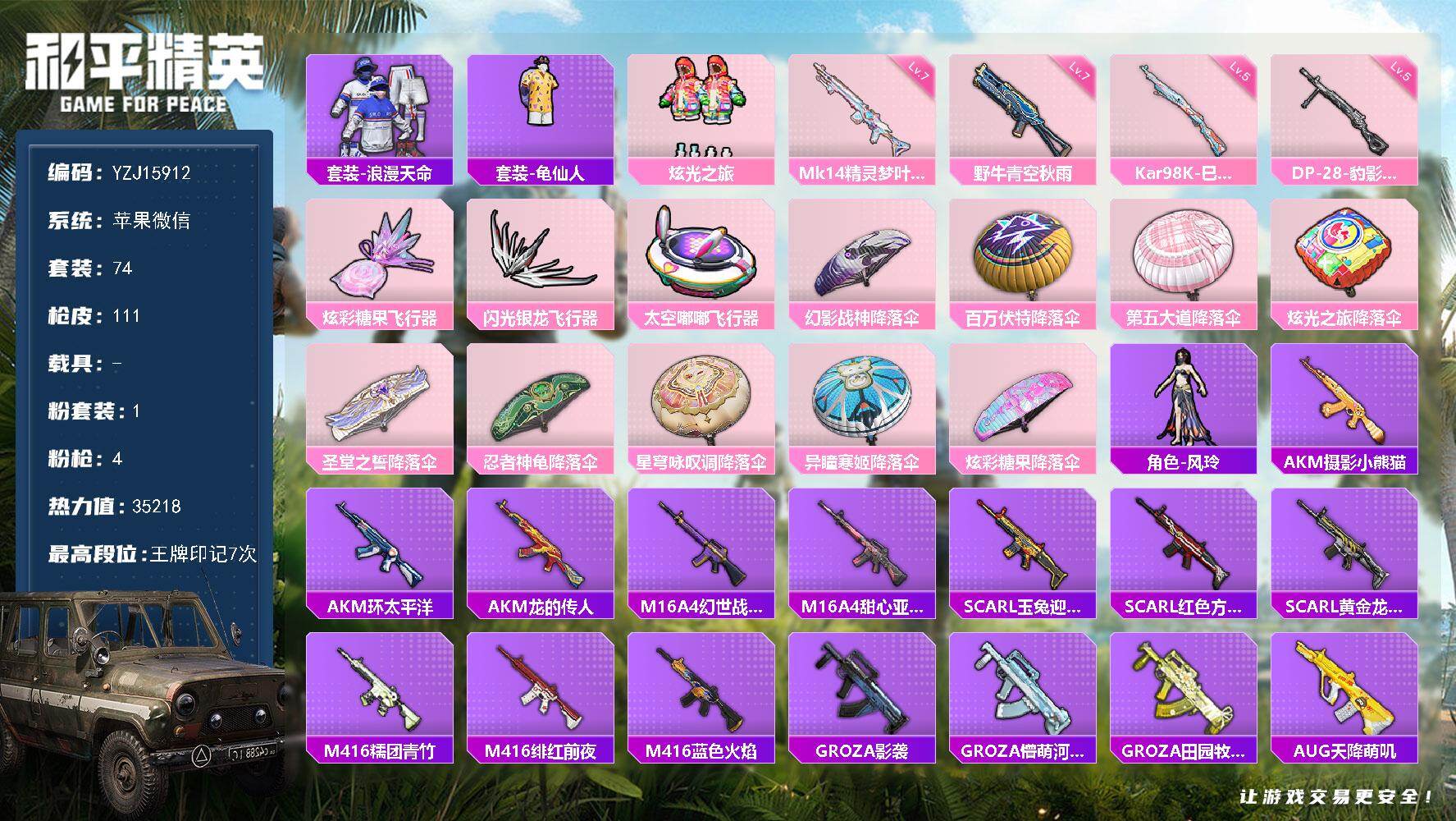 PX_2552811-可二次,苹果V-1稀有1粉装4特效枪3热门74套装111枪皮,35218热力值,极品小号,地铁满天赋,炫光之旅,鲨鱼服,天命,狂沙,满级Mk14精灵梦叶罗丽,满级野牛青空秋雨,7印记,历史超级王牌11星,【1稀有】,浪漫天命,【1粉装】,炫光之旅,【4特效枪】,Kar98K-巳巳如意,(5级),DP-28-豹影疾电,(5级),Mk14-精灵梦叶罗丽,(7级),野牛-青空秋雨,(7级),【3热门】,龟仙人,迅捷狂鲨,狂沙舞者,【2飞行器】,太空嘟嘟飞行器,闪光银龙飞行器,【2头盔】,百万伏特头盔,幻影战神头盔,营地ID:912070047,