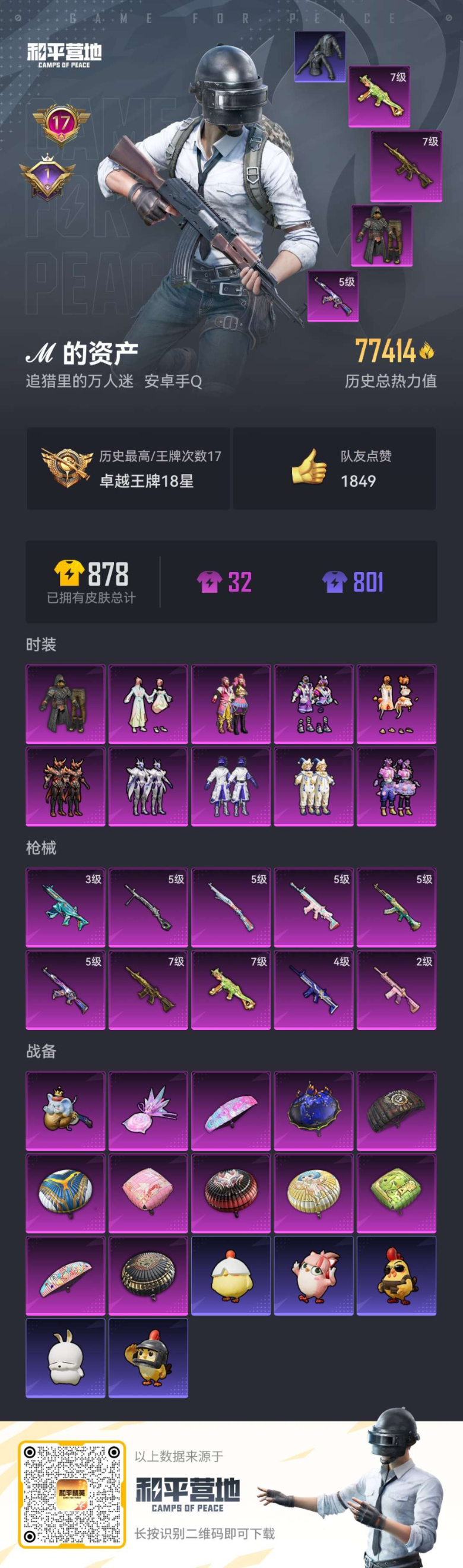 PX_2553324-可二次,苹果Q-4稀有1载具6粉装16特效枪13热门,身法素材,带地铁,满级至情至圣,新101,淑猫,幻影战神,都市,金鞋,天网,蓝螳螂,晶辉眼罩,AG战队服,红眼罩,手雷满级,aug咩咩满级,蜜獾满级,149套装207枪皮,66716热力值,11印记,历史传奇王牌12星,【4稀有】,都市猎人,派对舞王,天网终结者,派对舞王(金靴子),【1载具】,凌风神骏,【6粉装】,梦幻火箭,千金淑猫,异瞳寒姬,幻影战神,星云暗核,莲影清波,【16特效枪】,M416-五爪金龙,(1级),SCAR-L-锦绣绵绵,(5级),M416-电玩时刻,(5级),AKS-74U-森灵之息,(5级),AKM-绿萝繁花,(5级),Kar98K-巳巳如意,(5级),M762-青锋波束,(5级),DP-28-豹影疾电,(5级),AUG-暖羊咩咩,(5级),蜜獾-异瞳寒姬,(7级),UMP45-量子极限,(5级),GROZA-镜光银凌,(5级),M416-至情至圣,(9级),Mk14-福马献瑞,(5级),ACE32-萌骑漫游,(5级),破片手榴弹-招财进宝,(7级),【13热门】,Mark.06,小丑鱼,龟仙人,青涩年华,雪山精英,晶辉守护,梦魇先生,鹰眼刺客,迅捷狂鲨,AG战队服,暗影哥特,忍者信条,漫步者,【3飞行器】,星之彼岸飞行器,繁龙极客飞行器,祥瑞锦鲤飞行器,【2头盔】,梦幻火箭头盔,幻影战神头盔,【2背包】,梦幻火箭背包,幻影战神背包,营地ID:979545866,