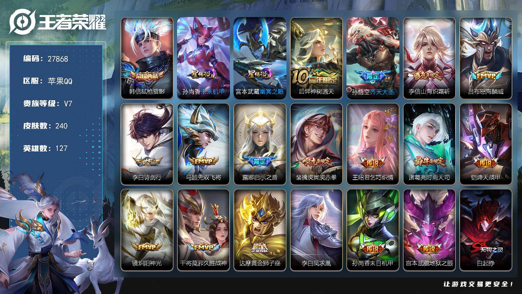 PX_2540299-可换绑【精品推荐·,韩信典藏·李信兔限·齐天大圣·启示之音·时雨天司·凤求凰·安琪拉龙限·傲雪梅抢·神威·冰霜恋舞曲·至尊宝】,5按键,2星传说,16王者印记,五级铭文210,无二次苹果Q-V7-240皮肤-1典藏皮肤-17传说-72史诗【英雄全皮】:孙权全皮,海诺全皮【荣耀典藏】:韩信弑枪猎影【星元皮肤】:宫本武藏幽冥之眼,孙尚香未来机甲【传说皮肤】:后羿神树通天,孙悟空齐天大圣,李信山海炽霜斩,吕布怒海麟威,李白诗剑行,马超无双飞将,露娜启示之音,裴擒虎寅虎赤拳,王昭君乞巧织情,诸葛亮时雨天司,铠绛天战甲,镜炽阳神光,干将莫邪久胜战神,达摩黄金狮子座,李白凤求凰,孙尚香末日机甲,宫本武藏地狱之眼【限定皮肤】:白起狰,狄仁杰阴阳师,赵云皇家上将,墨子神迹守卫,孙尚香蔷薇恋人,高渐离死亡摇滚,阿轲迷踪丽影,钟无艳超时空战士,元歌云间偶戏,元歌无心,甄姬落雪兰心,典韦穷奇,马可波罗暗影游猎,狄仁杰魔术师,狄仁杰万华元夜,达摩沙漠行僧,项羽海滩派对,老夫子醍醐杖,老夫子航海奇遇记,关羽冰锋战神,程咬金演武夺筹,露娜启示之音,刘邦夺宝奇兵,韩信逐梦之影,韩信傲雪梅枪,兰陵王金庭之子,花木兰默契交锋,亚瑟潮玩骑士王,孙悟空至尊宝,孙悟空齐天大圣,后羿辉光之辰,李元芳银河之约,李元芳云中旅人,钟馗驱傩正仪,干将莫邪冰霜恋舞曲,雅典娜黎明之约,蔡文姬繁星吟游,太乙真人饕餮,太乙真人华丽摇滚,鬼谷子原初探秘者,鬼谷子五谷丰年,诸葛亮时雨天司,黄忠火炮绅士,苏烈千军破阵,百里玄策原初追逐者,弈星混沌棋,梦奇顽趣,沈梦溪星空之诺,沈梦溪大漠名商,明世隐疑决卦,裴擒虎李小龙,裴擒虎寅虎赤拳,裴擒虎擒涛扼浪,狂铁御狮,云中君纤云弄巧,李信山海炽霜斩,猪八戒西部大镖客,嫦娥暖冬兔眠,鲁班大师探海日志,桑启海盐诗旅,暃星界游侠,张良古海寻踪,蒙恬荣光圣徽,高渐离燃音魔法,妲己灵卜魔法,鬼谷子天穹祈灯,安琪拉乘龙聚宝船,沈梦溪龙舞盛年,刘邦剑破天穹,海诺心动手记,刘备异域游侠【年限皮肤】:李白凤求凰,后羿辉光之辰,诸葛亮时雨天司,裴擒虎寅虎赤拳,李信山海炽霜斩,安琪拉乘龙聚宝船【赛季限定】:白起狰,太乙真人饕餮,典韦穷奇,狂铁御狮,弈星混沌棋,明世隐疑决卦,老夫子醍醐杖,鬼谷子原初探秘者,狄仁杰万华元夜,程咬金演武夺筹,钟馗驱傩正仪,苏烈千军破阵,达摩沙漠行僧,兰陵王金庭之子,沈梦溪大漠名商,李元芳云中旅人,桑启海盐诗旅,裴擒虎擒涛扼浪,鲁班大师探海日志,张良古海寻踪,鬼谷子天穹祈灯,刘邦剑破天穹,钟馗虚灵犬护,甄姬逆浪荇歌,亚瑟荣光之誓,百里玄策原初追逐者,雅典娜黎明之约,梦奇顽趣,蒙恬荣光圣徽【战令限定】:李元芳银河之约,沈梦溪星空之诺,阿轲迷踪丽影,刘邦夺宝奇兵,马可波罗暗影游猎,猪八戒西部大镖客,元歌云间偶戏,亚瑟潮玩骑士王,老夫子航海奇遇记,墨子神迹守卫,黄忠火炮绅士,钟无艳超时空战士,甄姬落雪兰心,暃星界游侠,嫦娥暖冬兔眠,高渐离燃音魔法,妲己灵卜魔法,周瑜线条小狗【史诗皮肤】:周瑜线条小狗,女娲万灵启世,西施织梦人,黄忠百相守梦,后羿石田雨龙,扁鹊灵蛊蚀心,狂铁龙之律动,弈星万物之道,黄忠怒海争锋,海诺心动手记,安琪拉乘龙聚宝船,蒙恬荣光圣徽,高渐离燃音魔法,妲己灵卜魔法,暃星界游侠,梦奇顽趣,元歌无心,鬼谷子五谷丰年,钟无艳超时空战士,澜赏金猎手,夏洛特永昼,韩信傲雪梅枪,雅典娜黎明之约,黄忠火炮绅士,老夫子航海奇遇记,百里玄策热力回旋,花木兰默契交锋,元歌云间偶戏,云中君纤云弄巧,裴擒虎李小龙,百里玄策原初追逐者,马可波罗暗影游猎,马超神威,橘右京修罗,阿轲迷踪丽影,不知火舞魅语,娜可露露晚萤,李元芳银河之约,蔡文姬繁星吟游,狄仁杰鹰眼统帅,干将莫邪冰霜恋舞曲,孙策猫狗日记,阿轲节奏热浪,白起星夜王子,程咬金功夫厨神,李元芳逐浪之夏,刘禅天才门将,铠曙光守护者,百里守约特工魅影,后羿辉光之辰,雅典娜冰冠公主,亚瑟心灵战警,诸葛亮黄金分割率,兰陵王暗隐猎兽者,夏侯惇乘风破浪,韩信逐梦之影,刘邦德古拉伯爵,花木兰水晶猎龙者,孙悟空至尊宝,关羽冰锋战神,韩信白龙吟,张飞乱世虎臣,曹操幽灵船长,妲己魅力维加斯,嬴政暗夜贵公子,孙尚香水果甜心,孙尚香蔷薇恋人,宫本武藏鬼剑武藏,廉颇地狱岩魂,狄仁杰魔术师,赵云皇家上将,阿轲暗夜猫娘,露娜紫霞仙子,项羽苍穹之光【其他皮肤】:兰陵王雾影缉谜,蚩奼极光幻客,艾琳鹤鸣心笺,孙权径山谋武,亚瑟荣光之誓,哪吒罗小黑战记,鬼谷子克喵,莱西奥踏浪烽翎,庄周锦麟游梦,云中君云械蓝图,甄姬逆浪荇歌,白起死霸装,姬小满小满鸭,露娜命运加冕,阿古朵布丁狗之约,钟馗虚灵犬护,戈娅玫蓝誓约,姜子牙星梦巡礼,影魅影绮裳,刘备异域游侠,大司命暗都幽影,刘邦剑破天穹,沈梦溪龙舞盛年,亚瑟鸿运当头,廉颇功夫炙烤,朵莉亚金色潮汐,海诺时空谍影,妲己灵卜魔法,鬼谷子天穹祈灯,后羿完美运算,亚连破局者,张良古海寻踪,鲁班大师探海日志,莱西奥西部游侠,裴擒虎擒涛扼浪,赵怀真太极少年,白起乐园追猎者,牛魔牛运亨通,猪八戒潮玩探月行,海月幻泉雾影,嫦娥暖冬兔眠,桑启海盐诗旅,戈娅危途狂花,刘备潮玩造梦师,李元芳云中旅人,甄姬落雪兰心,蒙恬蔚蓝守将,沈梦溪大漠名商,刘禅唤灵魔甲,兰陵王金庭之子,达摩沙漠行僧,苏烈千军破阵,鲁班大师乓乓大师,墨