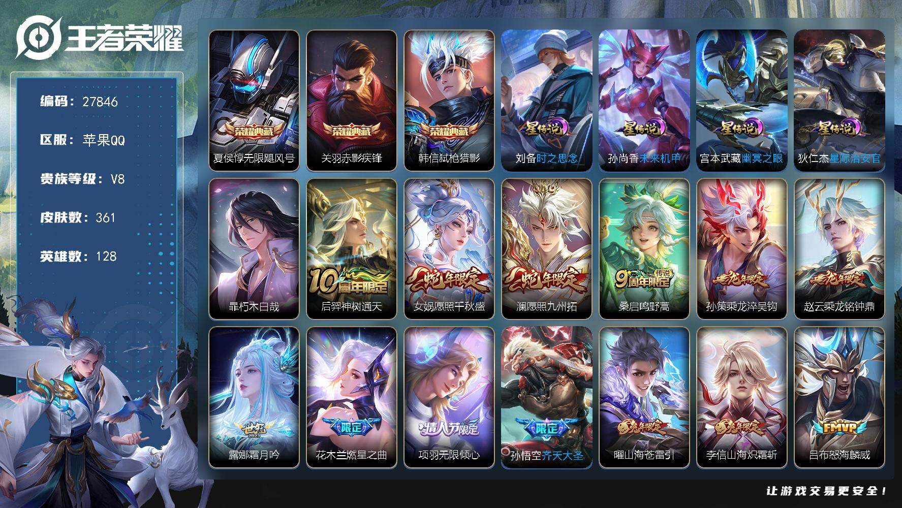 PX_2537879-可换绑【极品战力号·全国一万强打野对抗路·小国影1.32w·省50马超1.32w·金标猪八戒曹操少司缘·3个马限·琥珀纪元·遇见神鼓·浮生妄·燃星之曲·齐天大圣·年薪李信·启示之音·龙胆】,4673星币,幸运值324,8按键,2星传说,12王者印记,五级铭文100,无二次,苹果Q-V8-206皮肤-28传说-60史诗【英雄全皮】:敖隐全皮,蒙恬全皮【小国标】:小国标影【星元皮肤】:貂蝉金色仲夏夜,宫本武藏幽冥之眼【传说皮肤】:云缨神骥越千峰,狄仁杰神骥赴朔漠,马超神骥逐星野,花木兰异界灵契,曹操万灵伏威,桑启鸣野蒿,马超琥珀纪元,露娜霜月吟,吕布遇见神鼓,澜电玩雷克斯,夏洛特浮生妄,花木兰燃星之曲,孙悟空齐天大圣,李信山海炽霜斩,李白诗剑行,后羿无尽星芒,马超无双飞将,露娜启示之音,裴擒虎寅虎赤拳,赵云淬星耀世,李元芳飞鸢探春,镜炽阳神光,虞姬启明星使,李信一念神魔,达摩黄金狮子座,梦奇胖达荣荣,貂蝉仲夏夜之梦,宫本武藏地狱之眼【限定皮肤】:姜子牙天穹之誓,狄仁杰阴阳师,赵云皇家上将,赵云引擎之心,赵云龙胆,孙尚香蔷薇恋人,扁鹊奇幻香踪,白起夜都怪侠,吕布遇见神鼓,狄仁杰魔术师,项羽海滩派对,露娜启示之音,王昭君午后时光,兰陵王金庭之子,花木兰默契交锋,花木兰燃星之曲,孙悟空齐天大圣,后羿无尽星芒,刘备百相守梦,李元芳云中旅人,虞姬启明星使,杨戬潮玩骑兵,鬼谷子五谷丰年,铠青龙志,苏烈玄武志,百里玄策原初追逐者,梦奇顽趣,沈梦溪大漠名商,明世隐吟游魔法,裴擒虎寅虎赤拳,裴擒虎擒涛扼浪,狂铁电玩高手,云中君纤云弄巧,李信山海炽霜斩,嫦娥拒霜思,嫦娥暖冬兔眠,鲁班大师探海日志,桑启海盐诗旅,夏洛特浮生妄,暃星界游侠,阿古朵江河有灵,张良古海寻踪,蒙犽百解令,蒙恬荣光圣徽,鬼谷子天穹祈灯,马超琥珀纪元,姬小满妄想食味,沈梦溪龙舞盛年,刘邦剑破天穹,周瑜熔金海岸【年限皮肤】:苏烈玄武志,铠青龙志,裴擒虎寅虎赤拳,李信山海炽霜斩【赛季限定】:兰陵王金庭之子,沈梦溪大漠名商,李元芳云中旅人,桑启海盐诗旅,裴擒虎擒涛扼浪,鲁班大师探海日志,张良古海寻踪,鬼谷子天穹祈灯,刘邦剑破天穹,姜子牙天穹之誓,钟馗虚灵犬护,甄姬逆浪荇歌,亚瑟荣光之誓,百里玄策原初追逐者,梦奇顽趣,蒙恬荣光圣徽,牛魔星界战将,项羽九幽镇关【战令限定】:明世隐吟游魔法,白起夜都怪侠,狂铁电玩高手,王昭君午后时光,暃星界游侠,嫦娥暖冬兔眠,扁鹊奇幻香踪,杨戬潮玩骑兵,莱西奥光弋星穹,明世隐往忆晖光,周瑜线条小狗,小乔线条小狗【史诗皮肤】:周瑜线条小狗,小乔线条小狗,项羽九幽镇关,少司缘巫礼祀神,女娲万灵启世,莱西奥光弋星穹,后羿石田雨龙,扁鹊灵蛊蚀心,狂铁龙之律动,牛魔星界战将,少司缘涂山红红,姬小满妄想食味,蒙恬荣光圣徽,蒙犽百解令,阿古朵江河有灵,刘禅电玩爆裂旋风,刘备百相守梦,扁鹊奇幻香踪,杨玉环银翎春语,暃星界游侠,梦奇顽趣,鬼谷子五谷丰年,狂铁电玩高手,明世隐吟游魔法,澜赏金猎手,嫦娥拒霜思,西施诗语江南,花木兰默契交锋,云中君纤云弄巧,百里玄策原初追逐者,赵云龙胆,瑶遇见神鹿,橘右京修罗,公孙离无限星赏官,狄仁杰鹰眼统帅,苏烈玄武志,铠青龙志,阿轲节奏热浪,白起星夜王子,程咬金功夫厨神,雅典娜冰冠公主,夏侯惇乘风破浪,刘邦德古拉伯爵,花木兰水晶猎龙者,赵云引擎之心,吕布末日机甲,曹操幽灵船长,吕布圣诞狂欢,墨子金属风暴,妲己女仆咖啡,妲己魅力维加斯,孙尚香水果甜心,孙尚香蔷薇恋人,宫本武藏鬼剑武藏,廉颇地狱岩魂,狄仁杰魔术师,王昭君偶像歌手,甄姬冰雪圆舞曲,赵云未来纪元,赵云皇家上将,露娜紫霞仙子【其他皮肤】:蒙恬苍云破阵,安琪拉糖果风暴,虞姬溯影追猎,蚩奼极光幻客,曹操逐霄之志,艾琳鹤鸣心笺,明世隐往忆晖光,亚瑟荣光之誓,甄姬逆浪荇歌,露娜命运加冕,阿古朵布丁狗之约,钟馗虚灵犬护,姜子牙星梦巡礼,影魅影绮裳,周瑜熔金海岸,姜子牙天穹之誓,大司命暗都幽影,刘邦剑破天穹,钟无艳春野之旅,沈梦溪龙舞盛年,廉颇功夫炙烤,嫦娥漠中幻影,鬼谷子天穹祈灯,亚连破局者,钟无艳聚星闪耀,张良古海寻踪,李元芳妄想特派,鲁班大师探海日志,莱西奥西部游侠,太乙真人劲辣红锅,杨戬潮玩骑兵,裴擒虎擒涛扼浪,赵怀真太极少年,白起乐园追猎者,猪八戒潮玩探月行,海月幻泉雾影,嫦娥暖冬兔眠,桑启海盐诗旅,戈娅危途狂花,李元芳云中旅人,蒙恬蔚蓝守将,沈梦溪大漠名商,王昭君午后时光,刘禅唤灵魔甲,兰陵王金庭之子,白起夜都怪侠,程咬金无双福将,鲁班大师乓乓大师,盾山圆桌骑士,哪吒次元突破,沈梦溪鲨炮海盗猫,小乔丁香结,明世隐虹云星官,大乔守护之力,鬼谷子幻乐之宴,老夫子功夫老勺,王昭君幻想奇妙夜,钟无艳海滩丽影,关羽龙腾万里,李元芳黑猫爱糖果,刘备汉昭烈帝,狄仁杰阴阳师,刘备万事如意,甄姬花好人间,张飞五福同心,花木兰兔女郎,达摩拳王,亚瑟死亡骑士,典韦黄金武士,姜子牙时尚教父,安琪拉玩偶对对碰,宫本武藏未来纪元,扁鹊化身博士,白起白色死神,赵云忍炎影,赵云白执事,达摩大发明家,阿轲爱心护理,露娜哥特玫瑰,韩信街头霸王,韩信教廷特使,项羽海滩派对,暃碧珀绯影,金蝉前尘,云缨赤焰之缨,司空震启蛰,澜孤猎,蒙恬秩序猎龙将,镜冰刃幻境,西施归虚梦演,马超幸存者,曜归虚梦演,盘古创世神祝,嫦娥露花倒影,李信灼热之刃,沈梦溪棒球奇才,