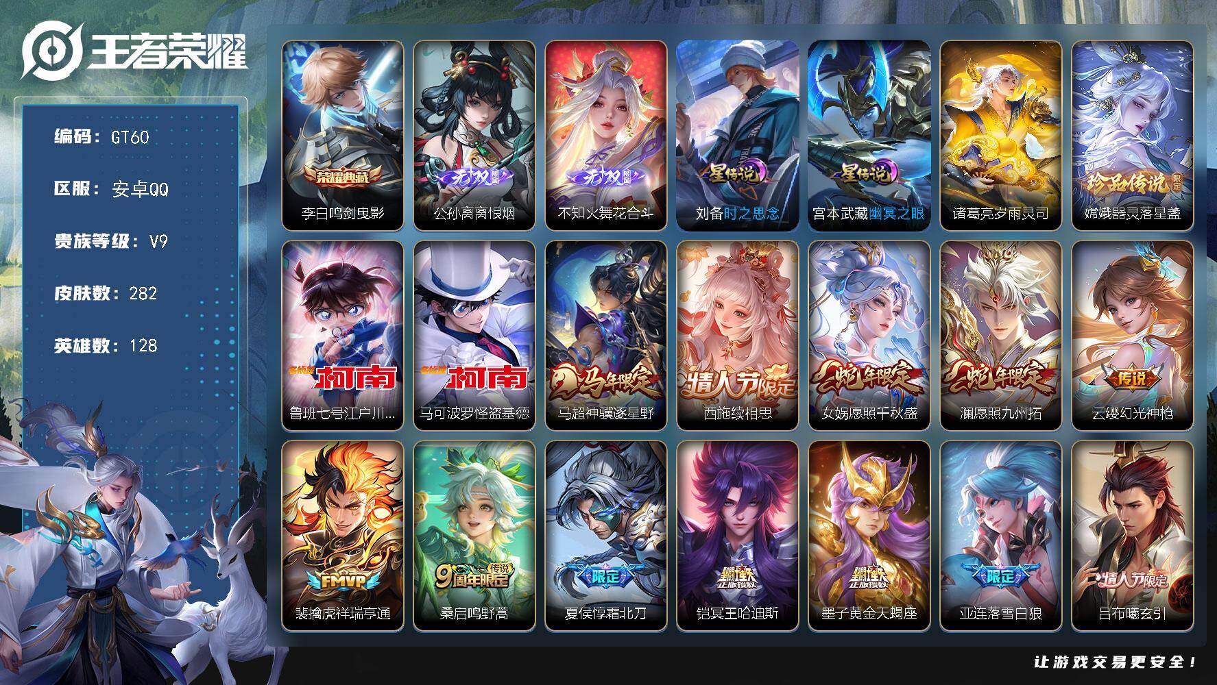 PX_2557643-可换绑【精品v9多限定号·龙年全套·公孙离火舞双无双·三珍品怪盗基德江户川柯南·李白典藏·续相思·冥王哈迪斯·黄金天蝎座·浮生妄·狄仁杰神器·祈雪灵祝·傲雪梅枪·如梦令·贵族积分13w】,32按键,3星传说,7王者印记,120五级铭文,无二次安卓Q-V9-282皮肤-1典藏皮肤-2无双-3珍品传说-41传说-98史诗【英雄全皮】:敖隐全皮,夏洛特全皮,海诺全皮【荣耀典藏】:李白鸣剑曳影【无双皮肤】:公孙离离恨烟,不知火舞花合斗【珍品传说】:嫦娥器灵落星盏,鲁班七号江户川柯南,马可波罗怪盗基德【星元皮肤】:诸葛亮岁雨灵司,刘备时之思念,宫本武藏幽冥之眼【传说皮肤】:马超神骥逐星野,西施续相思,女娲愿照千秋盛,澜愿照九州拓,云缨幻光神枪,裴擒虎祥瑞亨通,桑启鸣野蒿,夏侯惇霜北刀,铠冥王哈迪斯,墨子黄金天蝎座,亚连落雪白狼,吕布曦玄引,孙尚香乘龙问璇玑,孙策乘龙淬吴钩,赵云乘龙铭钟鼎,澜逐花归海,露娜霜月吟,马可波罗妄想实况,东皇太一灼幽烈阳,公孙离记忆之芯,夏洛特浮生妄,干将莫邪画中仙,吕布怒海麟威,李白诗剑行,狄仁杰神器狴犴令,马超无双飞将,裴擒虎寅虎赤拳,李元芳飞鸢探春,公孙离祈雪灵祝,诸葛亮时雨天司,镜炽阳神光,虞姬启明星使,曜云鹰飞将,李信一念神魔,刘备时之恋人,张良黄金白羊座,梦奇胖达荣荣,后羿黄金射手座,貂蝉仲夏夜之梦,宫本武藏地狱之眼,狄仁杰超时空战士【限定皮肤】:公孙离离恨烟,夏侯惇霜北刀,铠冥王哈迪斯,暃埋骨钱,蒙犽顽岩魄,蔡文姬夏日便利店,大乔绒语心约,虞姬夏日便利店,姜子牙天穹之誓,李白谪仙醉月,狄仁杰阴阳师,廉颇寅虎御盾,赵云皇家上将,赵云龙胆,赵云百木心枪,吕布猎兽之王,夏侯惇匿光决锋者,曹操天狼征服者,典韦岱宗,马可波罗妄想实况,狄仁杰魔术师,狄仁杰神器狴犴令,项羽海滩派对,韩信傲雪梅枪,兰陵王驯魔猎人,孙悟空至尊宝,孙悟空孙行者,后羿如梦令,刘备百相守梦,张飞虎魄,李元芳匿光侦查者,虞姬启明星使,钟馗神迹守卫,哪吒逐梦之翼,干将莫邪胡桃夹子,干将莫邪画中仙,蔡文姬繁星吟游,诸葛亮时雨天司,梦奇顽趣,公孙离祈雪灵祝,裴擒虎李小龙,裴擒虎寅虎赤拳,狂铁电玩高手,云中君纤云弄巧,盾山梦圆繁星,猪八戒猪悟能,嫦娥拒霜思,嫦娥暖冬兔眠,蒙犽狂想玩偶喵,鲁班大师探海日志,夏洛特浮生妄,艾琳流音漫舞,司空震地狱燃心,阿古朵江河有灵,张良古海寻踪,蒙犽百解令,高渐离燃音魔法,妲己灵卜魔法,鬼谷子天穹祈灯,伽罗琥珀纪元,大乔乘龙忆丹青,安琪拉乘龙聚宝船,孙尚香乘龙问璇玑,孙策乘龙淬吴钩,赵云乘龙铭钟鼎,吕布曦玄引,百里玄策超元猎域,亚连落雪白狼,沈梦溪龙舞盛年,鲁班七号蔬乡物语,李元芳蔬乡物语,刘邦剑破天穹,程咬金群星魔术团,关羽决胜骁骑,镜青焰无极,项羽苍威无极,海诺心动手记,刘备异域游侠,芈月浮光幕影,周瑜熔金海岸,不知火舞花合斗【年限皮肤】:典韦岱宗,公孙离祈雪灵祝,诸葛亮时雨天司,裴擒虎寅虎赤拳,廉颇寅虎御盾,孙尚香乘龙问璇玑,孙策乘龙淬吴钩,赵云乘龙铭钟鼎,大乔乘龙忆丹青,安琪拉乘龙聚宝船,女娲愿照千秋盛,澜愿照九州拓【赛季限定】:鲁班大师探海日志,张良古海寻踪,鬼谷子天穹祈灯,刘邦剑破天穹,姜子牙天穹之誓,东皇太一噬灭天穹,太乙真人谧流熔炉,钟馗虚灵犬护,甄姬逆浪荇歌,梦奇顽趣,牛魔星界战将【战令限定】:吕布猎兽之王,钟馗神迹守卫,兰陵王驯魔猎人,蒙犽狂想玩偶喵,狂铁电玩高手,嫦娥暖冬兔眠,司空震地狱燃心,艾琳流音漫舞,高渐离燃音魔法,妲己灵卜魔法,鲁班七号蔬乡物语,李元芳蔬乡物语,镜青焰无极,项羽苍威无极,蔡文姬夏日便利店,虞姬夏日便利店,亚连破空之剑,孙悟空神迹守卫,百里守约百相守梦,老夫子百相守梦,孙膑茶境仙,马超访茗客,刘禅鸭鸭历险记,沈梦溪鸭鸭历险记,周瑜线条小狗【史诗皮肤】:明世隐百晓客,周瑜线条小狗,后羿石田雨龙,老夫子藏狐褐绒,百里守约雪豹霜爪,狂铁龙之律动,刘禅鸭鸭历险记,阿轲化蝶舞,孙膑茶境仙,牛魔星界战将,百里守约百相守梦,艾琳陌上桑,李白谪仙醉月,亚连破空之剑,姬小满战舞者,大司命东方月初,暃埋骨钱,蒙犽顽岩魄,蔡文姬夏日便利店,芈月浮光幕影,黄忠怒海争锋,海诺心动手记,关羽决胜骁骑,镜青焰无极,鲁班七号蔬乡物语,大乔乘龙忆丹青,安琪拉乘龙聚宝船,百里玄策超元猎域,伽罗琥珀纪元,高渐离燃音魔法,妲己灵卜魔法,蒙犽百解令,阿古朵江河有灵,司空震地狱燃心,李元芳匿光侦查者,刘备百相守梦,梦奇顽趣,盾山梦圆繁星,弈星滕王阁序,狂铁电玩高手,夏侯惇匿光决锋者,澜赏金猎手,赵云百木心枪,夏洛特永昼,廉颇寅虎御盾,韩信傲雪梅枪,嫦娥拒霜思,司马懿暗渊魔法,猪八戒猪悟能,孙悟空孙行者,钟馗乐园奇幻夜,沈梦溪月团寄思,杨戬天秀启明,百里玄策热力回旋,西施诗语江南,云中君纤云弄巧,裴擒虎李小龙,蒙犽狂想玩偶喵,张飞虎魄,孙尚香时之恋人,赵云龙胆,橘右京修罗,小乔青蛇,后羿如梦令,典韦岱宗,蔡文姬繁星吟游,曹操天狼征服者,兰陵王驯魔猎人,狄仁杰鹰眼统帅,阿轲节奏热浪,白起星夜王子,程咬金功夫厨神,李元芳逐浪之夏,刘禅天才门将,哪吒逐梦之翼,铠曙光守护者,亚瑟心灵战警,兰陵王暗隐猎兽者,夏侯惇乘风破浪,刘邦德古拉伯爵,花木兰水晶猎龙者,孙悟空至尊宝,张飞乱世虎臣,吕布末日机甲,李白千年之狐,曹操幽灵船长,