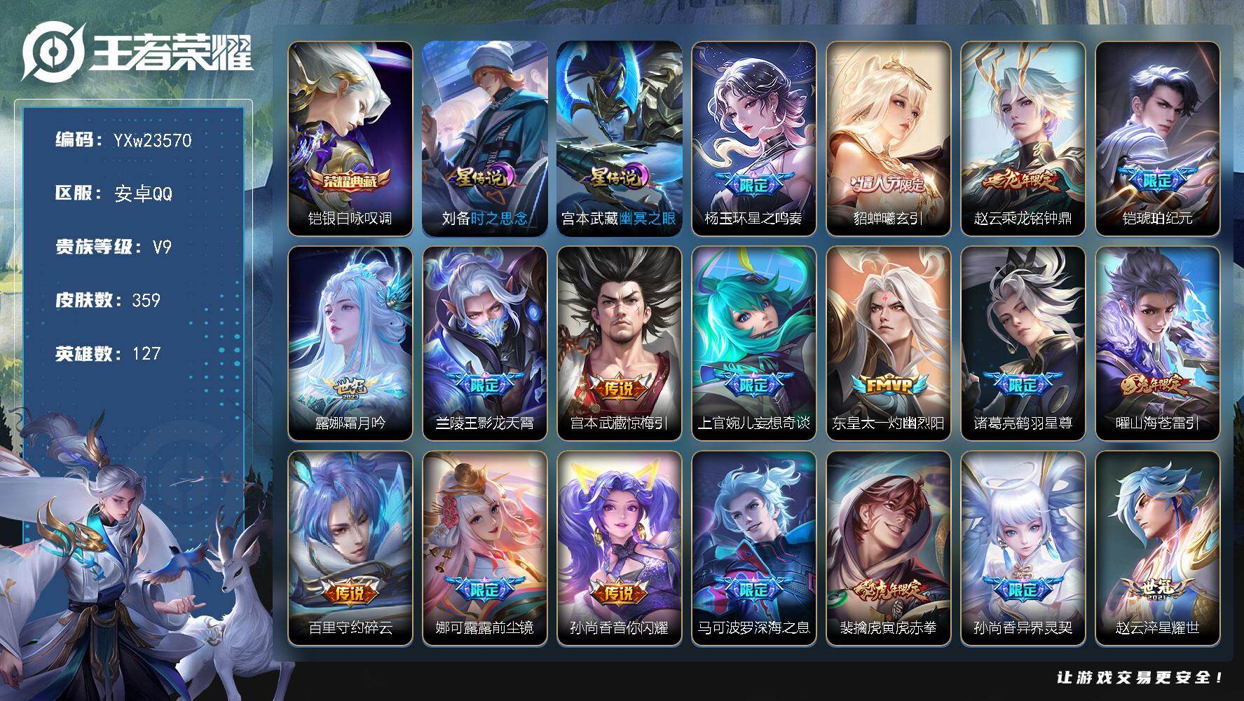 PX_2557013-??主推打野号·银白咏叹调·时之思念·幽冥之眼·乘龙铭钟鼎·影龙天霄·惊梅引·李逍遥·山海苍雷引·鹤羽星尊·前尘镜·寅虎赤拳·深海之息·武陵仙君·云霓雀翎·祈雪灵祝·孙尚香异界灵契·星之鸣奏·貂蝉曦玄引·一念神魔·百木心枪·傲雪梅枪·青龙志·可二次】YXw23570-安卓Q-127英雄-359皮肤-13王者印记-300铭文-贵族积分10w【贵族9】【1典藏·2星传说·33传说·1天幕·6按键】【因赛季更新游戏段付以上号为准!】 【英雄全皮】:娜可露露全皮,敖隐全皮,蒙恬全皮,戈娅全皮 【荣耀典藏】:铠银白咏叹调 【星元皮肤】:宫本武藏幽冥之眼,刘备时之思念 【天幕】:共赏芳华天幕 【传说皮肤】:杨玉环星之鸣奏,貂蝉曦玄引,赵云乘龙铭钟鼎,铠琥珀纪元,露娜霜月吟,兰陵王影龙天霄,宫本武藏惊梅引,上官婉儿妄想奇谈,东皇太一灼幽烈阳,诸葛亮鹤羽星尊,曜山海苍雷引,百里守约碎云,娜可露露前尘镜,孙尚香音你闪耀,马可波罗深海之息,裴擒虎寅虎赤拳,孙尚香异界灵契,赵云淬星耀世,王昭君乞巧织情,曜李逍遥,,李元芳飞鸢探春,公孙离祈雪灵祝,铠绛天战甲,虞姬启明星使,曜云鹰飞将,李信一念神魔,刘备时之恋人,张良黄金白羊座,干将莫邪久胜战神,虞姬云霓雀翎,诸葛亮武陵仙君,宫本武藏地狱之眼,狄仁杰超时空战士 【限定皮肤】:狄仁杰阴阳师,赵云皇家上将,赵云百木心枪,墨子神迹守卫,孙尚香蔷薇恋人,孙尚香异界灵契,庄周高山流水,高渐离死亡摇滚,高渐离玩趣恶龙,钟无艳超时空战士,扁鹊奇幻香踪,白起夜都怪侠,芈月幻夜卜梦,元歌云间偶戏,元歌无心,甄姬女儿国国王,甄姬游园惊梦,甄姬落雪兰心,马可波罗深海之息,狄仁杰魔术师,狄仁杰万华元夜,达摩沙漠行僧,项羽海滩派对,老夫子航海奇遇记,程咬金演武夺筹,韩信傲雪梅枪,王昭君午后时光,兰陵王影龙天霄,兰陵王金庭之子,花木兰青春决赛季,娜可露露前尘镜,亚瑟潮玩骑士王,后羿如梦令,后羿圣弓游侠,刘备百相守梦,李元芳匿光侦查者,李元芳云中旅人,虞姬启明星使,钟馗驱傩正仪,杨戬潮玩骑兵,干将莫邪真爱魔法,雅典娜单词大作战,雅典娜黎明之约,太乙真人华丽摇滚,鬼谷子原初探秘者,鬼谷子五谷丰年,诸葛亮武陵仙君,诸葛亮鹤羽星尊,黄忠火炮绅士,铠青龙志,苏烈千军破阵,百里玄策原初追逐者,梦奇顽趣,公孙离祈雪灵祝,沈梦溪大漠名商,明世隐吟游魔法,裴擒虎李小龙,裴擒虎寅虎赤拳,裴擒虎擒涛扼浪,狂铁电玩高手,云中君纤云弄巧,云中君时之祈愿,伽罗天狼溯光者,上官婉儿妄想奇谈,嫦娥拒霜思,嫦娥暖冬兔眠,曜李逍遥,,曜山海苍雷引,西施玲珑珍味,西施至美乘鲤谣,蒙犽狂想玩偶喵,鲁班大师探海日志,镜匿光追影者,桑启海盐诗旅,暃星界游侠,戈娅驭风魔法,艾琳女武神,艾琳流音漫舞,赵怀真鹤归松栖,司空震地狱燃心,阿古朵江河有灵,张良古海寻踪,蒙犽百解令,蒙恬荣光圣徽,高渐离燃音魔法,妲己灵卜魔法,鬼谷子天穹祈灯,伽罗琥珀纪元,铠琥珀纪元,赵云乘龙铭钟鼎,貂蝉曦玄引,沈梦溪龙舞盛年,李元芳蔬乡物语 【年限皮肤】:铠青龙志,公孙离祈雪灵祝,裴擒虎寅虎赤拳,曜山海苍雷引,赵云乘龙铭钟鼎 【赛季限定】:鬼谷子原初探秘者,狄仁杰万华元夜,程咬金演武夺筹,钟馗驱傩正仪,苏烈千军破阵,达摩沙漠行僧,兰陵王金庭之子,沈梦溪大漠名商,李元芳云中旅人,桑启海盐诗旅,裴擒虎擒涛扼浪,鲁班大师探海日志,张良古海寻踪,鬼谷子天穹祈灯,东皇太一噬灭天穹,太乙真人谧流熔炉,钟馗虚灵犬护,百里玄策原初追逐者,雅典娜黎明之约,梦奇顽趣,蒙恬荣光圣徽,牛魔星界战将,项羽九幽镇关 【战令限定】:蒙犽狂想玩偶喵,雅典娜单词大作战,元歌云间偶戏,亚瑟潮玩骑士王,老夫子航海奇遇记,墨子神迹守卫,干将莫邪真爱魔法,后羿圣弓游侠,黄忠火炮绅士,芈月幻夜卜梦,明世隐吟游魔法,白起夜都怪侠,狂铁电玩高手,王昭君午后时光,钟无艳超时空战士,甄姬落雪兰心,暃星界游侠,嫦娥暖冬兔眠,扁鹊奇幻香踪,杨戬潮玩骑兵,戈娅驭风魔法,西施玲珑珍味,司空震地狱燃心,艾琳流音漫舞,高渐离燃音魔法,妲己灵卜魔法,李元芳蔬乡物语,孙膑茶境仙,马超访茗客,周瑜线条小狗,小乔线条小狗 【史诗皮肤】:周瑜线条小狗,小乔线条小狗,项羽九幽镇关,扁鹊灵蛊蚀心,狂铁龙之律动,阿轲化蝶舞,孙膑茶境仙,牛魔星界战将,伽罗琥珀纪元,蒙恬荣光圣徽,高渐离燃音魔法,妲己灵卜魔法,周瑜雪夜绮愿,蒙犽百解令,西施至美乘鲤谣,阿古朵江河有灵,司空震地狱燃心,李元芳匿光侦查者,莱西奥末日机甲,赵怀真鹤归松栖,戈娅驭风魔法,刘禅电玩爆裂旋风,刘备百相守梦,扁鹊奇幻香踪,暃星界游侠,梦奇顽趣,元歌无心,鬼谷子五谷丰年,弈星滕王阁序,钟无艳超时空战士,狂铁电玩高手,高渐离天秀音浪,明世隐吟游魔法,艾琳奇遇舞章,澜赏金猎手,赵云百木心枪,夏洛特永昼,云中君时之祈愿,韩信傲雪梅枪,甄姬女儿国国王,雅典娜黎明之约,黄忠火炮绅士,镜匿光追影者,嫦娥拒霜思,司马懿暗渊魔法,庄周高山流水,安琪拉时之奇旅,钟馗乐园奇幻夜,干将莫邪真爱魔法,伽罗天狼溯光者,老夫子航海奇遇记,百里玄策热力回旋,元歌云间偶戏,云中君纤云弄巧,裴擒虎李小龙,百里玄策原初追逐者,蒙犽狂想玩偶喵,孙尚香时之恋人,橘右京修罗,不知火舞魅语,后羿如梦令,娜可露露晚萤,公孙离无限星赏官,狄仁杰鹰眼统帅,伽罗箭羽风息,铠青龙志,大