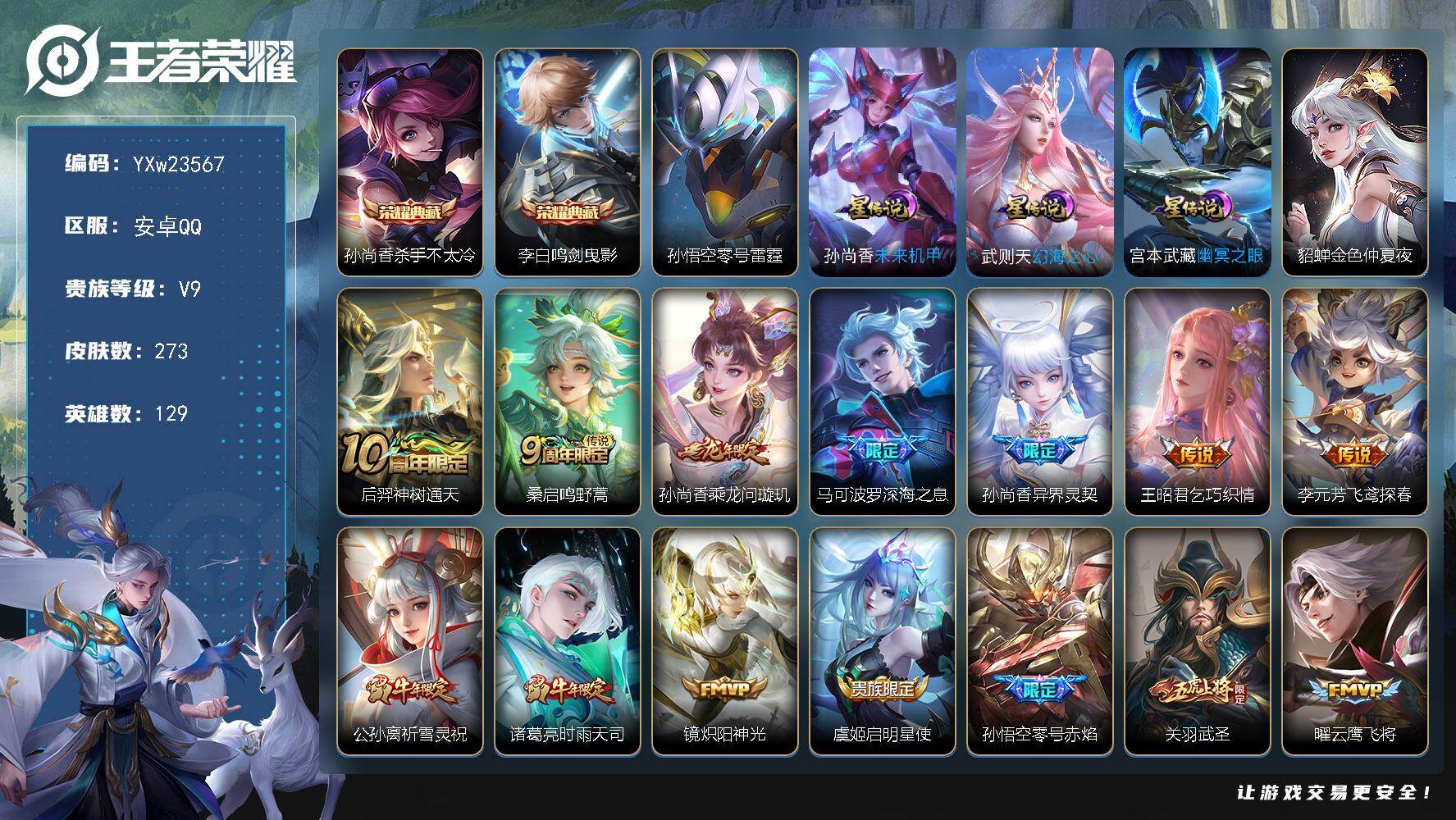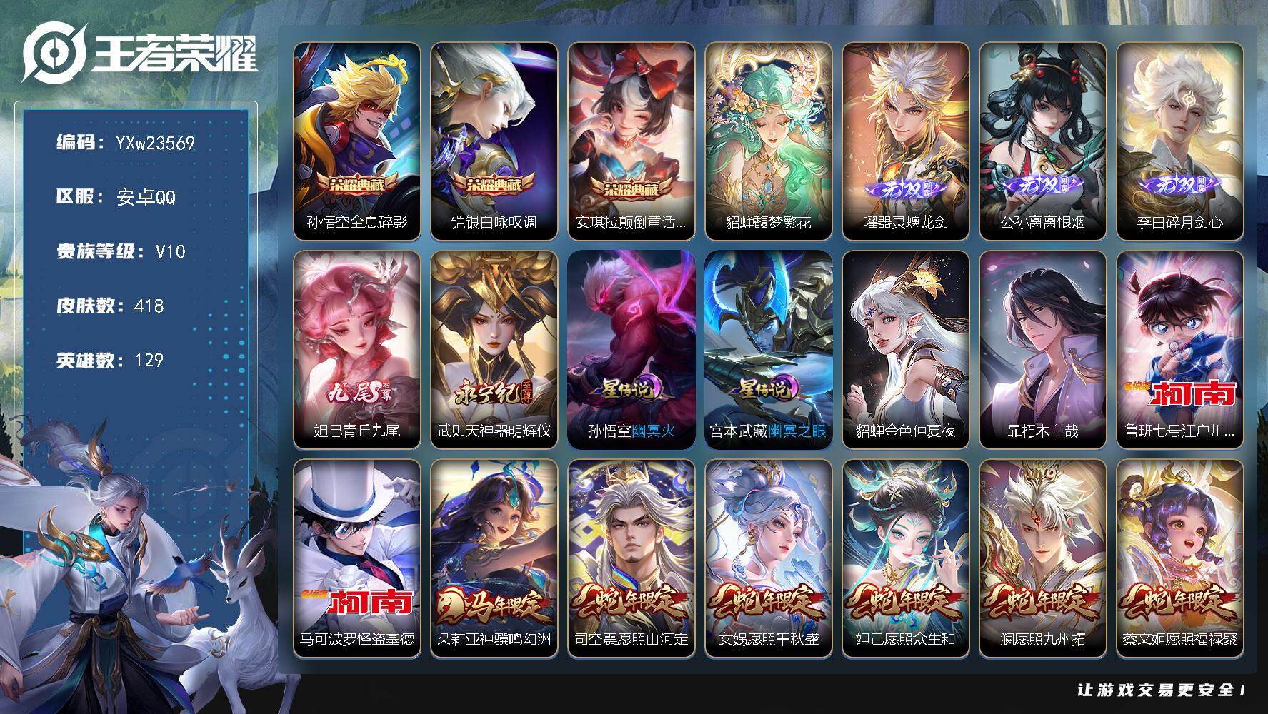 PX_2557123-??主推V10·3典藏·1珍品无双·5无双·3珍品·3星传说·49传说·曜全皮·澜全皮·全套蛇年限定·全套兔年限定·全套龙年限定·情限无限倾心·馥梦繁花+按键·银白咏叹调·器灵螭龙剑·碎月剑心·朽木白哉·霜北刀·冥王哈迪斯·电玩雷克斯·浮生妄·燃星之曲··齐天大圣·诗剑行·绯月行·星穹之声·枫霜尽·孙尚香异界灵契·李逍遥·谪仙醉月·至尊宝·美猴王·飞衡·岱宗·朱雀志·多限定·多年限·多款热门传说皮·多按键·可二次】YXw23569-安卓Q-129英雄-418皮肤-7王者印记-278铭文-贵族积分18w【贵族10】【3典藏·1珍品无双·5无双·3珍品·3星传说·49传说·65按键·30个性戳戳】【因赛季更新游戏段付以上号为准!】 【英雄全皮】:刘禅全皮,孙权全皮,橘右京全皮,百里守约全皮,敖隐全皮,曜全皮,澜全皮,夏洛特全皮,司空震全皮,暃全皮,戈娅全皮,空空儿全皮,影全皮 【荣耀典藏】:孙悟空全息碎影,铠银白咏叹调,安琪拉颠倒童话魔镜 【珍品无双】:貂蝉馥梦繁花 【无双皮肤】:曜器灵螭龙剑,公孙离离恨烟,李白碎月剑心,妲己青丘九尾,武则天神器明辉仪 【珍品传说】:暃朽木白哉,鲁班七号江户川柯南,马可波罗怪盗基德 【星元皮肤】:孙悟空幽冥火,宫本武藏幽冥之眼,貂蝉金色仲夏夜 【传说皮肤】:朵莉亚神骥鸣幻洲,司空震愿照山河定,女娲愿照千秋盛,妲己愿照众生和,澜愿照九州拓,蔡文姬愿照福禄聚,虞姬愿照岁时盈,云缨幻光神枪,桑启鸣野蒿,夏侯惇霜北刀,铠冥王哈迪斯,孙尚香乘龙问璇玑,孙策乘龙淬吴钩,赵云乘龙铭钟鼎,铠琥珀纪元,澜逐花归海,艾琳觅芳踪,东皇太一灼幽烈阳,澜电玩雷克斯,夏洛特浮生妄,花木兰燃星之曲,虞姬无限倾心,项羽无限倾心,孙悟空齐天大圣,小乔山海琳琅生,曜山海苍雷引,李信山海炽霜斩,吕布怒海麟威,李白诗剑行,不知火舞绯月行,王昭君星穹之声,百里守约碎云,橘右京枫霜尽,马超无双飞将,孙尚香异界灵契,赵云淬星耀世,西施游龙清影,曜李逍遥,,铠绛天战甲,虞姬启明星使,孙悟空零号赤焰,曜云鹰飞将,李信一念神魔,张良黄金白羊座,花木兰冠军飞将,梦奇胖达荣荣,后羿黄金射手座,宫本武藏地狱之眼,孙悟空地狱火 【限定皮肤】:公孙离离恨烟,夏侯惇霜北刀,铠冥王哈迪斯,暃埋骨钱,蔡文姬夏日便利店,大乔绒语心约,虞姬夏日便利店,姜子牙天穹之誓,李白谪仙醉月,狄仁杰阴阳师,小乔山海琳琅生,赵云皇家上将,赵云引擎之心,墨子降魔,孙尚香蔷薇恋人,孙尚香异界灵契,钟无艳超时空战士,扁鹊奇幻香踪,吕布猎兽之王,元歌无心,甄姬落雪兰心,典韦岱宗,马可波罗暗影游猎,马可波罗山海玄木吟,狄仁杰魔术师,项羽海滩派对,项羽无限倾心,关羽百相守梦,韩信飞衡,王昭君凤凰于飞,王昭君午后时光,王昭君星穹之声,兰陵王金庭之子,花木兰燃星之曲,不知火舞绯月行,橘右京枫霜尽,孙悟空美猴王,孙悟空至尊宝,孙悟空大圣娶亲,孙悟空零号赤焰,孙悟空孙行者,孙悟空齐天大圣,张飞虎魄,李元芳银河之约,李元芳云中旅人,虞姬启明星使,虞姬无限倾心,杨玉环遇见飞天,杨戬潮玩骑兵,女娲朔望之晖,蔡文姬繁星吟游,鬼谷子五谷丰年,铠青龙志,百里玄策原初追逐者,百里守约朱雀志,沈梦溪大漠名商,裴擒虎擒涛扼浪,狂铁电玩高手,瑶山海碧波行,云中君纤云弄巧,李信山海炽霜斩,嫦娥拒霜思,嫦娥暖冬兔眠,曜李逍遥,,曜山海苍雷引,西施玲珑珍味,鲁班大师探海日志,桑启海盐诗旅,夏洛特浮生妄,暃星界游侠,戈娅驭风魔法,艾琳女武神,艾琳流音漫舞,司空震地狱燃心,阿古朵江河有灵,张良古海寻踪,蒙犽百解令,艾琳觅芳踪,高渐离燃音魔法,妲己灵卜魔法,鬼谷子天穹祈灯,李白碎月剑心,伽罗琥珀纪元,铠琥珀纪元,大乔乘龙忆丹青,安琪拉乘龙聚宝船,孙尚香乘龙问璇玑,孙策乘龙淬吴钩,赵云乘龙铭钟鼎,百里玄策超元猎域,沈梦溪龙舞盛年,鲁班七号蔬乡物语,李元芳蔬乡物语,刘邦剑破天穹,镜青焰无极,项羽苍威无极,周瑜熔金海岸 【年限皮肤】:孙悟空美猴王,王昭君凤凰于飞,百里守约朱雀志,铠青龙志,典韦岱宗,韩信飞衡,小乔山海琳琅生,曜山海苍雷引,李信山海炽霜斩,瑶山海碧波行,马可波罗山海玄木吟,孙尚香乘龙问璇玑,孙策乘龙淬吴钩,赵云乘龙铭钟鼎,大乔乘龙忆丹青,安琪拉乘龙聚宝船,司空震愿照山河定,女娲愿照千秋盛,妲己愿照众生和,澜愿照九州拓,蔡文姬愿照福禄聚,虞姬愿照岁时盈 【赛季限定】:兰陵王金庭之子,沈梦溪大漠名商,李元芳云中旅人,桑启海盐诗旅,裴擒虎擒涛扼浪,鲁班大师探海日志,张良古海寻踪,鬼谷子天穹祈灯,刘邦剑破天穹,姜子牙天穹之誓,东皇太一噬灭天穹,太乙真人谧流熔炉,钟馗虚灵犬护,甄姬逆浪荇歌,百里玄策原初追逐者,牛魔星界战将 【战令限定】:吕布猎兽之王,女娲朔望之晖,李元芳银河之约,马可波罗暗影游猎,狂铁电玩高手,王昭君午后时光,钟无艳超时空战士,甄姬落雪兰心,暃星界游侠,嫦娥暖冬兔眠,扁鹊奇幻香踪,杨戬潮玩骑兵,戈娅驭风魔法,西施玲珑珍味,司空震地狱燃心,艾琳流音漫舞,高渐离燃音魔法,妲己灵卜魔法,鲁班七号蔬乡物语,李元芳蔬乡物语,镜青焰无极,项羽苍威无极,蔡文姬夏日便利店,虞姬夏日便利店,亚连破空之剑,廉颇撼地雄心,孙悟空神迹守卫,百里守约百相守梦,老夫子百相守梦,孙膑茶境仙,马超访茗客,刘禅鸭鸭历险记,沈梦溪鸭鸭历险记,莱西奥光弋星穹,明世隐往忆晖光,周瑜线条小狗,小