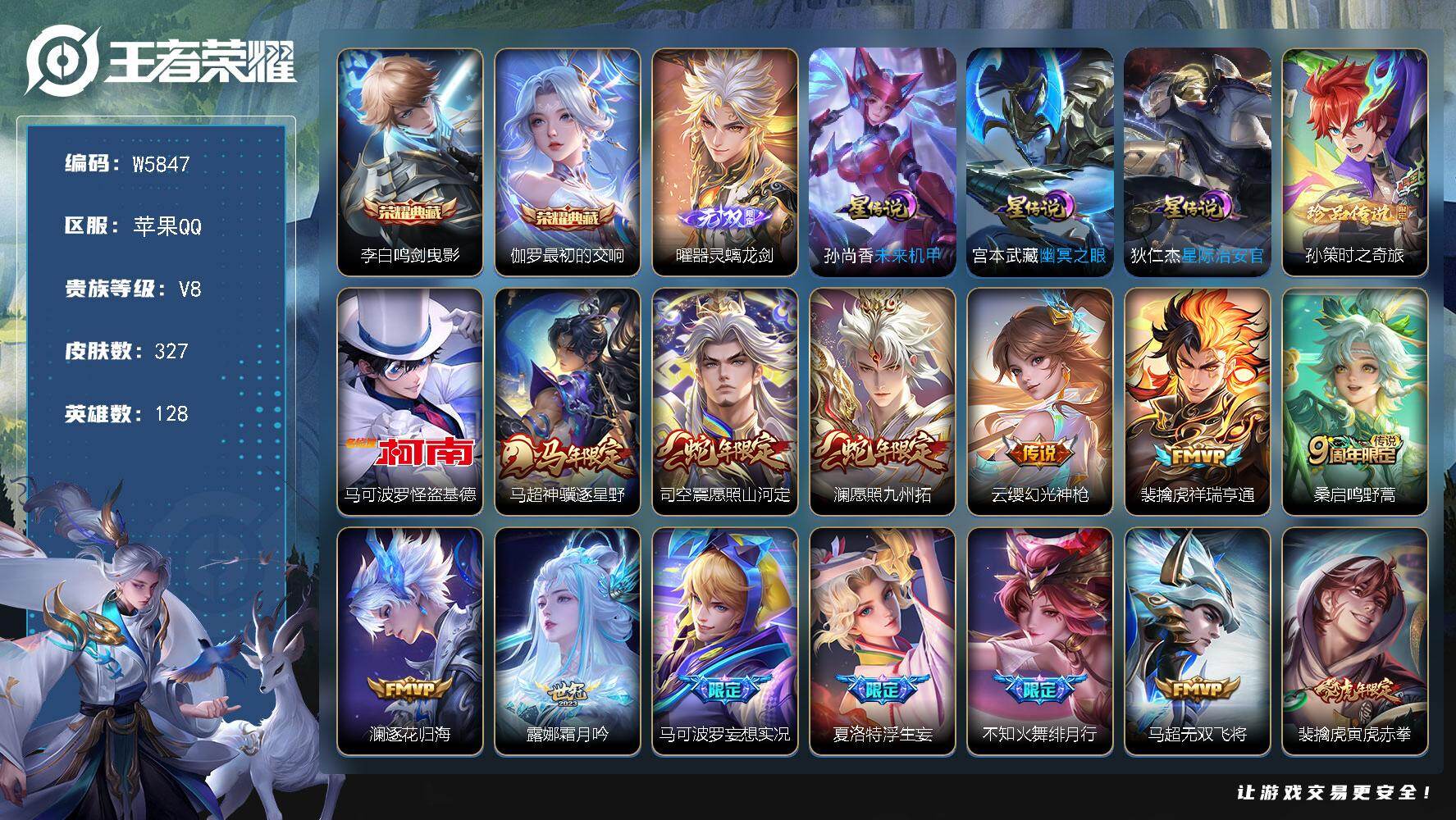 PX_2548040-??推荐·鸣剑曳影·碎月剑心·沧流箭·霜北刀·落雪白狼·乘龙问璇玑·乘龙淬吴钩·乘龙铭钟鼎·山海苍雷引·山海炽霜斩·武圣·共赏芳华天幕·无二次包过】YXw22963-苹果Q-128英雄-274皮肤-13王者印记-170铭文-贵族积分5w【贵族8】【1典藏·1无双·1珍品·1星传说·18传说·1天幕·10按键】【因赛季更新游戏段付以上号为准!】 【英雄全皮】:孙权全皮,海诺全皮 【荣耀典藏】:李白鸣剑曳影 【无双皮肤】:李白碎月剑心 【珍品传说】:伽罗沧流箭 【星元皮肤】:宫本武藏幽冥之眼 【天幕】:共赏芳华天幕 【传说皮肤】:后羿神树通天,桑启鸣野蒿,夏侯惇霜北刀,亚连落雪白狼,孙尚香乘龙问璇玑,孙策乘龙淬吴钩,赵云乘龙铭钟鼎,曜山海苍雷引,李信山海炽霜斩,李白诗剑行,马超无双飞将,镜炽阳神光,虞姬启明星使,关羽武圣,曜云鹰飞将,李信一念神魔,后羿黄金射手座,宫本武藏地狱之眼 【限定皮肤】:夏侯惇霜北刀,暃埋骨钱,蔡文姬夏日便利店,大乔绒语心约,虞姬夏日便利店,姜子牙天穹之誓,杨戬破阵退雄兵,李白谪仙醉月,狄仁杰阴阳师,赵云皇家上将,赵云引擎之心,庄周高山流水,高渐离玩趣恶龙,吕布御风骁将,元歌无心,典韦岱宗,马可波罗山海玄木吟,狄仁杰魔术师,达摩沙漠行僧,项羽海滩派对,关羽武圣,关羽百相守梦,程咬金演武夺筹,韩信傲雪梅枪,兰陵王金庭之子,刘备百相守梦,李元芳云中旅人,虞姬启明星使,钟馗驱傩正仪,女娲朔望之晖,雅典娜黎明之约,鬼谷子五谷丰年,苏烈千军破阵,梦奇顽趣,沈梦溪大漠名商,裴擒虎擒涛扼浪,云中君纤云弄巧,李信山海炽霜斩,嫦娥拒霜思,曜山海苍雷引,西施玲珑珍味,鲁班大师探海日志,戈娅驭风魔法,艾琳流音漫舞,司空震地狱燃心,阿古朵江河有灵,张良古海寻踪,蒙犽百解令,蒙恬荣光圣徽,高渐离燃音魔法,妲己灵卜魔法,鬼谷子天穹祈灯,李白碎月剑心,大乔乘龙忆丹青,安琪拉乘龙聚宝船,孙尚香乘龙问璇玑,孙策乘龙淬吴钩,赵云乘龙铭钟鼎,百里玄策超元猎域,亚连落雪白狼,沈梦溪龙舞盛年,鲁班七号蔬乡物语,李元芳蔬乡物语,刘邦剑破天穹,上官婉儿群星魔术团,程咬金群星魔术团,海诺心动手记,刘备异域游侠,周瑜熔金海岸 【年限皮肤】:典韦岱宗,吕布御风骁将,曜山海苍雷引,李信山海炽霜斩,马可波罗山海玄木吟,孙尚香乘龙问璇玑,孙策乘龙淬吴钩,赵云乘龙铭钟鼎,大乔乘龙忆丹青,安琪拉乘龙聚宝船 【赛季限定】:程咬金演武夺筹,钟馗驱傩正仪,苏烈千军破阵,达摩沙漠行僧,兰陵王金庭之子,沈梦溪大漠名商,李元芳云中旅人,裴擒虎擒涛扼浪,鲁班大师探海日志,张良古海寻踪,鬼谷子天穹祈灯,刘邦剑破天穹,姜子牙天穹之誓,太乙真人谧流熔炉,甄姬逆浪荇歌,亚瑟荣光之誓,雅典娜黎明之约,梦奇顽趣,蒙恬荣光圣徽,项羽九幽镇关 【战令限定】:女娲朔望之晖,戈娅驭风魔法,西施玲珑珍味,司空震地狱燃心,艾琳流音漫舞,高渐离燃音魔法,妲己灵卜魔法,鲁班七号蔬乡物语,李元芳蔬乡物语,蔡文姬夏日便利店,虞姬夏日便利店,孙膑茶境仙,马超访茗客,周瑜线条小狗 【史诗皮肤】:盘古撼世英歌,周瑜线条小狗,项羽九幽镇关,女娲万灵启世,黄忠百相守梦,扁鹊灵蛊蚀心,阿轲化蝶舞,弈星万物之道,孙膑茶境仙,艾琳陌上桑,李白谪仙醉月,弈星炽弈燎原,姬小满战舞者,少司缘涂山红红,暃埋骨钱,蔡文姬夏日便利店,黄忠怒海争锋,海诺心动手记,上官婉儿群星魔术团,鲁班七号蔬乡物语,大乔乘龙忆丹青,安琪拉乘龙聚宝船,百里玄策超元猎域,蒙恬荣光圣徽,高渐离燃音魔法,妲己灵卜魔法,周瑜雪夜绮愿,蒙犽百解令,阿古朵江河有灵,司空震地狱燃心,戈娅驭风魔法,关羽百相守梦,刘备百相守梦,马可波罗山海玄木吟,梦奇顽趣,元歌无心,鬼谷子五谷丰年,弈星滕王阁序,澜赏金猎手,夏洛特永昼,韩信傲雪梅枪,雅典娜黎明之约,嫦娥拒霜思,司马懿暗渊魔法,庄周高山流水,钟馗乐园奇幻夜,吕布御风骁将,云中君纤云弄巧,橘右京修罗,不知火舞魅语,典韦岱宗,娜可露露晚萤,狄仁杰鹰眼统帅,白起星夜王子,程咬金功夫厨神,李元芳逐浪之夏,刘禅天才门将,蔡文姬舞动绿茵,百里守约特工魅影,亚瑟心灵战警,诸葛亮黄金分割率,兰陵王暗隐猎兽者,夏侯惇乘风破浪,刘邦德古拉伯爵,花木兰水晶猎龙者,赵云引擎之心,张飞乱世虎臣,李白千年之狐,曹操幽灵船长,墨子金属风暴,妲己女仆咖啡,妲己魅力维加斯,嬴政摇滚巨星,嬴政暗夜贵公子,孙尚香水果甜心,宫本武藏鬼剑武藏,廉颇地狱岩魂,狄仁杰魔术师,王昭君偶像歌手,甄姬冰雪圆舞曲,貂蝉圣诞恋歌,赵云皇家上将,露娜紫霞仙子 【其他皮肤】:蚩奼极光幻客,艾琳鹤鸣心笺,孙权径山谋武,张良罗小黑战记,亚瑟荣光之誓,哪吒罗小黑战记,高渐离落日弦歌,庄周锦麟游梦,云中君云械蓝图,甄姬逆浪荇歌,白起死霸装,苏烈春野闲踪,刘备浪漫序章,戈娅玫蓝誓约,明世隐景韶洛都,姜子牙星梦巡礼,西施雪境奇遇,马超访茗客,太乙真人谧流熔炉,米莱狄怪诞之夜,大乔绒语心约,虞姬夏日便利店,周瑜熔金海岸,姜子牙天穹之誓,杨戬破阵退雄兵,刘备异域游侠,大司命暗都幽影,程咬金群星魔术团,盘古经纬探寻者,刘邦剑破天穹,扁鹊无尽旅途,李元芳蔬乡物语,钟无艳春野之旅,沈梦溪龙舞盛年,亚瑟鸿运当头,廉颇功夫炙烤,朵莉亚金色潮汐,嫦娥漠中幻影,海诺时空谍影,妲己灵卜魔法,鬼谷子天穹祈灯,程咬金暖冬絮语,后羿完美运算,曹操
