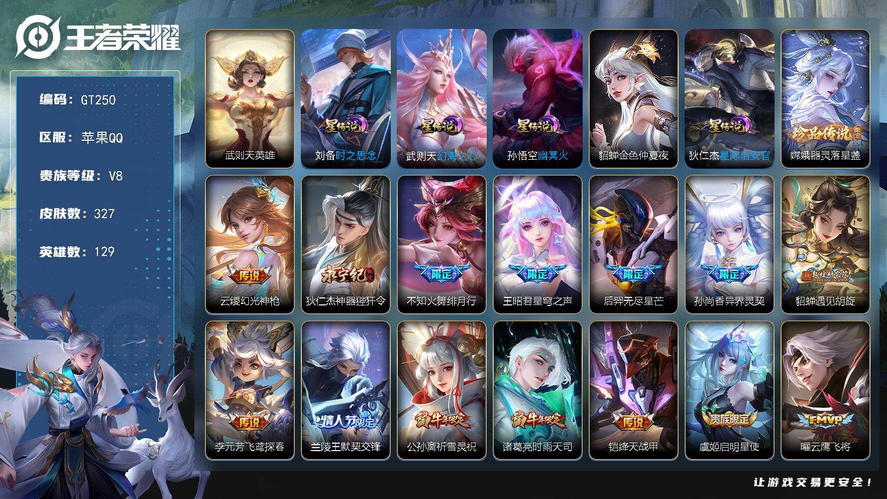 PX_2553501-可换绑【高质量多限定号·嫦娥珍品·武则天·狴犴令·无尽星芒·绯月行·星穹之声·异界灵契·遇见胡璇·默契交锋·时雨天司·祈雪灵祝·太华·白虎志·凤求凰】幸运值244,6按键,5星传说,10王者印记,满级铭文,无二次,苹果Q-V8-327皮肤-1典藏英雄-1珍品传说-27传说-90史诗【英雄全皮】:孙权全皮,影全皮【荣耀典藏】:武则天英雄【珍品传说】:嫦娥器灵落星盏【星元皮肤】:貂蝉金色仲夏夜,孙悟空幽冥火,武则天幻海之心,刘备时之思念,狄仁杰星际治安官【传说皮肤】:云缨幻光神枪,狄仁杰神器狴犴令,不知火舞绯月行,王昭君星穹之声,后羿无尽星芒,孙尚香异界灵契,貂蝉遇见胡旋,李元芳飞鸢探春,兰陵王默契交锋,公孙离祈雪灵祝,诸葛亮时雨天司,铠绛天战甲,虞姬启明星使,曜云鹰飞将,李信一念神魔,刘备时之恋人,伽罗太华,貂蝉猫影幻舞,虞姬云霓雀翎,达摩黄金狮子座,百里玄策白虎志,貂蝉仲夏夜之梦,李白凤求凰,宫本武藏地狱之眼,孙悟空地狱火,武则天海洋之心,狄仁杰超时空战士【限定皮肤】:白起狰,蔡文姬夏日便利店,虞姬夏日便利店,姜子牙天穹之誓,狄仁杰阴阳师,虞姬凯尔特女王,赵云皇家上将,墨子神迹守卫,妲己时之奇旅,嬴政白昼王子,孙尚香蔷薇恋人,孙尚香异界灵契,鲁班七号狮舞东方,庄周高山流水,阿轲迷踪丽影,白起夜都怪侠,芈月重明,芈月幻夜卜梦,吕布猎兽之王,吕布御风骁将,周瑜赤莲之焰,元歌云间偶戏,元歌无心,夏侯惇朔风刀,甄姬游园惊梦,马可波罗暗影游猎,狄仁杰魔术师,狄仁杰万华元夜,狄仁杰神器狴犴令,达摩沙漠行僧,项羽海滩派对,老夫子醍醐杖,老夫子航海奇遇记,貂蝉遇见胡旋,程咬金演武夺筹,露娜一生所爱,刘邦夺宝奇兵,韩信飞衡,王昭君星穹之声,兰陵王默契交锋,兰陵王驯魔猎人,兰陵王金庭之子,花木兰默契交锋,不知火舞绯月行,亚瑟潮玩骑士王,孙悟空至尊宝,孙悟空大圣娶亲,牛魔御旌,后羿无尽星芒,李元芳银河之约,李元芳云中旅人,虞姬启明星使,钟馗神迹守卫,钟馗驱傩正仪,干将莫邪冰霜恋舞曲,雅典娜黎明之约,蔡文姬繁星吟游,鬼谷子原初探秘者,鬼谷子五谷丰年,诸葛亮时雨天司,黄忠火炮绅士,苏烈千军破阵,百里玄策白虎志,百里玄策原初追逐者,弈星混沌棋,公孙离祈雪灵祝,沈梦溪星空之诺,沈梦溪大漠名商,明世隐疑决卦,明世隐吟游魔法,裴擒虎李小龙,裴擒虎擒涛扼浪,米莱狄御霄,云中君纤云弄巧,伽罗太华,盾山御銮,猪八戒西部大镖客,上官婉儿梁祝,嫦娥拒霜思,鲁班大师探海日志,桑启海盐诗旅,艾琳女武神,阿古朵江河有灵,张良古海寻踪,蒙犽百解令,鬼谷子天穹祈灯,沈梦溪龙舞盛年,刘邦剑破天穹,程咬金群星魔术团,刘备异域游侠,芈月浮光幕影,周瑜熔金海岸【年限皮肤】:李白凤求凰,百里玄策白虎志,伽罗太华,韩信飞衡,公孙离祈雪灵祝,诸葛亮时雨天司,吕布御风骁将【赛季限定】:虞姬凯尔特女王,白起狰,芈月重明,米莱狄御霄,牛魔御旌,盾山御銮,夏侯惇朔风刀,弈星混沌棋,明世隐疑决卦,老夫子醍醐杖,鬼谷子原初探秘者,狄仁杰万华元夜,程咬金演武夺筹,钟馗驱傩正仪,苏烈千军破阵,达摩沙漠行僧,兰陵王金庭之子,沈梦溪大漠名商,李元芳云中旅人,桑启海盐诗旅,裴擒虎擒涛扼浪,鲁班大师探海日志,张良古海寻踪,鬼谷子天穹祈灯,刘邦剑破天穹,姜子牙天穹之誓,东皇太一噬灭天穹,太乙真人谧流熔炉,钟馗虚灵犬护,甄姬逆浪荇歌,亚瑟荣光之誓,百里玄策原初追逐者,雅典娜黎明之约【战令限定】:嬴政白昼王子,吕布猎兽之王,鲁班七号狮舞东方,钟馗神迹守卫,兰陵王驯魔猎人,周瑜赤莲之焰,李元芳银河之约,沈梦溪星空之诺,阿轲迷踪丽影,刘邦夺宝奇兵,马可波罗暗影游猎,猪八戒西部大镖客,元歌云间偶戏,亚瑟潮玩骑士王,老夫子航海奇遇记,墨子神迹守卫,黄忠火炮绅士,芈月幻夜卜梦,明世隐吟游魔法,白起夜都怪侠,蔡文姬夏日便利店,虞姬夏日便利店,孙膑茶境仙,马超访茗客,周瑜线条小狗【史诗皮肤】:周瑜线条小狗,女娲万灵启世,公孙离涂山容容,西施织梦人,黄忠百相守梦,弈星万物之道,孙膑茶境仙,大司命东方月初,少司缘涂山红红,蔡文姬夏日便利店,芈月浮光幕影,蒙犽百解令,阿古朵江河有灵,元歌无心,鬼谷子五谷丰年,妲己时之奇旅,明世隐吟游魔法,澜赏金猎手,雅典娜黎明之约,黄忠火炮绅士,嫦娥拒霜思,司马懿暗渊魔法,庄周高山流水,老夫子航海奇遇记,花木兰默契交锋,吕布御风骁将,元歌云间偶戏,云中君纤云弄巧,裴擒虎李小龙,百里玄策原初追逐者,马可波罗暗影游猎,孙尚香时之恋人,瑶遇见神鹿,橘右京修罗,阿轲迷踪丽影,不知火舞魅语,大乔白蛇,韩信飞衡,娜可露露晚萤,李元芳银河之约,蔡文姬繁星吟游,上官婉儿梁祝,兰陵王驯魔猎人,狄仁杰鹰眼统帅,鲁班七号狮舞东方,伽罗箭羽风息,孙悟空大圣娶亲,露娜一生所爱,干将莫邪冰霜恋舞曲,大乔猫狗日记,孙策猫狗日记,嬴政白昼王子,阿轲节奏热浪,白起星夜王子,程咬金功夫厨神,李元芳逐浪之夏,刘禅天才门将,蔡文姬舞动绿茵,百里守约特工魅影,安琪拉心灵骇客,雅典娜冰冠公主,亚瑟心灵战警,甄姬游园惊梦,兰陵王暗隐猎兽者,小乔缤纷独角兽,夏侯惇乘风破浪,刘邦德古拉伯爵,花木兰水晶猎龙者,孙悟空至尊宝,韩信白龙吟,张飞乱世虎臣,吕布末日机甲,李白千年之狐,曹操幽灵船长,刘禅绅士熊喵,吕布圣诞狂欢,墨子金属风暴,妲己魅力维加斯,嬴政摇滚巨