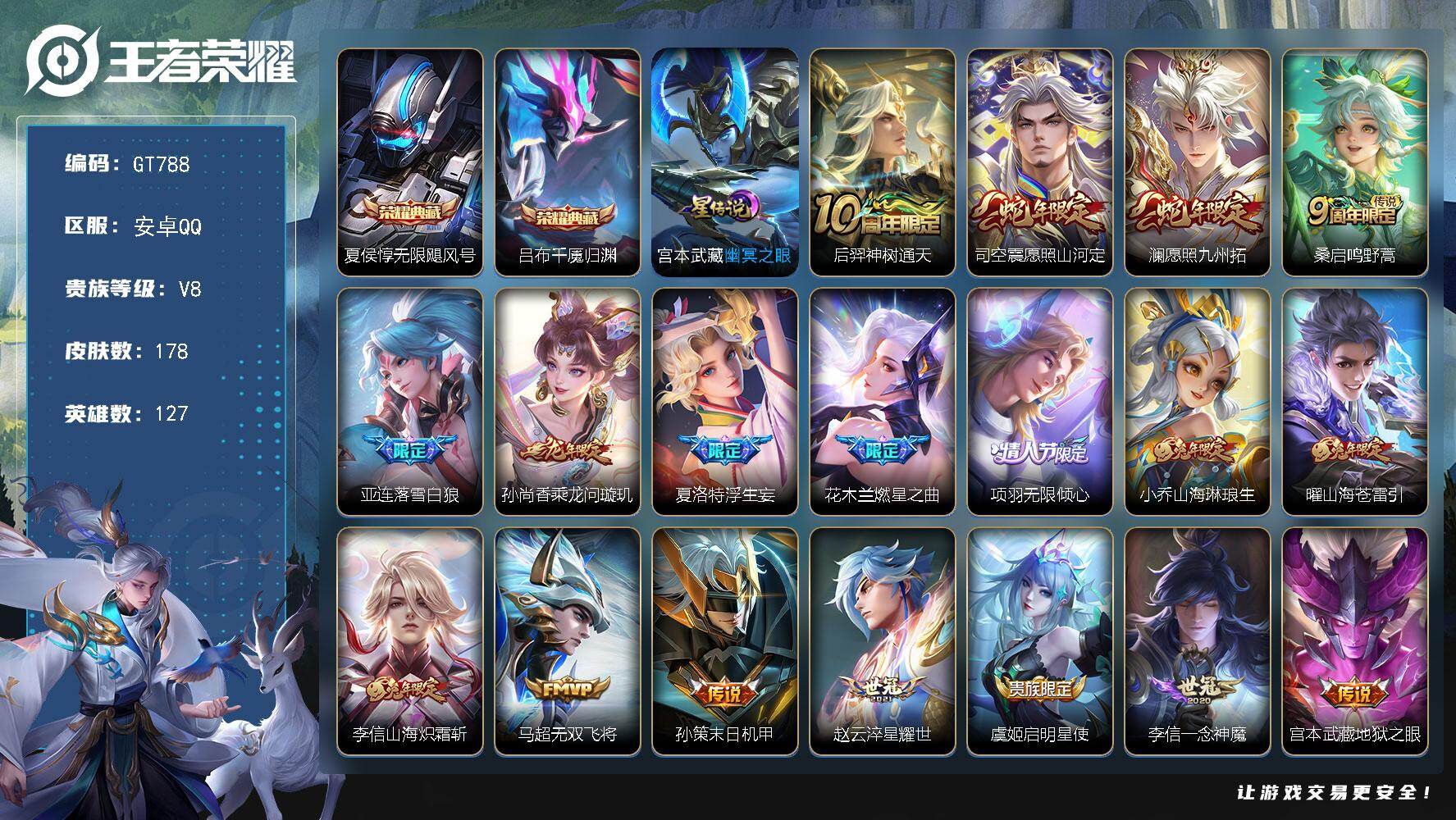PX_2560058-??主推V10·710皮·3.9W流光积分·19典藏·11无双·7珍品·11星传说·114传说·敬我三分天幕·墨染江湖天幕·幻夜逐光天幕·花朝如约天幕·金虎啸春天幕·秋月华灯天幕·可二次】YXw20275-区服-129英雄-710皮肤-25王者印记-300铭文-贵族积分66w【贵族10】【19典藏·11无双·7珍品·11星传说·114传说·8天幕·92按键·477个性戳戳】【因赛季更新游戏段付以上号为准!】 【荣耀典藏】:武则天英雄,孙悟空全息碎影,武则天倪克斯神谕,夏侯惇无限飓风号,小乔天鹅之梦,孙尚香杀手不太冷,鲁班七号星空梦想,芈月大秦宣太后,程咬金活力突击,李白鸣剑曳影,诸葛亮星域神启,花木兰九霄神辉,关羽赤影疾锋,铠银白咏叹调,韩信弑枪猎影,虞姬神鉴启示录,瑶拾光映像,伽罗最初的交响,吕布千魇归渊 【无双皮肤】:铠神罪,诸葛亮天机白泽,曜器灵螭龙剑,甄姬雪境奇遇,公孙离离恨烟,不知火舞花合斗,韩信群星魔术团,小乔时之魔女,李白碎月剑心,妲己青丘九尾,武则天神器明辉仪 【珍品传说】:安琪拉酷洛米之心,瑶大耳狗之梦,张飞兔狲蓬尾,嫦娥器灵落星盏,孙策时之奇旅,鲁班七号江户川柯南,马可波罗怪盗基德 【星元皮肤】:兰陵王荆棘舞步,鲁班七号寅虎焰心,狄仁杰星际治安官,刘备时之思念,瑶时之愿境,孙悟空零号雷霆,孙尚香未来机甲,武则天幻海之心,孙悟空幽冥火,宫本武藏幽冥之眼,貂蝉金色仲夏夜 【天幕】:敬我三分天幕,墨染江湖天幕,幻夜逐光天幕,花朝如约天幕,金虎啸春天幕,秋月华灯天幕,共赏芳华天幕,鲲天幕 【传说皮肤】:云缨神骥越千峰,杨戬纵目迁山,后羿神树通天,元歌诡秘之主,大司命死亡执政官,司马懿九山相柳,杨玉环星之鸣奏,司空震愿照山河定,女娲愿照千秋盛,妲己愿照众生和,澜愿照九州拓,蔡文姬愿照福禄聚,虞姬愿照岁时盈,云缨幻光神枪,裴擒虎祥瑞亨通,嬴政玄雷天君,王昭君映山客,桑启鸣野蒿,庄周牧神诗旅,夏侯惇霜北刀,铠冥王哈迪斯,朵莉亚心动手记,云中君群星魔术团,墨子黄金天蝎座,亚连落雪白狼,典韦战鼓燎原,孙尚香乘龙问璇玑,孙策乘龙淬吴钩,赵云乘龙铭钟鼎,马超琥珀纪元,澜逐花归海,艾琳觅芳踪,露娜霜月吟,孙膑小动物乐团,甄姬至美化雀舞,鲁班七号时之奇旅,吕布遇见神鼓,宫本武藏惊梅引,上官婉儿妄想奇谈,马可波罗妄想实况,东皇太一灼幽烈阳,诸葛亮鹤羽星尊,澜电玩雷克斯,张飞百相守梦,公孙离记忆之芯,夏洛特浮生妄,干将莫邪画中仙,花木兰燃星之曲,伽罗炽翼辉光,孙悟空齐天大圣,小乔山海琳琅生,曜山海苍雷引,李信山海炽霜斩,吕布怒海麟威,李白诗剑行,狄仁杰神器狴犴令,不知火舞绯月行,王昭君星穹之声,百里守约碎云,橘右京枫霜尽,娜可露露前尘镜,孙尚香音你闪耀,马可波罗深海之息,后羿无尽星芒,马超无双飞将,大乔挚爱花嫁,孙策挚爱之约,露娜启示之音,蔡文姬花朝如约,女娲补天,孙策末日机甲,瑶时之祈愿,裴擒虎寅虎赤拳,鲁班七号寅虎瑞焰,孙尚香异界灵契,貂蝉遇见胡旋,赵云淬星耀世,王昭君乞巧织情,西施游龙清影,曜李逍遥,,周瑜音你心动,小乔音你心动,李元芳飞鸢探春,兰陵王默契交锋,公孙离祈雪灵祝,诸葛亮时雨天司,铠绛天战甲,镜炽阳神光,虞姬启明星使,孙悟空零号赤焰,关羽武圣,曜云鹰飞将,李信一念神魔,刘备时之恋人,伽罗太华,貂蝉猫影幻舞,张良黄金白羊座,干将莫邪久胜战神,虞姬云霓雀翎,达摩黄金狮子座,百里玄策白虎志,花木兰冠军飞将,梦奇胖达荣荣,后羿黄金射手座,杨戬永曜之星,诸葛亮武陵仙君,貂蝉仲夏夜之梦,李白凤求凰,孙尚香末日机甲,宫本武藏地狱之眼,孙悟空地狱火,吕布天魔缭乱,武则天海洋之心,狄仁杰超时空战士 【限定皮肤】:白起狰,公孙离离恨烟,夏侯惇霜北刀,铠冥王哈迪斯,暃埋骨钱,蒙犽顽岩魄,蔡文姬夏日便利店,大乔绒语心约,虞姬夏日便利店,姜子牙天穹之誓,杨戬破阵退雄兵,李白谪仙醉月,狄仁杰阴阳师,小乔纯白花嫁,虞姬凯尔特女王,廉颇寅虎御盾,小乔山海琳琅生,赵云皇家上将,赵云引擎之心,赵云龙胆,赵云百木心枪,墨子神迹守卫,墨子降魔,妲己热情桑巴,妲己时之彼端,妲己时之奇旅,嬴政优雅恋人,嬴政白昼王子,孙尚香异界灵契,鲁班七号狮舞东方,鲁班七号乒乒小将,鲁班七号寅虎瑞焰,鲁班七号时之奇旅,庄周蜃楼王,庄周云端筑梦师,庄周玄嵩,庄周高山流水,高渐离死亡摇滚,阿轲迷踪丽影,钟无艳王者之锤,钟无艳超时空战士,孙膑妖精王,孙膑天狼运算者,孙膑寅虎展翼,扁鹊炼金王,扁鹊奇幻香踪,白起夜都怪侠,芈月重明,芈月白晶晶,芈月幻夜卜梦,吕布天魔缭乱,吕布猎兽之王,吕布御风骁将,吕布遇见神鼓,周瑜真爱至上,周瑜赤莲之焰,元歌云间偶戏,元歌无心,夏侯惇朔风刀,夏侯惇匿光决锋者,甄姬幽恒,甄姬女儿国国王,甄姬游园惊梦,甄姬落雪兰心,甄姬至美化雀舞,曹操烛龙,曹操天狼征服者,典韦穷奇,典韦蓝屏警告,典韦岱宗,马可波罗逐梦之星,马可波罗暗影游猎,马可波罗深海之息,马可波罗山海玄木吟,马可波罗妄想实况,狄仁杰魔术师,狄仁杰万华元夜,狄仁杰神器狴犴令,达摩星际陆战队,达摩沙漠行僧,项羽海滩派对,项羽霸王别姬,老夫子醍醐杖,老夫子航海奇遇记,关羽冰锋战神,关羽武圣,貂蝉遇见胡旋,安琪拉魔法小厨娘,程咬金演武夺筹,露娜一生所爱,露娜启示之音,刘邦夺宝奇兵,韩信逐梦之影,韩信飞衡,韩信傲雪梅枪,王昭君凤凰于飞,王昭君午后时光,王昭君星穹之声,兰