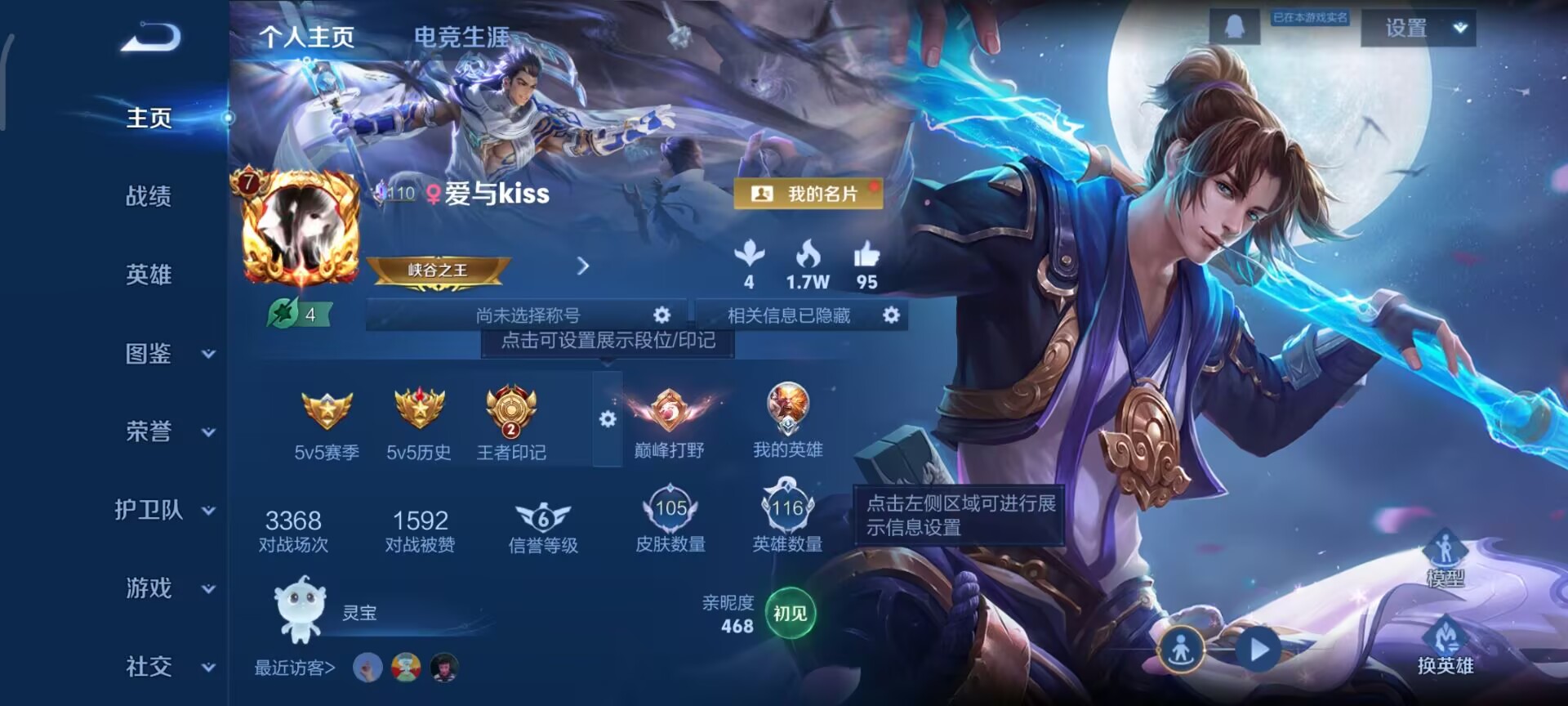 PX_2560418-实名:,不可修改,贵族等级:,V7,英雄数:,116,皮肤数:,105,星传说:,幽冥之眼,传说皮:,地狱之眼,神骥·聚万邦,限定皮:,李小龙,至尊宝,五谷丰年,亮点:,【精品号手慢无】孙悟空银标,个性按键1个,213积分夺宝,V7,满级铭文,性价比号,上手即玩,李小龙,至尊宝,五谷丰年,星夜王子,千年之狐,无心,撼地雄心,线条小狗-小乔,线条小狗-周瑜,优雅恋人,白龙吟,紫霞仙子,修罗,水果甜心