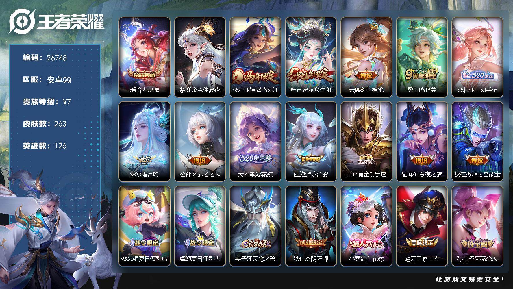 PX_2522242-可换绑,【极品高质量女号v10·游走53段·中路45段·金标万战瑶公孙离·金标大乔小乔貂蝉朵丽亚少司缘西施嫦娥·小乔全皮·大乔全皮·公孙离全皮·瑶全皮·西施全皮·4无双·8典藏·2珍品·6星传说紫瑶金蝉·】14按键,6星传说,1天幕,726戳戳,18王者印记,满级铭文,可二次CD18730,安卓Q-V10-517皮肤-8典藏皮肤-4无双-2珍品传说-56传说-164史诗【英雄全皮】:小乔全皮,刘禅全皮,孙权全皮,朵莉亚全皮,娜可露露全皮,鬼谷子全皮,大乔全皮,公孙离全皮,瑶全皮,嫦娥全皮,敖隐全皮,海月全皮,西施全皮,鲁班大师全皮,蒙恬全皮,戈娅全皮,空空儿全皮,海诺全皮,少司缘全皮【荣耀典藏】:小乔天鹅之梦,孙尚香杀手不太冷,李白鸣剑曳影,花木兰九霄神辉,关羽赤影疾锋,貂蝉幻阙歌,韩信弑枪猎影,瑶拾光映像【无双皮肤】:公孙离离恨烟,小乔时之魔女,瑶真我赫兹,妲己青丘九尾【珍品传说】:瑶大耳狗之梦,嫦娥器灵落星盏【天幕】:Kuromi时间天幕 【星元皮肤】:貂蝉金色仲夏夜,瑶时之愿境,刘备时之思念,狄仁杰星际治安官,西施游龙堇华,大乔沐霞之诺【传说皮肤】:朵莉亚神骥鸣幻洲,公孙离云诺千山,西施续相思,女娲愿照千秋盛,妲己愿照众生和,蔡文姬愿照福禄聚,云缨幻光神枪,桑启鸣野蒿,朵莉亚心动手记,海月金乌负日,貂蝉曦玄引,艾琳觅芳踪,露娜霜月吟,孙膑小动物乐团,王昭君永恒水手月亮,大乔时之奇旅,上官婉儿妄想奇谈,张飞百相守梦,公孙离记忆之芯,干将莫邪画中仙,小乔山海琳琅生,李信山海炽霜斩,吕布怒海麟威,不知火舞绯月行,王昭君星穹之声,百里守约碎云,橘右京枫霜尽,娜可露露前尘镜,马可波罗深海之息,马超无双飞将,大乔挚爱花嫁,蔡文姬花朝如约,瑶时之祈愿,孙尚香异界灵契,貂蝉遇见胡旋,王昭君乞巧织情,西施游龙清影,小乔音你心动,兰陵王默契交锋,公孙离祈雪灵祝,诸葛亮时雨天司,铠绛天战甲,镜炽阳神光,虞姬启明星使,曜云鹰飞将,李信一念神魔,刘备时之恋人,伽罗太华,貂蝉猫影幻舞,张良黄金白羊座,干将莫邪久胜战神,虞姬云霓雀翎,后羿黄金射手座,貂蝉仲夏夜之梦,宫本武藏地狱之眼,狄仁杰超时空战士【限定皮肤】:公孙离离恨烟,暃埋骨钱,蒙犽顽岩魄,蔡文姬夏日便利店,大乔绒语心约,虞姬夏日便利店,姜子牙天穹之誓,杨戬破阵退雄兵,狄仁杰阴阳师,小乔纯白花嫁,小乔山海琳琅生,赵云皇家上将,墨子神迹守卫,妲己热情桑巴,妲己时之奇旅,孙尚香异界灵契,鲁班七号乒乒小将,庄周高山流水,高渐离玩趣恶龙,钟无艳超时空战士,孙膑寅虎展翼,扁鹊奇幻香踪,白起夜都怪侠,芈月白晶晶,芈月幻夜卜梦,元歌无心,甄姬游园惊梦,甄姬落雪兰心,马可波罗深海之息,狄仁杰魔术师,狄仁杰万华元夜,达摩星际陆战队,达摩沙漠行僧,项羽海滩派对,老夫子航海奇遇记,关羽百相守梦,貂蝉逐梦之音,貂蝉遇见胡旋,安琪拉魔法小厨娘,程咬金演武夺筹,露娜一生所爱,韩信飞衡,王昭君凤凰于飞,王昭君午后时光,王昭君星穹之声,兰陵王默契交锋,兰陵王金庭之子,不知火舞绯月行,娜可露露前尘镜,橘右京枫霜尽,孙悟空至尊宝,牛魔奔雷神使,后羿圣弓游侠,张飞百相守梦,李元芳匿光侦查者,李元芳云中旅人,虞姬启明星使,钟馗驱傩正仪,杨玉环寅虎心曲,杨戬潮玩骑兵,干将莫邪真爱魔法,干将莫邪画中仙,雅典娜黎明之约,鬼谷子原初探秘者,鬼谷子五谷丰年,诸葛亮时雨天司,大乔白鹤梁神女,大乔挚爱花嫁,大乔时之奇旅,黄忠火炮绅士,苏烈千军破阵,百里玄策原初追逐者,百里守约朱雀志,梦奇顽趣,公孙离蜜橘之夏,公孙离祈雪灵祝,公孙离玉兔公主,沈梦溪大漠名商,沈梦溪匿光破解者,明世隐吟游魔法,裴擒虎天狼狩猎者,裴擒虎擒涛扼浪,狂铁电玩高手,米莱狄胡桃异想国,瑶时之祈愿,瑶山海碧波行,云中君纤云弄巧,李信山海炽霜斩,伽罗太华,伽罗天狼溯光者,上官婉儿梁祝,上官婉儿天狼绘梦者,上官婉儿神器万象笔,上官婉儿妄想奇谈,嫦娥如梦令,嫦娥拒霜思,嫦娥暖冬兔眠,西施玲珑珍味,西施至美乘鲤谣,鲁班大师匿光启智者,鲁班大师探海日志,镜匿光追影者,桑启海盐诗旅,暃星界游侠,戈娅驭风魔法,艾琳女武神,艾琳流音漫舞,司空震地狱燃心,阿古朵江河有灵,张良古海寻踪,王昭君永恒水手月亮,蒙犽百解令,艾琳觅芳踪,蒙恬荣光圣徽,高渐离燃音魔法,妲己灵卜魔法,鬼谷子天穹祈灯,伽罗琥珀纪元,姬小满妄想食味,小乔时之魔女,大乔乘龙忆丹青,安琪拉乘龙聚宝船,貂蝉曦玄引,沈梦溪龙舞盛年,鲁班七号蔬乡物语,李元芳蔬乡物语,海月金乌负日,刘邦剑破天穹,上官婉儿群星魔术团,程咬金群星魔术团,镜青焰无极,项羽苍威无极,朵莉亚心动手记,海诺心动手记,刘备异域游侠,芈月浮光幕影,周瑜熔金海岸【年限皮肤】:王昭君凤凰于飞,百里守约朱雀志,伽罗太华,韩信飞衡,公孙离祈雪灵祝,诸葛亮时雨天司,牛魔奔雷神使,孙膑寅虎展翼,杨玉环寅虎心曲,小乔山海琳琅生,李信山海炽霜斩,瑶山海碧波行,大乔乘龙忆丹青,安琪拉乘龙聚宝船,女娲愿照千秋盛,妲己愿照众生和,蔡文姬愿照福禄聚【赛季限定】:鬼谷子原初探秘者,狄仁杰万华元夜,程咬金演武夺筹,钟馗驱傩正仪,苏烈千军破阵,达摩沙漠行僧,兰陵王金庭之子,沈梦溪大漠名商,李元芳云中旅人,桑启海盐诗旅,裴擒虎擒涛扼浪,鲁班大师探海日志,张良古海寻踪,鬼谷子天穹祈灯,刘邦剑破天穹,姜子牙天穹之誓,东皇太一噬灭天穹,太乙真人谧
