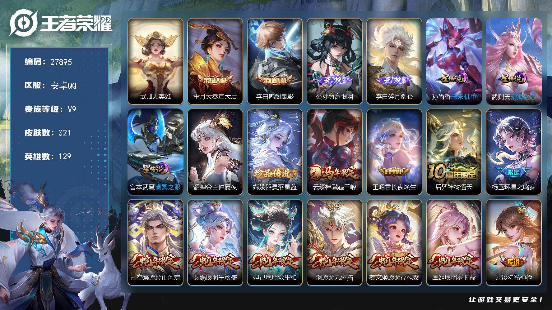 PX_2539579-可换绑,【质量精品v9·典藏武则天·天魔缭乱·蛇限澜·狗年杨戬·太华·武陵仙君·凤求凰·御风骁将·飞衡·岱宗·冰霜恋舞曲·引擎之心·冰封战神·至尊宝·】3316星币,幸运值213,1按键,1星传说,7王者印记,五级铭文190,可二次CD19193,安卓Q-V9-229皮肤-1典藏英雄-17传说-62史诗【荣耀典藏】:武则天英雄【星元皮肤】:孙悟空幽冥火【传说皮肤】:澜愿照九州拓,桑启鸣野蒿,虞姬启明星使,孙悟空零号赤焰,曜云鹰飞将,伽罗太华,干将莫邪久胜战神,虞姬云霓雀翎,达摩黄金狮子座,杨戬永曜之星,诸葛亮武陵仙君,貂蝉仲夏夜之梦,李白凤求凰,宫本武藏地狱之眼,孙悟空地狱火,吕布天魔缭乱,狄仁杰超时空战士【限定皮肤】:白起狰,姜子牙天穹之誓,狄仁杰阴阳师,赵云皇家上将,赵云引擎之心,妲己时之彼端,嬴政白昼王子,鲁班七号狮舞东方,阿轲迷踪丽影,钟无艳王者之锤,芈月重明,吕布天魔缭乱,吕布猎兽之王,吕布御风骁将,周瑜赤莲之焰,夏侯惇朔风刀,曹操烛龙,典韦岱宗,马可波罗暗影游猎,狄仁杰魔术师,狄仁杰万华元夜,项羽海滩派对,项羽霸王别姬,老夫子醍醐杖,关羽冰锋战神,程咬金演武夺筹,露娜一生所爱,刘邦夺宝奇兵,韩信逐梦之影,韩信飞衡,兰陵王驯魔猎人,花木兰青春决赛季,花木兰瑞麟志,孙悟空至尊宝,孙悟空大圣娶亲,孙悟空零号赤焰,牛魔御旌,后羿辉光之辰,后羿如梦令,张飞虎魄,李元芳银河之约,虞姬霸王别姬,虞姬启明星使,钟馗神迹守卫,钟馗驱傩正仪,杨戬永曜之星,女娲朔望之晖,干将莫邪冰霜恋舞曲,雅典娜单词大作战,蔡文姬繁星吟游,太乙真人饕餮,鬼谷子原初探秘者,诸葛亮武陵仙君,黄忠烈魂,铠青龙志,苏烈玄武志,百里玄策原初追逐者,弈星混沌棋,沈梦溪星空之诺,明世隐疑决卦,裴擒虎天狼狩猎者,裴擒虎李小龙,裴擒虎擒涛扼浪,狂铁御狮,米莱狄御霄,云中君纤云弄巧,伽罗太华,盾山御銮,猪八戒西部大镖客,上官婉儿梁祝,蒙犽狂想玩偶喵,鲁班大师探海日志,桑启海盐诗旅,张良古海寻踪,鬼谷子天穹祈灯,姬小满妄想食味,沈梦溪龙舞盛年【年限皮肤】:李白凤求凰,杨戬永曜之星,后羿辉光之辰,花木兰瑞麟志,苏烈玄武志,铠青龙志,伽罗太华,典韦岱宗,韩信飞衡,吕布御风骁将,澜愿照九州拓【赛季限定】:白起狰,太乙真人饕餮,曹操烛龙,芈月重明,狂铁御狮,米莱狄御霄,牛魔御旌,盾山御銮,夏侯惇朔风刀,弈星混沌棋,明世隐疑决卦,老夫子醍醐杖,鬼谷子原初探秘者,狄仁杰万华元夜,程咬金演武夺筹,钟馗驱傩正仪,桑启海盐诗旅,裴擒虎擒涛扼浪,鲁班大师探海日志,张良古海寻踪,鬼谷子天穹祈灯,姜子牙天穹之誓,东皇太一噬灭天穹,钟馗虚灵犬护,百里玄策原初追逐者【战令限定】:嬴政白昼王子,吕布猎兽之王,女娲朔望之晖,鲁班七号狮舞东方,钟馗神迹守卫,兰陵王驯魔猎人,周瑜赤莲之焰,李元芳银河之约,沈梦溪星空之诺,阿轲迷踪丽影,刘邦夺宝奇兵,马可波罗暗影游猎,猪八戒西部大镖客,蒙犽狂想玩偶喵,雅典娜单词大作战【史诗皮肤】:狂铁龙之律动,姬小满妄想食味,吕布御风骁将,云中君纤云弄巧,裴擒虎李小龙,百里玄策原初追逐者,蒙犽狂想玩偶喵,张飞虎魄,马可波罗暗影游猎,孙尚香时之恋人,黄忠烈魂,橘右京修罗,阿轲迷踪丽影,后羿如梦令,妲己时之彼端,典韦岱宗,韩信飞衡,李元芳银河之约,蔡文姬繁星吟游,上官婉儿梁祝,兰陵王驯魔猎人,狄仁杰鹰眼统帅,鲁班七号狮舞东方,裴擒虎天狼狩猎者,花木兰瑞麟志,苏烈玄武志,孙悟空大圣娶亲,露娜一生所爱,干将莫邪冰霜恋舞曲,铠青龙志,嬴政白昼王子,程咬金功夫厨神,李元芳逐浪之夏,刘禅天才门将,百里守约特工魅影,花木兰青春决赛季,后羿辉光之辰,安琪拉心灵骇客,雅典娜冰冠公主,夏侯惇乘风破浪,韩信逐梦之影,赵云引擎之心,孙悟空至尊宝,关羽冰锋战神,虞姬霸王别姬,项羽霸王别姬,张飞乱世虎臣,吕布末日机甲,李白千年之狐,曹操幽灵船长,墨子金属风暴,墨子龙骑士,妲己魅力维加斯,嬴政暗夜贵公子,宫本武藏鬼剑武藏,狄仁杰魔术师,王昭君偶像歌手,赵云未来纪元,赵云皇家上将,钟无艳王者之锤,项羽苍穹之光,鲁班七号电玩小子【其他皮肤】:兰陵王雾影缉谜,钟馗虚灵犬护,戈娅玫蓝誓约,姜子牙星梦巡礼,东皇太一噬灭天穹,盘古敬我三分,姜子牙天穹之誓,沈梦溪龙舞盛年,廉颇功夫炙烤,鬼谷子天穹祈灯,后羿完美运算,亚连破局者,张良古海寻踪,鲁班大师探海日志,裴擒虎擒涛扼浪,猪八戒潮玩探月行,桑启海盐诗旅,程咬金无双福将,妲己紫罗兰之誓,典韦铁甲之心,鲁班大师乓乓大师,钟馗驱傩正仪,盘古重装意志,张良缤纷绘卷,程咬金演武夺筹,杨戬次元傲视,刘禅秘密基地,狄仁杰万华元夜,雅典娜单词大作战,鬼谷子原初探秘者,廉颇无尽征程,猪八戒西部大镖客,老夫子醍醐杖,盾山圆桌骑士,刘邦夺宝奇兵,明世隐疑决卦,鲁班七号黑桃队长,哪吒次元突破,弈星混沌棋,沈梦溪星空之诺,周瑜赤莲之焰,夏侯惇朔风刀,姜子牙炽热元素使,沈梦溪鲨炮海盗猫,孙膑归虚梦演,盾山御銮,钟馗神迹守卫,吕布野性能量,小乔丁香结,女娲朔望之晖,牛魔御旌,庄周奇妙博物学,张良幽兰居士,明世隐虹云星官,吕布猎兽之王,米莱狄御霄,项羽科学大爆炸,大乔守护之力,苏烈坚韧之力,狂铁御狮,鬼谷子幻乐之宴,诸葛亮掌控之力,牛魔制霸全明星,老夫子功夫老勺,狂铁命运角斗场,芈月重明,王昭君幻想奇妙夜,曹操烛龙,宫本武藏霸