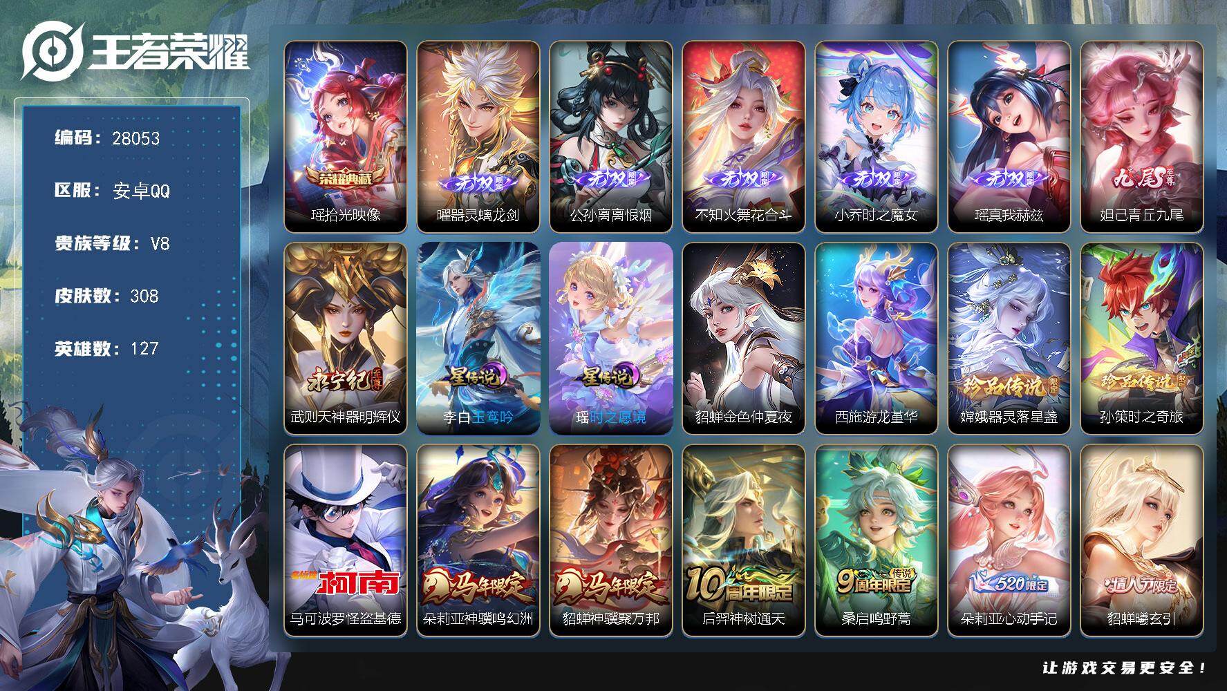 PX_2542689-可换绑【极品高质量v9·3典藏关羽诸葛亮李白·无双孙悟空·兔年曜·李逍遥·白虎志·青龙志·朱雀志·至尊宝·霸王别姬项羽虞姬·贵族积分12w】,11按键,4星传说,19王者印记,300五级铭文,无二次苹果Q-V9-415皮肤-3典藏皮肤-1无双-22传说-129史诗【英雄全皮】:刘邦全皮,孙权全皮,狂铁全皮,蒙恬全皮,夏洛特全皮,空空儿全皮,影全皮,海诺全皮【荣耀典藏】:李白鸣剑曳影,诸葛亮星域神启,关羽赤影疾锋【无双皮肤】:孙悟空无相【星元皮肤】:狄仁杰星际治安官,孙尚香未来机甲,宫本武藏幽冥之眼,貂蝉金色仲夏夜【传说皮肤】:王昭君长夜焕生,后羿神树通天,桑启鸣野蒿,夏洛特浮生妄,曜山海苍雷引,李白诗剑行,马可波罗深海之息,裴擒虎寅虎赤拳,赵云淬星耀世,曜李逍遥,,周瑜音你心动,虞姬启明星使,孙悟空零号赤焰,曜云鹰飞将,李信一念神魔,百里玄策白虎志,后羿黄金射手座,貂蝉仲夏夜之梦,孙尚香末日机甲,宫本武藏地狱之眼,孙悟空地狱火,狄仁杰超时空战士【限定皮肤】:虞姬夏日便利店,姜子牙天穹之誓,狄仁杰阴阳师,赵云皇家上将,墨子神迹守卫,嬴政优雅恋人,嬴政白昼王子,鲁班七号狮舞东方,庄周高山流水,高渐离死亡摇滚,高渐离玩趣恶龙,阿轲迷踪丽影,钟无艳超时空战士,孙膑天狼运算者,白起夜都怪侠,芈月重明,芈月幻夜卜梦,吕布猎兽之王,吕布御风骁将,周瑜赤莲之焰,元歌云间偶戏,元歌无心,夏侯惇朔风刀,甄姬游园惊梦,甄姬落雪兰心,曹操烛龙,典韦穷奇,典韦蓝屏警告,马可波罗暗影游猎,马可波罗深海之息,狄仁杰魔术师,狄仁杰万华元夜,达摩星际陆战队,达摩沙漠行僧,项羽海滩派对,项羽霸王别姬,老夫子醍醐杖,老夫子航海奇遇记,程咬金演武夺筹,刘邦夺宝奇兵,韩信逐梦之影,韩信傲雪梅枪,王昭君午后时光,兰陵王驯魔猎人,兰陵王金庭之子,花木兰青春决赛季,亚瑟潮玩骑士王,孙悟空至尊宝,孙悟空零号赤焰,牛魔御旌,后羿圣弓游侠,李元芳银河之约,李元芳云中旅人,虞姬霸王别姬,虞姬启明星使,钟馗神迹守卫,钟馗驱傩正仪,干将莫邪真爱魔法,雅典娜单词大作战,雅典娜黎明之约,蔡文姬繁星吟游,太乙真人饕餮,东皇太一逐梦之光,鬼谷子原初探秘者,鬼谷子五谷丰年,大乔白鹤梁神女,黄忠火炮绅士,铠青龙志,苏烈千军破阵,百里玄策白虎志,百里玄策原初追逐者,百里守约朱雀志,弈星混沌棋,梦奇顽趣,公孙离蜜橘之夏,沈梦溪星空之诺,沈梦溪大漠名商,明世隐疑决卦,明世隐吟游魔法,裴擒虎李小龙,裴擒虎寅虎赤拳,裴擒虎擒涛扼浪,狂铁御狮,狂铁电玩高手,米莱狄御霄,米莱狄胡桃异想国,云中君纤云弄巧,伽罗天狼溯光者,盾山御銮,猪八戒西部大镖客,上官婉儿梁祝,上官婉儿天狼绘梦者,嫦娥拒霜思,曜李逍遥,,曜山海苍雷引,蒙犽狂想玩偶喵,鲁班大师探海日志,镜匿光追影者,桑启海盐诗旅,夏洛特浮生妄,艾琳女武神,艾琳流音漫舞,司空震地狱燃心,阿古朵江河有灵,张良古海寻踪,蒙恬荣光圣徽,妲己灵卜魔法,鬼谷子天穹祈灯,姬小满妄想食味,刘邦剑破天穹,程咬金群星魔术团,海诺心动手记,周瑜熔金海岸【年限皮肤】:百里玄策白虎志,百里守约朱雀志,铠青龙志,吕布御风骁将,裴擒虎寅虎赤拳,曜山海苍雷引【赛季限定】:太乙真人饕餮,曹操烛龙,芈月重明,典韦穷奇,狂铁御狮,米莱狄御霄,牛魔御旌,盾山御銮,夏侯惇朔风刀,弈星混沌棋,明世隐疑决卦,老夫子醍醐杖,鬼谷子原初探秘者,狄仁杰万华元夜,程咬金演武夺筹,钟馗驱傩正仪,苏烈千军破阵,达摩沙漠行僧,兰陵王金庭之子,沈梦溪大漠名商,李元芳云中旅人,桑启海盐诗旅,裴擒虎擒涛扼浪,鲁班大师探海日志,张良古海寻踪,鬼谷子天穹祈灯,刘邦剑破天穹,姜子牙天穹之誓,东皇太一噬灭天穹,钟馗虚灵犬护,甄姬逆浪荇歌,亚瑟荣光之誓,百里玄策原初追逐者,雅典娜黎明之约,梦奇顽趣,蒙恬荣光圣徽,牛魔星界战将,项羽九幽镇关 【战令限定】:嬴政白昼王子,吕布猎兽之王,典韦蓝屏警告,鲁班七号狮舞东方,钟馗神迹守卫,兰陵王驯魔猎人,周瑜赤莲之焰,李元芳银河之约,沈梦溪星空之诺,阿轲迷踪丽影,刘邦夺宝奇兵,马可波罗暗影游猎,猪八戒西部大镖客,蒙犽狂想玩偶喵,雅典娜单词大作战,元歌云间偶戏,亚瑟潮玩骑士王,米莱狄胡桃异想国,达摩星际陆战队,老夫子航海奇遇记,墨子神迹守卫,干将莫邪真爱魔法,后羿圣弓游侠,黄忠火炮绅士,芈月幻夜卜梦,明世隐吟游魔法,白起夜都怪侠,狂铁电玩高手,王昭君午后时光,钟无艳超时空战士,甄姬落雪兰心,司空震地狱燃心,艾琳流音漫舞,妲己灵卜魔法,虞姬夏日便利店,亚连破空之剑,孙悟空神迹守卫,百里守约百相守梦,老夫子百相守梦,刘禅鸭鸭历险记,沈梦溪鸭鸭历险记,莱西奥光弋星穹,明世隐往忆晖光,周瑜线条小狗,小乔线条小狗【史诗皮肤】:达摩星君亢金,上官婉儿春霖将至,明世隐百晓客,蔡文姬奇遇梦乡,周瑜线条小狗,小乔线条小狗,项羽九幽镇关,少司缘巫礼祀神,女娲万灵启世,百里玄策罗小黑战记,莱西奥光弋星穹,黄忠百相守梦,后羿石田雨龙,扁鹊灵蛊蚀心,狂铁龙之律动,刘禅鸭鸭历险记,牛魔星界战将,百里守约百相守梦,亚连破空之剑,海诺心动手记,姬小满妄想食味,蒙恬荣光圣徽,妲己灵卜魔法,阿古朵江河有灵,司空震地狱燃心,镜玫瑰异探,梦奇顽趣,元歌无心,鬼谷子五谷丰年,钟无艳超时空战士,狂铁电玩高手,明世隐吟游魔法,澜赏金猎手,夏洛特永昼,哪吒雪上