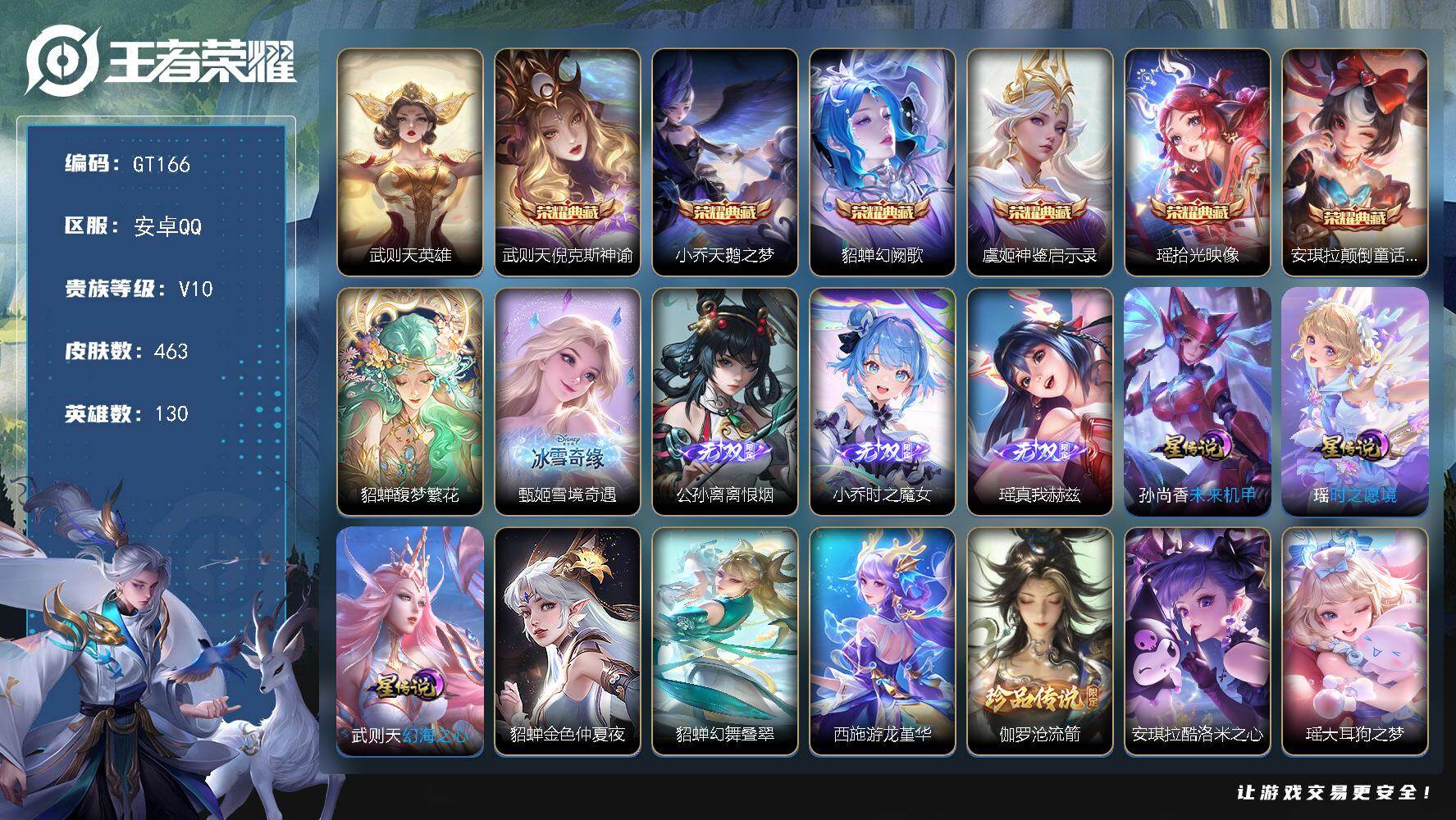 PX_2559891-可换绑【精品v10号女号推荐·小乔瑶西施貂蝉全皮·慕夏全套·4无双·7典藏含武则天·4珍品·马限貂蝉朵莉亚·星之鸣奏·时之奇旅·多女皮·无限倾心·星穹之声·异界灵契·涂山红红·多史诗限定女皮·魔法小厨娘·热情桑巴·紫瑶·6星传说·1天幕·贵族积分22w】,73按键,1天幕,6星传说,5戳戳,12王者印记,满级铭文,可二次,安卓Q-V10-463皮肤-6典藏皮肤-1典藏英雄-1珍品无双-4无双-4珍品传说-53传说-149史诗 【英雄全皮】:小乔全皮,貂蝉全皮,孙权全皮,朵莉亚全皮,钟馗全皮,杨玉环全皮,女娲全皮,鬼谷子全皮,狂铁全皮,瑶全皮,嫦娥全皮,敖隐全皮,西施全皮,影全皮,少司缘全皮【荣耀典藏】:武则天英雄,武则天倪克斯神谕,小乔天鹅之梦,貂蝉幻阙歌,虞姬神鉴启示录,瑶拾光映像,安琪拉颠倒童话魔镜【珍品无双】:貂蝉馥梦繁花【无双皮肤】:甄姬雪境奇遇,公孙离离恨烟,小乔时之魔女,瑶真我赫兹【珍品传说】:伽罗沧流箭,安琪拉酷洛米之心,瑶大耳狗之梦,嫦娥器灵落星盏【星元皮肤】:貂蝉金色仲夏夜,武则天幻海之心,孙尚香未来机甲,瑶时之愿境,貂蝉幻舞叠翠,西施游龙堇华【天幕】:繁花交响诗天幕【传说皮肤】:朵莉亚神骥鸣幻洲,貂蝉神骥聚万邦,王昭君长夜焕生,后羿神树通天,干将莫邪千山共赴,西施续相思,杨玉环星之鸣奏,女娲愿照千秋盛,妲己愿照众生和,蔡文姬愿照福禄聚,虞姬愿照岁时盈,云缨幻光神枪,桑启鸣野蒿,朵莉亚心动手记,海月金乌负日,貂蝉曦玄引,孙尚香乘龙问璇玑,艾琳觅芳踪,甄姬至美化雀舞,大乔时之奇旅,上官婉儿妄想奇谈,干将莫邪画中仙,虞姬无限倾心,小乔山海琳琅生,李白诗剑行,不知火舞绯月行,王昭君星穹之声,孙尚香音你闪耀,马可波罗深海之息,马超无双飞将,露娜启示之音,蔡文姬花朝如约,女娲补天,瑶时之祈愿,孙尚香异界灵契,貂蝉遇见胡旋,王昭君乞巧织情,西施游龙清影,周瑜音你心动,小乔音你心动,铠绛天战甲,镜炽阳神光,虞姬启明星使,伽罗太华,貂蝉猫影幻舞,张良黄金白羊座,干将莫邪久胜战神,虞姬云霓雀翎,花木兰冠军飞将,后羿黄金射手座,诸葛亮武陵仙君,貂蝉仲夏夜之梦,武则天海洋之心【限定皮肤】:白起狰,公孙离离恨烟,蔡文姬夏日便利店,大乔绒语心约,姜子牙天穹之誓,狄仁杰阴阳师,小乔纯白花嫁,虞姬凯尔特女王,小乔山海琳琅生,赵云皇家上将,墨子神迹守卫,妲己热情桑巴,妲己时之彼端,妲己时之奇旅,嬴政优雅恋人,孙尚香蔷薇恋人,孙尚香异界灵契,庄周高山流水,孙膑天狼运算者,孙膑寅虎展翼,扁鹊炼金王,白起夜都怪侠,芈月重明,芈月白晶晶,芈月幻夜卜梦,元歌云间偶戏,元歌无心,夏侯惇朔风刀,夏侯惇匿光决锋者,甄姬幽恒,甄姬女儿国国王,甄姬游园惊梦,甄姬至美化雀舞,曹操烛龙,典韦穷奇,马可波罗深海之息,狄仁杰魔术师,狄仁杰万华元夜,达摩星际陆战队,达摩沙漠行僧,项羽海滩派对,老夫子醍醐杖,老夫子航海奇遇记,貂蝉逐梦之音,貂蝉遇见胡旋,安琪拉魔法小厨娘,程咬金演武夺筹,露娜一生所爱,露娜启示之音,王昭君凤凰于飞,王昭君午后时光,王昭君星穹之声,兰陵王金庭之子,花木兰青春决赛季,不知火舞绯月行,亚瑟潮玩骑士王,牛魔御旌,后羿圣弓游侠,李元芳银河之约,虞姬霸王别姬,虞姬启明星使,虞姬无限倾心,钟馗神迹守卫,钟馗驱傩正仪,杨玉环遇见飞天,杨玉环寅虎心曲,女娲朔望之晖,女娲补天,干将莫邪冰霜恋舞曲,干将莫邪真爱魔法,干将莫邪画中仙,雅典娜黎明之约,蔡文姬奇迹圣诞,蔡文姬繁星吟游,太乙真人饕餮,鬼谷子原初探秘者,鬼谷子五谷丰年,诸葛亮武陵仙君,大乔白鹤梁神女,大乔时之奇旅,黄忠火炮绅士,苏烈千军破阵,百里玄策原初追逐者,弈星混沌棋,梦奇顽趣,公孙离蜜橘之夏,公孙离玉兔公主,沈梦溪星空之诺,沈梦溪大漠名商,明世隐疑决卦,明世隐吟游魔法,裴擒虎李小龙,狂铁御狮,狂铁电玩高手,米莱狄御霄,米莱狄胡桃异想国,瑶时之祈愿,瑶山海碧波行,云中君纤云弄巧,伽罗太华,伽罗天狼溯光者,盾山御銮,上官婉儿梁祝,上官婉儿天狼绘梦者,上官婉儿妄想奇谈,嫦娥如梦令,嫦娥拒霜思,嫦娥暖冬兔眠,西施玲珑珍味,西施至美乘鲤谣,鲁班大师探海日志,镜匿光追影者,桑启海盐诗旅,艾琳流音漫舞,司空震地狱燃心,阿古朵江河有灵,张良古海寻踪,艾琳觅芳踪,高渐离燃音魔法,妲己灵卜魔法,鬼谷子天穹祈灯,小乔时之魔女,安琪拉乘龙聚宝船,孙尚香乘龙问璇玑,貂蝉曦玄引,沈梦溪龙舞盛年,鲁班七号蔬乡物语,李元芳蔬乡物语,海月金乌负日,刘邦剑破天穹,上官婉儿群星魔术团,程咬金群星魔术团,朵莉亚心动手记,周瑜熔金海岸【年限皮肤】:王昭君凤凰于飞,甄姬幽恒,伽罗太华,孙膑寅虎展翼,杨玉环寅虎心曲,小乔山海琳琅生,瑶山海碧波行,孙尚香乘龙问璇玑,安琪拉乘龙聚宝船,女娲愿照千秋盛,妲己愿照众生和,蔡文姬愿照福禄聚,虞姬愿照岁时盈【赛季限定】:扁鹊炼金王,虞姬凯尔特女王,白起狰,太乙真人饕餮,曹操烛龙,芈月重明,典韦穷奇,狂铁御狮,米莱狄御霄,牛魔御旌,盾山御銮,夏侯惇朔风刀,弈星混沌棋,明世隐疑决卦,老夫子醍醐杖,鬼谷子原初探秘者,狄仁杰万华元夜,程咬金演武夺筹,钟馗驱傩正仪,苏烈千军破阵,达摩沙漠行僧,兰陵王金庭之子,沈梦溪大漠名商,桑启海盐诗旅,鲁班大师探海日志,张良古海寻踪,鬼谷子天穹祈灯,刘邦剑破天穹,姜子牙天穹之誓,太乙真人谧流熔炉,钟馗虚灵犬