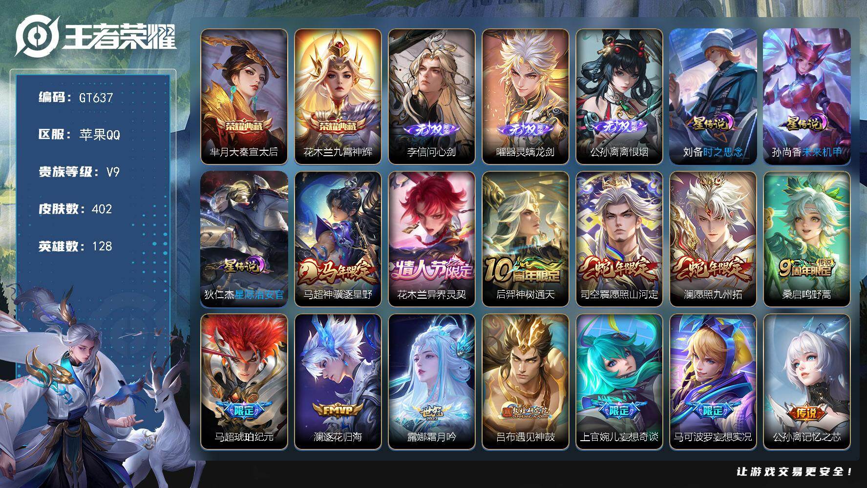 PX_2559750-可换绑【精品推荐高质量v9号·3无双·2典藏·花木兰全皮·吕布敦煌·兔年李信曜马克·公孙离牛年·白虎志·傲雪梅枪·白晶晶·】,5按键,3星传说,18王者印记,满级铭文,可二次苹果Q-V9-402皮肤-2典藏皮肤-3无双-36传说-110史诗【英雄全皮】:露娜全皮,孙权全皮,花木兰全皮,橘右京全皮百里玄策全皮,李信全皮,马超全皮,敖隐全皮,夏洛特全皮,司空震全皮,赵怀真全皮,戈娅全皮,海诺全皮【荣耀典藏】:芈月大秦宣太后,花木兰九霄神【无双皮肤】:李信问心剑,曜器灵螭龙剑,公孙离离恨烟【星元皮肤】:狄仁杰星际治安官,刘备时之思念,孙尚香未来机甲【传说皮肤】:马超神骥逐星野,花木兰异界灵契,后羿神树通天,司空震愿照山河定,澜愿照九州拓,桑启鸣野蒿,马超琥珀纪元,澜逐花归海,露娜霜月吟,吕布遇见神鼓,上官婉儿妄想奇谈,马可波罗妄想实况,公孙离记忆之芯,夏洛特浮生妄,花木兰燃星之曲,虞姬无限倾心,曜山海苍雷引,李信山海炽霜斩,李白诗剑行,不知火舞绯月行,橘右京枫霜尽,马可波罗深海之息,马超无双飞将,露娜启示之音,公孙离祈雪灵祝,镜炽阳神光,虞姬启明星使,曜云鹰飞将,李信一念神魔,刘备时之恋人,干将莫邪久胜战神,百里玄策白虎志,花木兰冠军飞将,梦奇胖达荣荣,孙尚香末日机甲,狄仁杰超时空战士【限定皮肤】:公孙离离恨烟,蔡文姬夏日便利店,大乔绒语心约,虞姬夏日便利店,姜子牙天穹之誓,狄仁杰阴阳师,赵云皇家上将,嬴政优雅恋人,庄周高山流水,高渐离玩趣恶龙,扁鹊奇幻香踪,芈月白晶晶,芈月幻夜卜梦,吕布御风骁将,吕布遇见神鼓,周瑜赤莲之焰,元歌云间偶戏,元歌无心,马可波罗暗影游猎,马可波罗深海之息,马可波罗山海玄木吟,马可波罗妄想实况,狄仁杰魔术师,达摩沙漠行僧,项羽海滩派对,貂蝉逐梦之音,露娜一生所爱,露娜启示之音,韩信傲雪梅枪,兰陵王金庭之子,花木兰青春决赛季,花木兰瑞麟志,花木兰默契交锋,花木兰燃星之曲,不知火舞绯月行,橘右京枫霜尽,孙悟空至尊宝,后羿圣弓游侠,李元芳匿光侦查者,李元芳云中旅人,虞姬启明星使,虞姬无限倾心,钟馗驱傩正仪,杨戬潮玩骑兵,干将莫邪真爱魔法,雅典娜黎明之约,鬼谷子五谷丰年,黄忠火炮绅士,苏烈千军破阵,百里玄策白虎志,百里玄策原初追逐者,梦奇顽趣,公孙离祈雪灵祝,公孙离玉兔公主,沈梦溪大漠名商,裴擒虎天狼狩猎者,裴擒虎擒涛扼浪,云中君纤云弄巧,李信山海炽霜斩,上官婉儿梁祝,上官婉儿妄想奇谈,嫦娥拒霜思,嫦娥暖冬兔眠,曜山海苍雷引,西施玲珑珍味,鲁班大师探海日志,桑启海盐诗旅,夏洛特浮生妄,暃星界游侠,戈娅驭风魔法,艾琳流音漫舞,赵怀真鹤归松栖,司空震地狱燃心,阿古朵江河有灵,张良古海寻踪,蒙犽百解令,蒙恬荣光圣徽,高渐离燃音魔法,妲己灵卜魔法,鬼谷子天穹祈灯,伽罗琥珀纪元,马超琥珀纪元,百里玄策超元猎域,沈梦溪龙舞盛年,鲁班七号蔬乡物语,李元芳蔬乡物语,刘邦剑破天穹,程咬金群星魔术团,镜青焰无极,项羽苍威无极,海诺心动手记,刘备异域游侠,周瑜熔金海岸【年限皮肤】:花木兰瑞麟志,百里玄策白虎志,公孙离祈雪灵祝,吕布御风骁将,曜山海苍雷引,李信山海炽霜斩,马可波罗山海玄木吟,司空震愿照山河定,澜愿照九州拓【赛季限定】:钟馗驱傩正仪,苏烈千军破阵,达摩沙漠行僧,兰陵王金庭之子,沈梦溪大漠名商,李元芳云中旅人,桑启海盐诗旅,裴擒虎擒涛扼浪,鲁班大师探海日志,张良古海寻踪,鬼谷子天穹祈灯,刘邦剑破天穹,姜子牙天穹之誓,东皇太一噬灭天穹,太乙真人谧流熔炉,钟馗虚灵犬护,甄姬逆浪荇歌,亚瑟荣光之誓,百里玄策原初追逐者,雅典娜黎明之约,梦奇顽趣,蒙恬荣光圣徽,牛魔星界战将,项羽九幽镇关 【战令限定】:周瑜赤莲之焰,马可波罗暗影游猎,元歌云间偶戏,干将莫邪真爱魔法,后羿圣弓游侠,黄忠火炮绅士,芈月幻夜卜梦,暃星界游侠,嫦娥暖冬兔眠,扁鹊奇幻香踪,杨戬潮玩骑兵,戈娅驭风魔法,西施玲珑珍味,司空震地狱燃心,艾琳流音漫舞,高渐离燃音魔法,妲己灵卜魔法,鲁班七号蔬乡物语,李元芳蔬乡物语,镜青焰无极,项羽苍威无极,蔡文姬夏日便利店,虞姬夏日便利店,亚连破空之剑,孙悟空神迹守卫,百里守约百相守梦,老夫子百相守梦,孙膑茶境仙,马超访茗客,周瑜百相守梦,孙策百相守梦,莱西奥光弋星穹,明世隐往忆晖光,周瑜线条小狗,小乔线条小狗 【史诗皮肤】:太乙真人瓦猫非猫,周瑜线条小狗,小乔线条小狗,项羽九幽镇关,少司缘巫礼祀神,女娲万灵启世,百里玄策罗小黑战记,莱西奥光弋星穹,公孙离涂山容容,周瑜百相守梦,狂铁龙之律动,阿轲化蝶舞,赵怀真器灵浮梦炉,弈星万物之道,孙膑茶境仙,牛魔星界战将,百里守约百相守梦,亚连破空之剑,蔡文姬夏日便利店,黄忠怒海争锋,海诺心动手记,镜青焰无极,鲁班七号蔬乡物语,百里玄策超元猎域,伽罗琥珀纪元,蒙恬荣光圣徽,高渐离燃音魔法,妲己灵卜魔法,蒙犽百解令,阿古朵江河有灵,司空震地狱燃心,李元芳匿光侦查者,赵怀真鹤归松栖,镜真我赫兹,戈娅驭风魔法,刘禅电玩爆裂旋风,扁鹊奇幻香踪,镜玫瑰异探,马可波罗山海玄木吟,暃星界游侠,梦奇顽趣,元歌无心,鬼谷子五谷丰年,澜赏金猎手,公孙离玉兔公主,夏洛特永昼,韩信傲雪梅枪,雅典娜黎明之约,黄忠火炮绅士,嫦娥拒霜思,司马懿暗渊魔法,庄周高山流水,干将莫邪真爱魔法,杨戬天秀启明,蒙犽龙鼓争鸣,百里玄策热力回