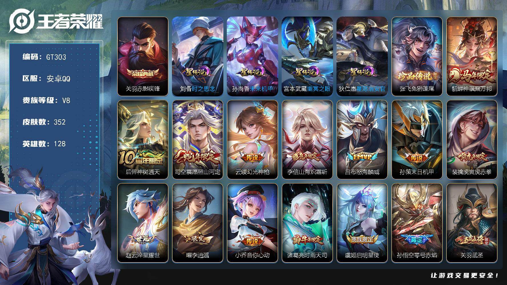 PX_2555671-可换绑【精品号推荐·对抗路49段·万战金标关羽·张飞珍品·关羽典藏·天魔缭乱·兔年李信·李逍遥·武圣·白虎志·默契交锋·御风骁将·白晶晶·冰霜恋舞曲·青春决赛季·霸王别姬】,211幸运值,12按键,4星传说,27王者印记,240五级铭文,无二次安卓Q-V8-352皮肤-1典藏皮肤-1珍品传说-29传说-104史诗【英雄全皮】:孙权全皮,司空震全皮,影全皮【荣耀典藏】:关羽赤影疾锋【珍品传说】:张飞兔狲蓬尾【星元皮肤】:狄仁杰星际治安官,刘备时之思念,孙尚香未来机甲,宫本武藏幽冥之眼【传说皮肤】:貂蝉神骥聚万邦,后羿神树通天,司空震愿照山河定,云缨幻光神枪,李信山海炽霜斩,吕布怒海麟威,孙策末日机甲,裴擒虎寅虎赤拳,赵云淬星耀世,曜李逍遥,,小乔音你心动,诸葛亮时雨天司,虞姬启明星使,孙悟空零号赤焰,关羽武圣,李信一念神魔,刘备时之恋人,张良黄金白羊座,干将莫邪久胜战神,达摩黄金狮子座,百里玄策白虎志,花木兰冠军飞将,梦奇胖达荣荣,后羿黄金射手座,李白凤求凰,孙尚香末日机甲,宫本武藏地狱之眼,吕布天魔缭乱,狄仁杰超时空战士【限定皮肤】:白起狰,大乔绒语心约,虞姬夏日便利店,姜子牙天穹之誓,狄仁杰阴阳师,赵云皇家上将,墨子神迹守卫,嬴政优雅恋人,庄周高山流水,高渐离死亡摇滚,高渐离玩趣恶龙,阿轲迷踪丽影,芈月白晶晶,吕布天魔缭乱,吕布御风骁将,周瑜赤莲之焰,元歌云间偶戏,元歌无心,夏侯惇朔风刀,甄姬游园惊梦,甄姬落雪兰心,典韦蓝屏警告,马可波罗逐梦之星,马可波罗暗影游猎,马可波罗山海玄木吟,狄仁杰魔术师,狄仁杰万华元夜,达摩星际陆战队,达摩沙漠行僧,项羽海滩派对,项羽霸王别姬,老夫子醍醐杖,老夫子航海奇遇记,关羽冰锋战神,关羽武圣,程咬金演武夺筹,刘邦夺宝奇兵,韩信飞衡,兰陵王驯魔猎人,兰陵王金庭之子,花木兰青春决赛季,花木兰默契交锋,亚瑟潮玩骑士王,孙悟空至尊宝,孙悟空零号赤焰,孙悟空孙行者,后羿圣弓游侠,刘备百相守梦,李元芳云中旅人,虞姬启明星使,钟馗驱傩正仪,干将莫邪冰霜恋舞曲,干将莫邪真爱魔法,雅典娜单词大作战,雅典娜黎明之约,鬼谷子原初探秘者,鬼谷子五谷丰年,诸葛亮时雨天司,苏烈千军破阵,百里玄策白虎志,百里玄策原初追逐者,弈星混沌棋,梦奇顽趣,沈梦溪大漠名商,明世隐疑决卦,裴擒虎李小龙,裴擒虎寅虎赤拳,裴擒虎擒涛扼浪,米莱狄胡桃异想国,云中君纤云弄巧,李信山海炽霜斩,伽罗天狼溯光者,盾山御銮,猪八戒西部大镖客,上官婉儿梁祝,上官婉儿天狼绘梦者,嫦娥拒霜思,曜李逍遥,,西施玲珑珍味,蒙犽狂想玩偶喵,鲁班大师探海日志,桑启海盐诗旅,艾琳流音漫舞,司空震地狱燃心,张良古海寻踪,蒙犽百解令,蒙恬荣光圣徽,鬼谷子天穹祈灯,刘邦剑破天穹,周瑜熔金海岸【年限皮肤】:李白凤求凰,百里玄策白虎志,韩信飞衡,诸葛亮时雨天司,吕布御风骁将,裴擒虎寅虎赤拳,李信山海炽霜斩,马可波罗山海玄木吟,司空震愿照山河定【赛季限定】:白起狰,盾山御銮,夏侯惇朔风刀,弈星混沌棋,明世隐疑决卦,老夫子醍醐杖,鬼谷子原初探秘者,狄仁杰万华元夜,程咬金演武夺筹,钟馗驱傩正仪,苏烈千军破阵,达摩沙漠行僧,兰陵王金庭之子,沈梦溪大漠名商,李元芳云中旅人,桑启海盐诗旅,裴擒虎擒涛扼浪,鲁班大师探海日志,张良古海寻踪,鬼谷子天穹祈灯,刘邦剑破天穹,姜子牙天穹之誓,东皇太一噬灭天穹,太乙真人谧流熔炉,钟馗虚灵犬护,甄姬逆浪荇歌,亚瑟荣光之誓,百里玄策原初追逐者,雅典娜黎明之约,梦奇顽趣,蒙恬荣光圣徽,牛魔星界战将,项羽九幽镇关【战令限定】:典韦蓝屏警告,兰陵王驯魔猎人,周瑜赤莲之焰,阿轲迷踪丽影,刘邦夺宝奇兵,马可波罗暗影游猎,猪八戒西部大镖客,蒙犽狂想玩偶喵,雅典娜单词大作战,元歌云间偶戏,亚瑟潮玩骑士王,米莱狄胡桃异想国,达摩星际陆战队,老夫子航海奇遇记,墨子神迹守卫,干将莫邪真爱魔法,后羿圣弓游侠,甄姬落雪兰心,西施玲珑珍味,司空震地狱燃心,艾琳流音漫舞,虞姬夏日便利店,百里守约百相守梦,老夫子百相守梦,周瑜百相守梦,孙策百相守梦,莱西奥光弋星穹,明世隐往忆晖光,周瑜线条小狗【史诗皮肤】:周瑜线条小狗,项羽九幽镇关,少司缘巫礼祀神,女娲万灵启世,百里玄策罗小黑战记,莱西奥光弋星穹,公孙离涂山容容,西施织梦人,云缨赞萌露比,周瑜百相守梦,狂铁龙之律动,阿轲化蝶舞,赵怀真器灵浮梦炉,弈星万物之道,牛魔星界战将,百里守约百相守梦,大司命东方月初,蒙恬荣光圣徽,蒙犽百解令,司空震地狱燃心,刘禅电玩爆裂旋风,刘备百相守梦,马可波罗山海玄木吟,梦奇顽趣,元歌无心,鬼谷子五谷丰年,澜赏金猎手,夏洛特永昼,雅典娜黎明之约,嫦娥拒霜思,司马懿暗渊魔法,庄周高山流水,孙悟空孙行者,钟馗乐园奇幻夜,干将莫邪真爱魔法,杨戬天秀启明,伽罗天狼溯光者,老夫子航海奇遇记,米莱狄胡桃异想国,花木兰默契交锋,吕布御风骁将,芈月白晶晶,元歌云间偶戏,云中君纤云弄巧,裴擒虎李小龙,百里玄策原初追逐者,蒙犽狂想玩偶喵,马可波罗暗影游猎,上官婉儿天狼绘梦者,橘右京修罗,阿轲迷踪丽影,不知火舞魅语,韩信飞衡,娜可露露晚萤,上官婉儿梁祝,兰陵王驯魔猎人,公孙离无限星赏官,狄仁杰鹰眼统帅,典韦蓝屏警告,干将莫邪冰霜恋舞曲,孙策猫狗日记,阿轲节奏热浪,白起星夜王子,程咬金功夫厨神,李元芳逐浪之夏,刘禅天才门将,蔡文姬