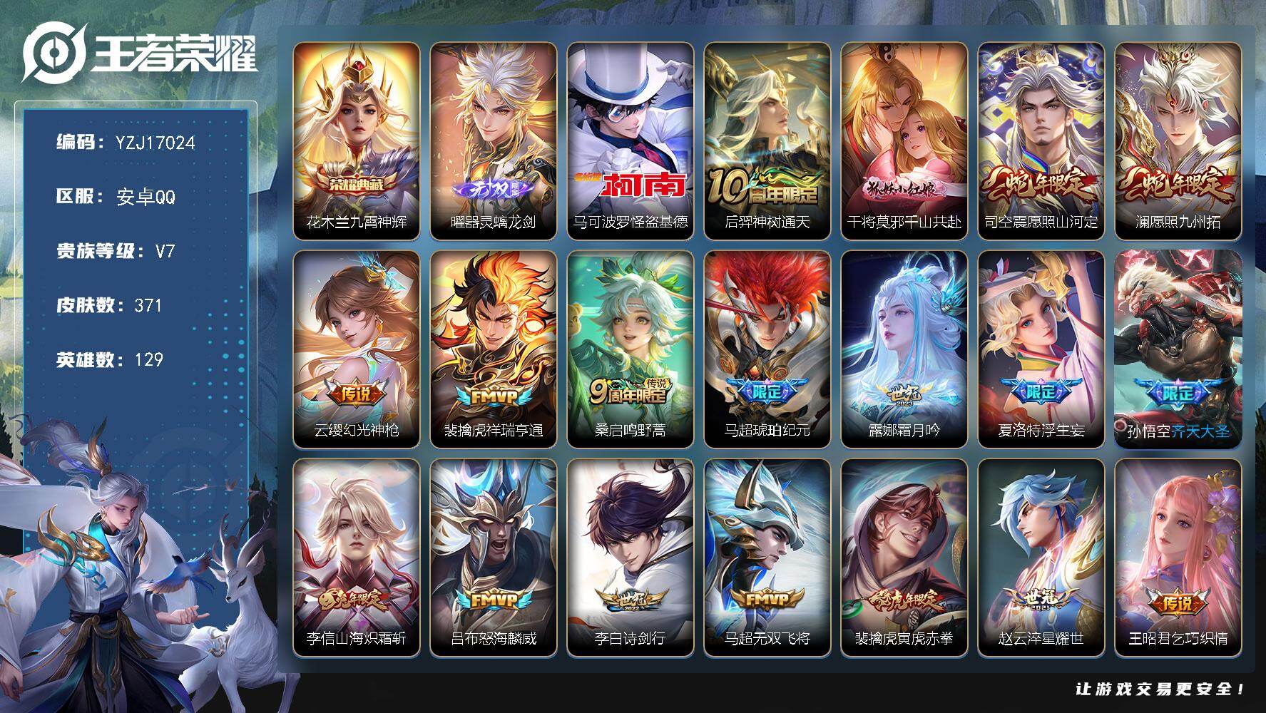 PX_2547840-??女国标贵族v10·52段中路·万战小国女娲·万战金标不知火舞·万战金标西施·全皮女娲·全皮嫦娥·全皮不知火舞·全皮杨玉环·全皮艾琳·紫瑶·无限倾慕·4典藏·2无双·5珍品·4星传说·56传说·59按键·339个性戳戳·春韵弦音天幕·可二次】YXw22706-安卓Q-129英雄-466皮肤-12王者印记-300铭文-贵族积分22w【贵族9】【4典藏·2无双·5珍品·4星传说·56传说·2天幕·59按键·339个性戳戳】【因赛季更新游戏段付以上号为准!】 【英雄全皮】:艾琳全皮,不知火舞全皮,杨玉环全皮,苍全皮,女娲全皮,鬼谷子全皮,苏烈全皮,猪八戒全皮,嫦娥全皮,敖隐全皮,夏洛特全皮,金蝉全皮,影全皮,海诺全皮,少司缘全皮 【荣耀典藏】:武则天英雄,小乔天鹅之梦,李白鸣剑曳影,伽罗最初的交响 【无双皮肤】:曜器灵螭龙剑,不知火舞花合斗 【珍品传说】:瑶大耳狗之梦,嫦娥器灵落星盏,孙策时之奇旅,鲁班七号江户川柯南,马可波罗怪盗基德 【星元皮肤】:虞姬无限倾慕,刘备时之思念,瑶时之愿境,武则天幻海之心 【天幕】:春韵弦音天幕,共赏芳华天幕 【传说皮肤】:后羿神树通天,西施续相思,杨玉环星之鸣奏,后羿千劫归真,司空震愿照山河定,女娲愿照千秋盛,妲己愿照众生和,澜愿照九州拓,蔡文姬愿照福禄聚,虞姬愿照岁时盈,云缨幻光神枪,裴擒虎祥瑞亨通,嬴政玄雷天君,王昭君映山客,桑启鸣野蒿,海月金乌负日,澜逐花归海,艾琳觅芳踪,露娜霜月吟,上官婉儿妄想奇谈,张飞百相守梦,公孙离记忆之芯,夏洛特浮生妄,花木兰燃星之曲,虞姬无限倾心,项羽无限倾心,伽罗炽翼辉光,小乔山海琳琅生,曜山海苍雷引,李信山海炽霜斩,不知火舞绯月行,王昭君星穹之声,娜可露露前尘镜,孙尚香音你闪耀,马可波罗深海之息,后羿无尽星芒,马超无双飞将,大乔挚爱花嫁,孙策挚爱之约,露娜启示之音,女娲补天,瑶时之祈愿,孙尚香异界灵契,貂蝉遇见胡旋,曜李逍遥,,李元芳飞鸢探春,虞姬启明星使,李信一念神魔,刘备时之恋人,百里玄策白虎志,后羿黄金射手座,诸葛亮武陵仙君,孙尚香末日机甲,宫本武藏地狱之眼,武则天海洋之心,狄仁杰超时空战士 【限定皮肤】:蔡文姬夏日便利店,大乔绒语心约,虞姬夏日便利店,姜子牙天穹之誓,狄仁杰阴阳师,小乔纯白花嫁,小乔山海琳琅生,赵云皇家上将,赵云龙胆,墨子神迹守卫,墨子降魔,嬴政优雅恋人,孙尚香蔷薇恋人,孙尚香异界灵契,庄周高山流水,钟无艳超时空战士,孙膑寅虎展翼,扁鹊奇幻香踪,白起夜都怪侠,芈月白晶晶,芈月幻夜卜梦,周瑜真爱至上,周瑜赤莲之焰,元歌云间偶戏,元歌无心,夏侯惇朔风刀,甄姬落雪兰心,马可波罗暗影游猎,马可波罗深海之息,马可波罗山海玄木吟,狄仁杰魔术师,狄仁杰万华元夜,达摩沙漠行僧,项羽海滩派对,项羽霸王别姬,项羽无限倾心,老夫子醍醐杖,老夫子航海奇遇记,关羽冰锋战神,貂蝉遇见胡旋,程咬金演武夺筹,露娜启示之音,韩信傲雪梅枪,王昭君午后时光,王昭君星穹之声,兰陵王金庭之子,花木兰燃星之曲,不知火舞绯月行,娜可露露前尘镜,亚瑟潮玩骑士王,孙悟空孙行者,后羿辉光之辰,后羿如梦令,后羿圣弓游侠,后羿无尽星芒,张飞百相守梦,李元芳云中旅人,虞姬霸王别姬,虞姬启明星使,虞姬无限倾心,钟馗驱傩正仪,杨玉环遇见飞天,杨玉环寅虎心曲,杨戬潮玩骑兵,女娲朔望之晖,女娲补天,干将莫邪冰霜恋舞曲,干将莫邪真爱魔法,雅典娜单词大作战,雅典娜黎明之约,蔡文姬繁星吟游,鬼谷子原初探秘者,鬼谷子五谷丰年,诸葛亮武陵仙君,大乔白鹤梁神女,大乔挚爱花嫁,黄忠火炮绅士,苏烈玄武志,苏烈千军破阵,百里玄策白虎志,弈星混沌棋,梦奇顽趣,公孙离玉兔公主,沈梦溪大漠名商,明世隐疑决卦,明世隐吟游魔法,裴擒虎天狼狩猎者,裴擒虎李小龙,裴擒虎擒涛扼浪,狂铁电玩高手,瑶时之祈愿,瑶山海碧波行,云中君纤云弄巧,云中君时之祈愿,李信山海炽霜斩,伽罗天狼溯光者,伽罗炽翼辉光,盾山御銮,孙策挚爱之约,猪八戒西部大镖客,猪八戒猪悟能,上官婉儿梁祝,上官婉儿天狼绘梦者,上官婉儿神器万象笔,上官婉儿妄想奇谈,嫦娥如梦令,嫦娥拒霜思,嫦娥暖冬兔眠,曜李逍遥,,曜山海苍雷引,西施玲珑珍味,西施至美乘鲤谣,蒙犽狂想玩偶喵,鲁班大师探海日志,盘古冰霜神祇,镜匿光追影者,桑启海盐诗旅,夏洛特浮生妄,金蝉唐三藏,暃星界游侠,艾琳女武神,艾琳流音漫舞,阿古朵江河有灵,张良古海寻踪,蒙犽百解令,艾琳觅芳踪,蒙恬荣光圣徽,高渐离燃音魔法,妲己灵卜魔法,鬼谷子天穹祈灯,伽罗琥珀纪元,姬小满妄想食味,沈梦溪龙舞盛年,曹操夜都魔契,海月金乌负日,刘邦剑破天穹,上官婉儿群星魔术团,程咬金群星魔术团,镜青焰无极,项羽苍威无极,海诺心动手记,芈月浮光幕影,周瑜熔金海岸,不知火舞花合斗 【年限皮肤】:后羿辉光之辰,苏烈玄武志,百里玄策白虎志,孙膑寅虎展翼,杨玉环寅虎心曲,小乔山海琳琅生,曜山海苍雷引,李信山海炽霜斩,瑶山海碧波行,马可波罗山海玄木吟,司空震愿照山河定,女娲愿照千秋盛,妲己愿照众生和,澜愿照九州拓,蔡文姬愿照福禄聚,虞姬愿照岁时盈 【赛季限定】:盾山御銮,夏侯惇朔风刀,弈星混沌棋,明世隐疑决卦,老夫子醍醐杖,鬼谷子原初探秘者,狄仁杰万华元夜,程咬金演武夺筹,钟馗驱傩正仪,苏烈千军破阵,达摩沙漠行僧,兰陵王金庭之子,沈梦溪大漠名商,李元芳云中旅人,桑启海盐诗旅,裴擒虎擒涛扼浪,鲁班大师探海日