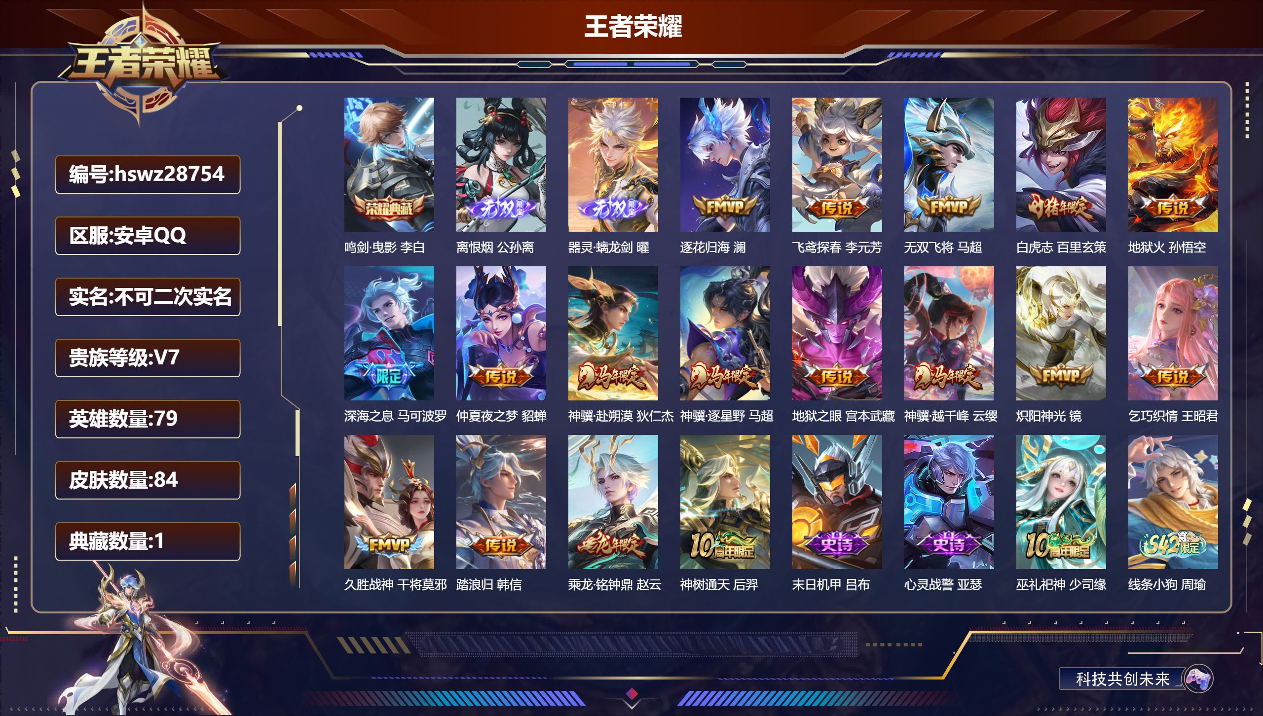 PX_2572343-,可二次,V6,贵族积分14798,安卓QQ/144皮肤/128英雄/0典藏/0珍品无双/0无双/0珍品传说/8传说/41史诗/8稀有英雄,对抗路41段,,历史(省标姬小满) 【8,传说皮肤】,纵目迁山,杨戬,无双飞将,马超,神骥·鸣幻洲,朵莉亚,怒海麟威,吕布,久胜战神,干将莫邪,末日机甲,孙策,神树通天,后羿,鸣野蒿,桑启, 【41,史诗皮肤】,燃音魔法,高渐离,猫狗日记,大乔,五谷丰年,鬼谷子,无心,元歌,鬼剑武藏,宫本武藏,百相守梦,黄忠,星夜王子,白起,锁墨魂,钟馗,线条小狗,周瑜,百晓客,明世隐,摇滚巨星,嬴政,顽趣,梦奇,修罗,橘右京,魅力维加斯,妲己,偶像歌手,王昭君,荣光圣徽,蒙恬,遇见神鹿,瑶,舞动绿茵,蔡文姬,鹰眼统帅,狄仁杰,李小龙,裴擒虎,金属风暴,墨子,猫狗日记,孙策,原初追逐者,百里玄策,真我赫兹,百里守约,未来纪元,赵云,魔术师,狄仁杰,皇家上将,赵云,水晶猎龙者,花木兰,涂山容容,公孙离,地狱岩魂,廉颇,蔷薇恋人,孙尚香,千年之狐,李白,心灵骇客,安琪拉,乱世虎臣,张飞,谪仙醉月,李白,绅士熊喵,刘禅,星界特工,马可波罗,水果甜心,孙尚香,江河有灵,阿古朵,幽灵船长,曹操,暗隐猎兽者,兰陵王, 【69,勇者皮肤】,圆桌骑士,盾山,太极少年,赵怀真,沙漠行僧,达摩,大漠名商,沈梦溪,缤纷绘卷,张良,纽约教父,刘备,拳王,达摩,龙舞盛年,沈梦溪,海盐诗旅,桑启,幻泉雾影,海月,归虚梦演,孙膑,白色死神,白起,黄金武士,典韦,阴阳师,狄仁杰,次元突破,哪吒,古海寻踪,张良,海滩派对,项羽,完美运算,后羿,红桃皇后,芈月,百相守梦,影,潮玩探月行,猪八戒,天穹祈灯,鬼谷子,幻乐之宴,鬼谷子,死亡骑士,亚瑟,敏锐之力,李白,危途狂花,戈娅,破局者,亚连,玩偶对对碰,安琪拉,掌控之力,诸葛亮,海滩丽影,钟无艳,忍·炎影,赵云,雪境奇遇,西施,炽热元素使,姜子牙,坚韧之力,苏烈,擒涛扼浪,裴擒虎,乓乓大师,鲁班大师,极光幻客,蚩奼,探海日志,鲁班大师,兔女郎,花木兰,龙腾万里,关羽,金庭之子,兰陵王,未来纪元,宫本武藏,罗小黑战记,哪吒,千军破阵,苏烈,零食大作战,姬小满,荣光之誓,亚瑟,花好人间,甄姬,万象初新,宫本武藏,聚星闪耀,钟无艳,教廷特使,韩信,街头霸王,韩信,云中旅人,李元芳,妄想特派,李元芳,灵卜魔法,妲己,蔚蓝守将,蒙恬,契约魔法,米莱狄,特工战影,狂铁,劲辣红锅,太乙真人,罗小黑战记,张良,剑破天穹,刘邦,熔金海岸,周瑜,天穹之誓,姜子牙,魅影绮裳,影,星梦巡礼,姜子牙,鹤鸣心笺,艾琳,逆浪荇歌,甄姬,海之女神,海月,线条小狗,周瑜,景韶洛都,明世隐, 【27,其他皮肤】,金属狂潮,高渐离,潮流仙人,老夫子,超能战警,曹操,花见巫女,伽罗,第七人偶,干将莫邪,万圣前夜,小乔,灼热之刃,李信,帝国元帅,项羽,星航指挥官,诸葛亮,午夜歌剧院,元歌,启蛰,司空震,花间舞,公孙离,异域舞娘,貂蝉,街头旋风,裴擒虎,东海龙王,东皇太一,修竹墨客,上官婉儿,剑舞者,花木兰,占星师,明世隐,埃及法老,杨戬,年年有余,猪八戒,归虚梦演,曜,特种部队,李元芳,绝影神枪,百里守约,孤猎,澜,秩序猎龙将,蒙恬,精准探案法,米莱狄,天启骑士,关羽, 【8,稀有英雄】,敖隐,不知火舞,橘右京,夏洛特,娜可露露,韩信,艾琳,赵云, 营地ID:,