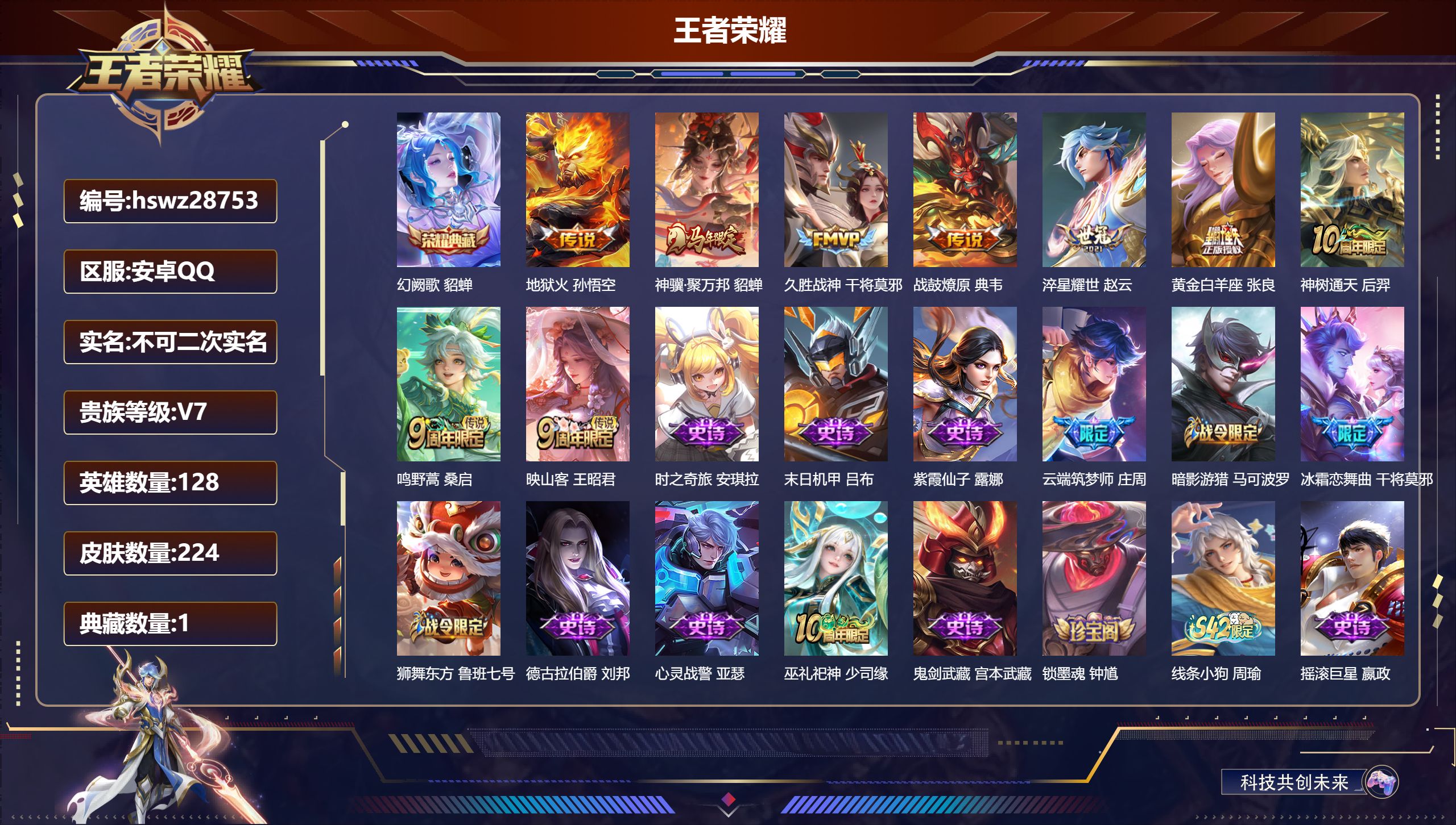 PX_2572315-,可二次,V5,贵族积分5511,安卓QQ/117皮肤/115英雄/0典藏/0珍品无双/0无双/0珍品传说/4传说/38史诗/7稀有英雄 【4,传说皮肤】,飞鸢探春,李元芳,黄金射手座,后羿,神树通天,后羿,鸣野蒿,桑启, 【38,史诗皮肤】,蔬乡物语,鲁班七号,百解令,蒙犽,高山流水,庄周,无心,元歌,巫礼祀神,少司缘,鬼剑武藏,宫本武藏,星夜王子,白起,线条小狗,周瑜,拒霜思,嫦娥,魅力维加斯,妲己,女仆咖啡,妲己,繁星吟游,蔡文姬,鹰眼统帅,狄仁杰,匿光侦查者,李元芳,逐浪之夏,李元芳,未来纪元,赵云,龙之律动,狂铁,皇家上将,赵云,天才门将,刘禅,圣诞恋歌,貂蝉,涂山容容,公孙离,圣诞狂欢,吕布,地狱岩魂,廉颇,冰雪圆舞曲,甄姬,青蛇,小乔,月团寄思,沈梦溪,万灵启世,女娲,心灵骇客,安琪拉,天穹守望者,后羿,绅士熊喵,刘禅,陌上桑,艾琳,百相守梦,百里守约,线条小狗,小乔,时之恋人,孙尚香,水果甜心,孙尚香,化蝶舞,阿轲,江河有灵,阿古朵,幽灵船长,曹操, 【58,勇者皮肤】,爱心护理,阿轲,拳王,达摩,沉稳之力,孙尚香,幻泉雾影,海月,朔望之晖,女娲,归虚梦演,孙膑,阴阳师,狄仁杰,古海寻踪,张良,戏梦巡演,空空儿,海滩派对,项羽,完美运算,后羿,克喵,鬼谷子,踏浪烽翎,莱西奥,奇妙博物学,庄周,野性能量,吕布,百相守梦,影,天穹祈灯,鬼谷子,金色潮汐,朵莉亚,幻乐之宴,鬼谷子,虹云星官,明世隐,救世之瞳,扁鹊,死亡骑士,亚瑟,玩偶对对碰,安琪拉,雪境奇遇,西施,乓乓大师,鲁班大师,溯影追猎,虞姬,女武神,艾琳,未来纪元,宫本武藏,荣光之誓,亚瑟,聚星闪耀,钟无艳,春野之旅,钟无艳,黑猫爱糖果,李元芳,紫罗兰之誓,妲己,蔬乡物语,李元芳,布丁狗之约,阿古朵,命运加冕,露娜,小满鸭,姬小满,潮玩士官长,雅典娜,虚灵犬护,钟馗,漠中幻影,嫦娥,剑破天穹,刘邦,熔金海岸,周瑜,苍林狼骑,苍,魅影绮裳,影,鹤鸣心笺,艾琳,线条小狗,妲己,锦麟游梦,庄周,云械蓝图,云中君,逆浪荇歌,甄姬,海之女神,海月,线条小狗,周瑜,线条小狗,桑启,百相守梦,老夫子,噬灭天穹,东皇太一,灵卦秘语,少司缘,怪诞之夜,米莱狄,玫蓝誓约,戈娅,景韶洛都,明世隐, 【18,其他皮肤】,前尘,金蝉,极冰防御线,盾山,第七人偶,干将莫邪,万圣前夜,小乔,精灵王,后羿,花间舞,公孙离,东海龙王,东皇太一,维京掠夺者,苍,占星师,明世隐,归虚梦演,西施,画中游,桑启,一千零一夜,张良,战争女神,雅典娜,特种部队,李元芳,蔷薇王座,蔡文姬,踏雪寻梅,弈星,赤焰之缨,云缨,露花倒影,嫦娥, 【7,稀有英雄】,不知火舞,橘右京,夏洛特,娜可露露,韩信,艾琳,赵云, 营地ID:,