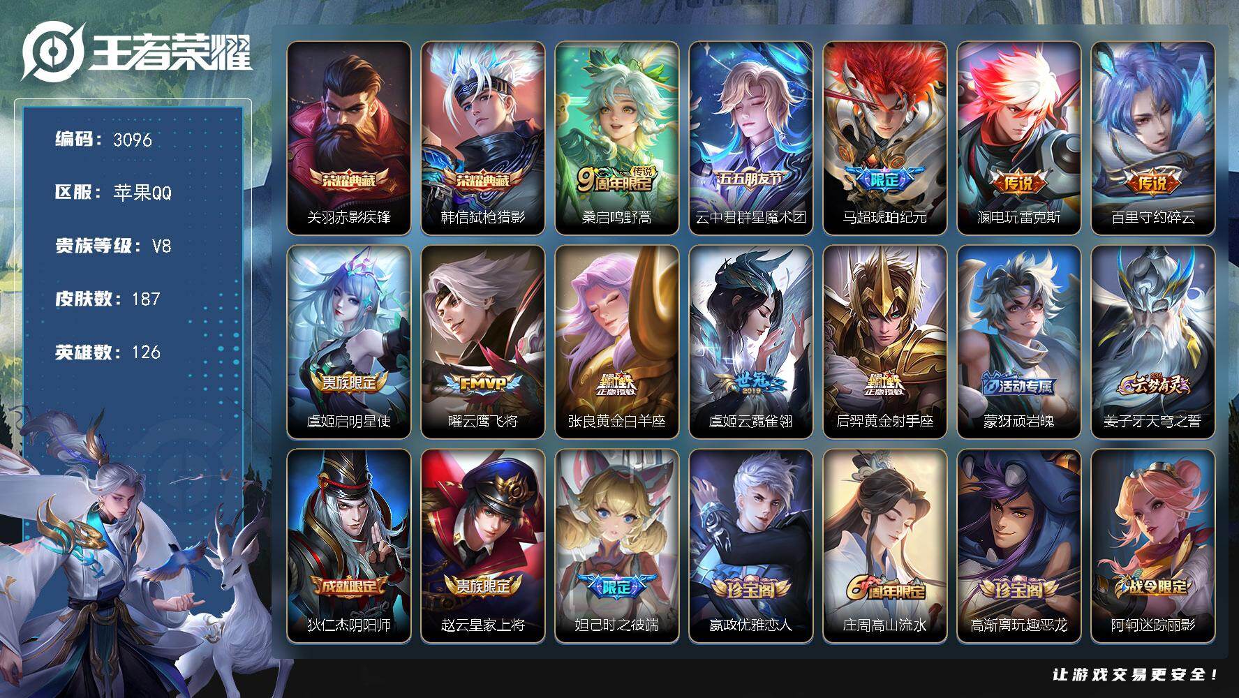 PX_2502053-【诸葛亮典藏,马超神骥逐星野20传说2珍品362皮爽号!!】苹果Q-V8-最强王者段位-128英雄-362皮肤-1典藏皮肤-2珍品传说-20传说-110史诗 【英雄全皮】:孙权全皮,苍全皮,敖隐全皮,戈娅全皮,空空儿全皮,影全皮 【荣耀典藏】:诸葛亮星域神启 【珍品传说】:嫦娥器灵落星盏,孙策时之奇旅 【传说皮肤】:马超神骥逐星野,后羿神树通天,女娲愿照千秋盛,虞姬愿照岁时盈,桑启鸣野蒿,孙尚香乘龙问璇玑,伽罗炽翼辉光,狄仁杰神器狴犴令,李元芳飞鸢探春,诸葛亮时雨天司,镜炽阳神光,虞姬启明星使,刘备时之恋人,虞姬云霓雀翎,达摩黄金狮子座,梦奇胖达荣荣,貂蝉仲夏夜之梦,孙尚香末日机甲,宫本武藏地狱之眼,狄仁杰超时空战士 【限定皮肤】:蔡文姬夏日便利店,虞姬夏日便利店,姜子牙天穹之誓,狄仁杰阴阳师,赵云皇家上将,墨子神迹守卫,嬴政白昼王子,孙尚香蔷薇恋人,鲁班七号狮舞东方,高渐离死亡摇滚,芈月重明,吕布猎兽之王,元歌云间偶戏,元歌无心,夏侯惇朔风刀,典韦穷奇,典韦蓝屏警告,典韦岱宗,马可波罗逐梦之星,马可波罗山海玄木吟,狄仁杰魔术师,狄仁杰万华元夜,狄仁杰神器狴犴令,达摩星际陆战队,达摩沙漠行僧,项羽海滩派对,老夫子醍醐杖,老夫子航海奇遇记,程咬金演武夺筹,韩信飞衡,王昭君午后时光,兰陵王金庭之子,花木兰瑞麟志,亚瑟潮玩骑士王,孙悟空大圣娶亲,孙悟空孙行者,牛魔御旌,后羿圣弓游侠,李元芳匿光侦查者,李元芳云中旅人,虞姬启明星使,钟馗神迹守卫,钟馗驱傩正仪,杨玉环遇见飞天,女娲朔望之晖,干将莫邪冰霜恋舞曲,雅典娜单词大作战,雅典娜黎明之约,太乙真人饕餮,东皇太一逐梦之光,鬼谷子原初探秘者,诸葛亮时雨天司,铠青龙志,苏烈千军破阵,百里玄策原初追逐者,弈星混沌棋,梦奇顽趣,沈梦溪大漠名商,明世隐疑决卦,裴擒虎天狼狩猎者,裴擒虎李小龙,米莱狄御霄,米莱狄胡桃异想国,云中君纤云弄巧,伽罗炽翼辉光,盾山御銮,嫦娥拒霜思,嫦娥暖冬兔眠,蒙犽狂想玩偶喵,鲁班大师探海日志,镜匿光追影者,桑启海盐诗旅,戈娅驭风魔法,艾琳女武神,艾琳流音漫舞,司空震地狱燃心,阿古朵江河有灵,张良古海寻踪,蒙犽百解令,蒙恬荣光圣徽,鬼谷子天穹祈灯,伽罗琥珀纪元,孙尚香乘龙问璇玑,沈梦溪龙舞盛年,鲁班七号蔬乡物语,李元芳蔬乡物语,刘邦剑破天穹,程咬金群星魔术团,镜青焰无极,项羽苍威无极,周瑜熔金海岸 【年限皮肤】:花木兰瑞麟志,铠青龙志,典韦岱宗,韩信飞衡,诸葛亮时雨天司,马可波罗山海玄木吟,孙尚香乘龙问璇玑,女娲愿照千秋盛,虞姬愿照岁时盈 【赛季限定】:太乙真人饕餮,芈月重明,典韦穷奇,米莱狄御霄,牛魔御旌,盾山御銮,夏侯惇朔风刀,弈星混沌棋,明世隐疑决卦,老夫子醍醐杖,鬼谷子原初探秘者,狄仁杰万华元夜,程咬金演武夺筹,钟馗驱傩正仪,苏烈千军破阵,达摩沙漠行僧,兰陵王金庭之子,沈梦溪大漠名商,李元芳云中旅人,桑启海盐诗旅,鲁班大师探海日志,张良古海寻踪,鬼谷子天穹祈灯,刘邦剑破天穹,姜子牙天穹之誓,东皇太一噬灭天穹,太乙真人谧流熔炉,钟馗虚灵犬护,甄姬逆浪荇歌,亚瑟荣光之誓,百里玄策原初追逐者,雅典娜黎明之约,梦奇顽趣,蒙恬荣光圣徽,牛魔星界战将,项羽九幽镇关 【战令限定】:嬴政白昼王子,吕布猎兽之王,典韦蓝屏警告,女娲朔望之晖,鲁班七号狮舞东方,钟馗神迹守卫,蒙犽狂想玩偶喵,雅典娜单词大作战,元歌云间偶戏,亚瑟潮玩骑士王,米莱狄胡桃异想国,达摩星际陆战队,老夫子航海奇遇记,墨子神迹守卫,后羿圣弓游侠,王昭君午后时光,嫦娥暖冬兔眠,戈娅驭风魔法,司空震地狱燃心,艾琳流音漫舞,鲁班七号蔬乡物语,李元芳蔬乡物语,镜青焰无极,项羽苍威无极,蔡文姬夏日便利店,虞姬夏日便利店,亚连破空之剑,孙悟空神迹守卫,百里守约百相守梦,老夫子百相守梦,孙膑茶境仙,马超访茗客,刘禅鸭鸭历险记,沈梦溪鸭鸭历险记,周瑜线条小狗 【史诗皮肤】:周瑜线条小狗,项羽九幽镇关,少司缘巫礼祀神,女娲万灵启世,公孙离涂山容容,黄忠百相守梦,狂铁龙之律动,刘禅鸭鸭历险记,阿轲化蝶舞,狄仁杰绮世丹青,苍狼魂孤将,赵怀真器灵浮梦炉,弈星万物之道,孙膑茶境仙,牛魔星界战将,百里守约百相守梦,马可波罗星界特工,亚连破空之剑,蔡文姬夏日便利店,镜青焰无极,鲁班七号蔬乡物语,伽罗琥珀纪元,蒙恬荣光圣徽,蒙犽百解令,阿古朵江河有灵,司空震地狱燃心,李元芳匿光侦查者,莱西奥末日机甲,戈娅驭风魔法,镜玫瑰异探,马可波罗山海玄木吟,梦奇顽趣,元歌无心,艾琳奇遇舞章,雅典娜黎明之约,镜匿光追影者,嫦娥拒霜思,司马懿暗渊魔法,孙悟空孙行者,杨戬天秀启明,老夫子航海奇遇记,米莱狄胡桃异想国,元歌云间偶戏,云中君纤云弄巧,裴擒虎李小龙,百里玄策原初追逐者,蒙犽狂想玩偶喵,孙尚香时之恋人,瑶遇见神鹿,橘右京修罗,不知火舞魅语,小乔青蛇,大乔白蛇,典韦岱宗,韩信飞衡,娜可露露晚萤,公孙离无限星赏官,狄仁杰鹰眼统帅,鲁班七号狮舞东方,裴擒虎天狼狩猎者,伽罗箭羽风息,典韦蓝屏警告,花木兰瑞麟志,孙悟空大圣娶亲,干将莫邪冰霜恋舞曲,铠青龙志,大乔猫狗日记,孙策猫狗日记,嬴政白昼王子,东皇太一逐梦之光,杨玉环遇见飞天,阿轲节奏热浪,白起星夜王子,程咬金功夫厨神,李元芳逐浪之夏,蔡文姬舞动绿茵,铠曙光守护者,百里守约特工魅影,安琪拉心灵骇客,雅典娜冰冠公主,亚瑟心灵