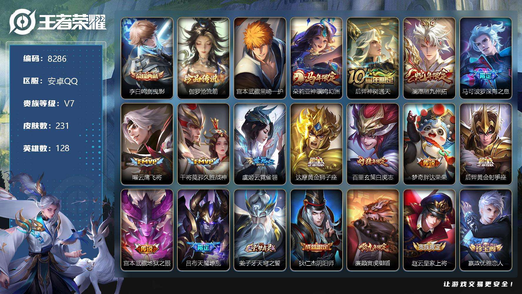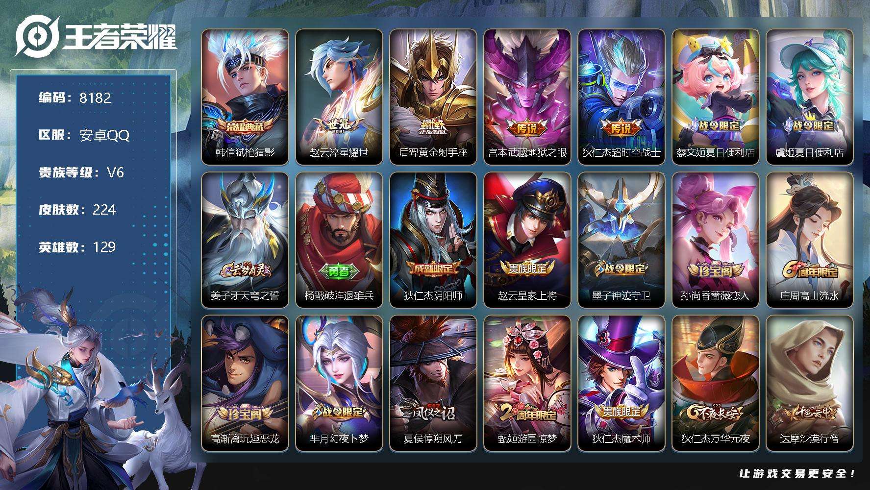 PX_2563588-Q/尊贵铂金/206皮肤/129英雄/1典藏/0珍品无双/0无双/1珍品传说/12传说/67史诗/9稀有英雄 【1,珍品传说】怪盗基德,马可波罗, 【1,典藏皮肤】弑枪猎影,韩信, 【12,传说皮肤】无双飞将,马超,神器·狴犴令,狄仁杰,诗剑行,李白,地狱之眼,宫本武藏,炽阳神光,镜,乞巧织情,王昭君,久胜战神,干将莫邪,末日机甲,孙尚香,末日机甲,孙策,神树通天,后羿,愿照·山河定,司空震,鸣野蒿,桑启, 【67,史诗皮肤】电玩小子,鲁班七号,末日机甲,吕布,紫霞仙子,露娜,高山流水,庄周,苍穹之光,项羽,妄想食味,姬小满,德古拉伯爵,刘邦,山海·玄木吟,马可波罗,五谷丰年,鬼谷子,无心,元歌,鬼剑武藏,宫本武藏,星夜王子,白起,无限星赏官,公孙离,地狱燃心,司空震,线条小狗,周瑜,遇见飞天,杨玉环,顽趣,梦奇,修罗,橘右京,魅力维加斯,妲己,偶像歌手,王昭君,荣光圣徽,蒙恬,白蛇,大乔,赏金猎手,澜,星界游侠,暃,舞动绿茵,蔡文姬,鹰眼统帅,狄仁杰,孙行者,孙悟空,李小龙,裴擒虎,驯魔猎人,兰陵王,金属风暴,墨子,特工魅影,百里守约,原初追逐者,百里玄策,逐浪之夏,李元芳,未来纪元,赵云,朱雀志,百里守约,黎明之约,雅典娜,驭风魔法,戈娅,魔术师,狄仁杰,埋骨钱,暃,皇家上将,赵云,至尊宝,孙悟空,战舞者,姬小满,天才门将,刘禅,水晶猎龙者,花木兰,破空之剑,亚连,圣诞狂欢,吕布,青焰无极,镜,魅语,不知火舞,群星魔术团,上官婉儿,夏日便利店,蔡文姬,星界战将,牛魔,永昼,夏洛特,地狱岩魂,廉颇,冰雪圆舞曲,甄姬,火炮绅士,黄忠,月团寄思,沈梦溪,节奏热浪,阿轲,暗夜猫娘,阿轲,超时空战士,钟无艳,曙光守护者,铠,乱世虎臣,张飞,缤纷独角兽,小乔,水果甜心,孙尚香,江河有灵,阿古朵,幽灵船长,曹操,乘风破浪,夏侯惇,暗隐猎兽者,兰陵王, 【100,勇者皮肤】时空谍影,海诺,玲珑珍味,西施,太极少年,赵怀真,沙漠行僧,达摩,大漠名商,沈梦溪,暖冬絮语,程咬金,纽约教父,刘备,拳王,达摩,龙舞盛年,沈梦溪,乐园追猎者,白起,丁香结,小乔,幻夜卜梦,芈月,海盐诗旅,桑启,幻泉雾影,海月,醍醐杖,老夫子,热血海滩,哪吒,黄金武士,典韦,王牌新星,海月,落雪兰心,甄姬,阴阳师,狄仁杰,古海寻踪,张良,牛运亨通,牛魔,功夫老勺,老夫子,鲨炮海盗猫,沈梦溪,虎啸剑宗,刘邦,海滩派对,项羽,万华元夜,狄仁杰,演武夺筹,程咬金,奇妙博物学,庄周,哥特玫瑰,露娜,原初探秘者,鬼谷子,潮玩探月行,猪八戒,鸿运当头,亚瑟,天穹祈灯,鬼谷子,决胜大满贯,曹操,疑决卦,明世隐,阿尔法小队,后羿,五福同心,张飞,金色潮汐,朵莉亚,次元傲视,杨戬,潮玩牛仔,马可波罗,救世之瞳,扁鹊,死亡骑士,亚瑟,敏锐之力,李白,破局者,亚连,玩偶对对碰,安琪拉,掌控之力,诸葛亮,忍·炎影,赵云,雪境奇遇,西施,炽热元素使,姜子牙,坚韧之力,苏烈,万事如意,刘备,擒涛扼浪,裴擒虎,乓乓大师,鲁班大师,探海日志,鲁班大师,玩趣恶龙,高渐离,兔女郎,花木兰,龙腾万里,关羽,流音漫舞,艾琳,金庭之子,兰陵王,幻夜行动,兰陵王,未来纪元,宫本武藏,千军破阵,苏烈,零食大作战,姬小满,荣光之誓,亚瑟,花好人间,甄姬,时尚教父,姜子牙,街头霸王,韩信,云中旅人,李元芳,妄想特派,李元芳,紫罗兰之誓,妲己,进击墨子号,墨子,混沌棋,弈星,蔚蓝守将,蒙恬,契约魔法,米莱狄,暖冬·兔眠,嫦娥,绒语心约,大乔,驱傩正仪,钟馗,劲辣红锅,太乙真人,神迹守卫,孙悟空,剑破天穹,刘邦,异域游侠,刘备,苍威无极,项羽,铁骨偃魂,典韦,熔金海岸,周瑜,苍林狼骑,苍,天穹之誓,姜子牙,魅影绮裳,影,长夏之忆,貂蝉,星梦巡礼,姜子牙,谧流熔炉,太乙真人,暗都幽影,大司命,夏日便利店,虞姬,鹤鸣心笺,艾琳,逆浪荇歌,甄姬,线条小狗,周瑜,噬灭天穹,东皇太一,敬我三分,盘古,玫蓝誓约,戈娅,景韶洛都,明世隐, 【27,其他皮肤】金属狂潮,高渐离,芝加哥教父,黄忠,棒球奇才,沈梦溪,第七人偶,干将莫邪,灼热之刃,李信,碧珀绯影,暃,海军大将,周瑜,午夜歌剧院,元歌,启蛰,司空震,花间舞,公孙离,归虚梦演,鲁班大师,东海龙王,东皇太一,修竹墨客,上官婉儿,维京掠夺者,苍,激情绿茵,马可波罗,埃及法老,杨戬,画中游,桑启,年年有余,猪八戒,尼罗河女神,女娲,归虚梦演,曜,威尼斯狂欢,百里玄策,幸存者,马超,绝影神枪,百里守约,孤猎,澜,赤焰之缨,云缨,露花倒影,嫦娥,怪盗基德,马可波罗, 【9,稀有英雄】敖隐,嬴政,不知火舞,橘右京,夏洛特,娜可露露,韩信,艾琳,赵云, 营地ID:,