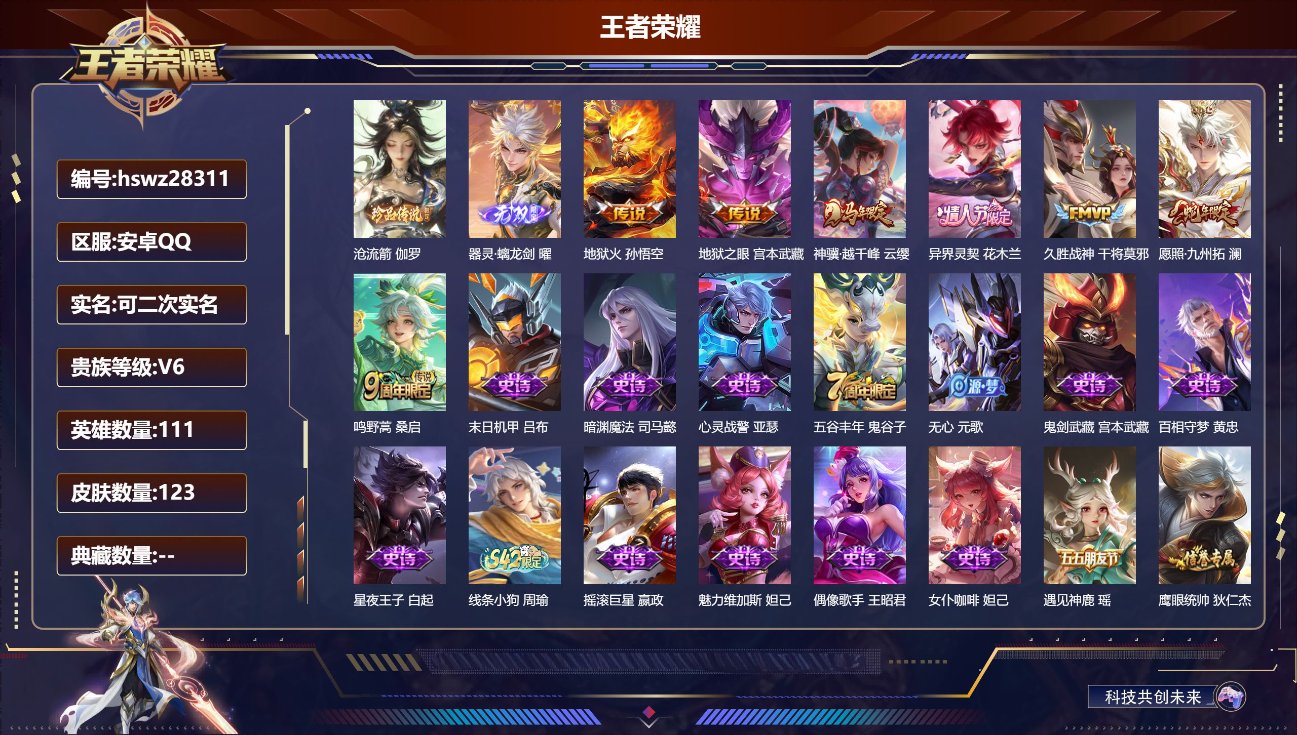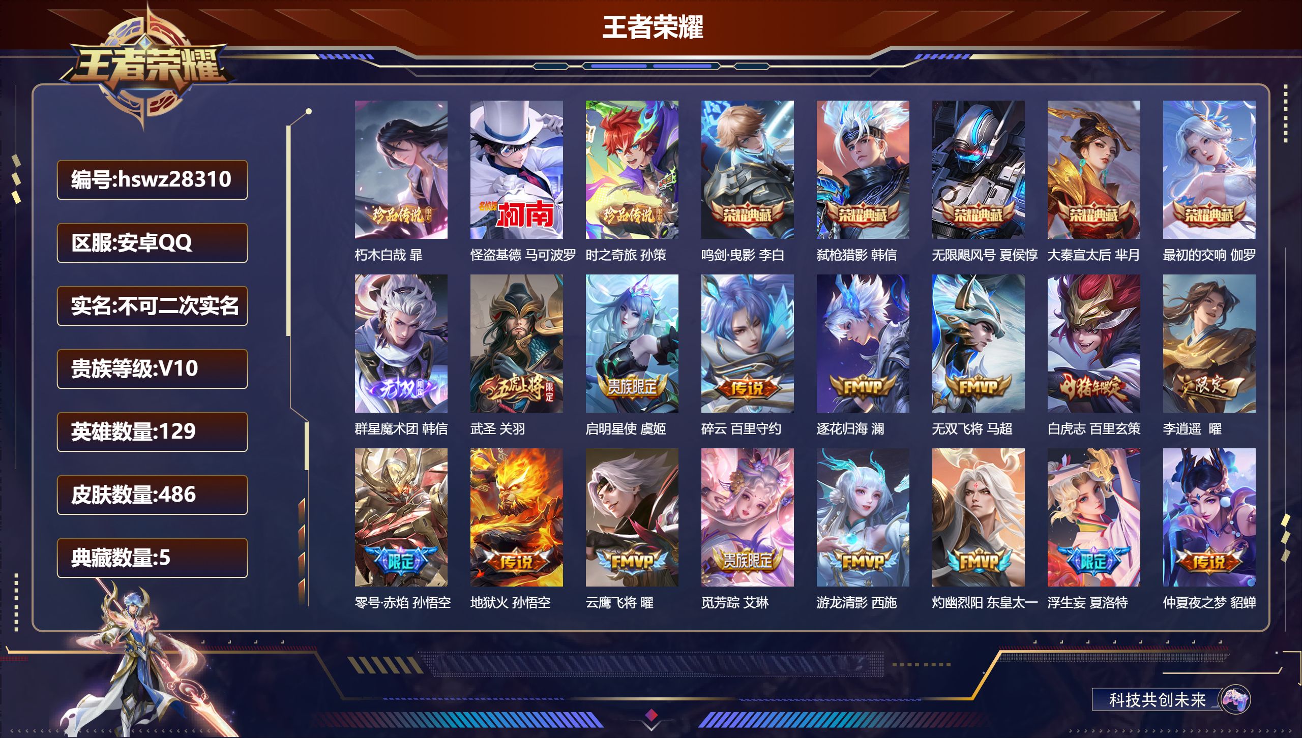 PX_2558183-Q/至尊星耀/486皮肤/129英雄/5典藏/0珍品无双/1无双/3珍品传说/35传说/156史诗/9稀有英雄 【3,珍品传说】朽木白哉,暃,怪盗基德,马可波罗,时之奇旅,孙策, 【5,典藏皮肤】鸣剑·曳影,李白,弑枪猎影,韩信,无限飓风号,夏侯惇,大秦宣太后,芈月,最初的交响,伽罗, 【1,无双皮肤】群星魔术团,韩信, 【35,传说皮肤】武圣,关羽,启明星使,虞姬,碎云,百里守约,逐花归海,澜,无双飞将,马超,白虎志,百里玄策,李逍遥,,曜,零号·赤焰,孙悟空,地狱火,孙悟空,云鹰飞将,曜,觅芳踪,艾琳,游龙清影,西施,灼幽烈阳,东皇太一,浮生妄,夏洛特,仲夏夜之梦,貂蝉,神骥·赴朔漠,狄仁杰,地狱之眼,宫本武藏,默契交锋,兰陵王,炽阳神光,镜,黄金射手座,后羿,怒海麟威,吕布,时之恋人,刘备,黄金狮子座,达摩,久胜战神,干将莫邪,异界灵契,孙尚香,一念神魔,李信,战鼓燎原,典韦,淬星耀世,赵云,超时空战士,狄仁杰,黄金白羊座,张良,愿照·九州拓,澜,神树通天,后羿,祥瑞亨通,裴擒虎,愿照·岁时盈,虞姬,鸣野蒿,桑启, 【156,史诗皮肤】龙鼓争鸣,蒙犽,时之奇旅,安琪拉,电玩小子,鲁班七号,末日机甲,吕布,白昼王子,嬴政,蔬乡物语,鲁班七号,逐梦之星,马可波罗,紫霞仙子,露娜,百解令,蒙犽,高山流水,庄周,银河之约,李元芳,匿光追影者,镜,雪夜绮愿,周瑜,真爱至上,周瑜,暗渊魔法,司马懿,匿光决锋者,夏侯惇,暗影游猎,马可波罗,燃音魔法,高渐离,冰霜恋舞曲,干将莫邪,苍穹之光,项羽,天秀·启明,杨戬,狮舞东方,鲁班七号,猫狗日记,大乔,德古拉伯爵,刘邦,山海·玄木吟,马可波罗,心灵战警,亚瑟,五谷丰年,鬼谷子,诗语江南,西施,鬼剑武藏,宫本武藏,百相守梦,黄忠,迷踪丽影,阿轲,星夜王子,白起,寅虎·心曲,杨玉环,无限星赏官,公孙离,地狱燃心,司空震,锁墨魂,钟馗,线条小狗,周瑜,百晓客,明世隐,遇见飞天,杨玉环,摇滚巨星,嬴政,电玩高手,狂铁,顽趣,梦奇,冰锋战神,关羽,蜜橘之夏,公孙离,修罗,橘右京,拒霜思,嫦娥,魅力维加斯,妲己,黄金分割率,诸葛亮,乐园奇幻夜,钟馗,偶像歌手,王昭君,梅西,裴擒虎,荣光圣徽,蒙恬,女仆咖啡,妲己,逐梦之音,貂蝉,天降福星,梦奇,白蛇,大乔,赏金猎手,澜,九幽镇关,项羽,星界游侠,暃,晚萤,娜可露露,遇见神鹿,瑶,舞动绿茵,蔡文姬,繁星吟游,蔡文姬,暗夜贵公子,嬴政,鹰眼统帅,狄仁杰,胡桃异想国,米莱狄,逐梦之光,东皇太一,孙行者,孙悟空,李小龙,裴擒虎,光弋星穹,莱西奥,纤云弄巧,云中君,龙骑士,墨子,金属风暴,墨子,傲雪梅枪,韩信,冰霜神祇,盘古,特工魅影,百里守约,猫狗日记,孙策,原初追逐者,百里玄策,逐浪之夏,李元芳,奇幻香踪,扁鹊,未来纪元,赵云,引擎之心,赵云,灵蛊蚀心,扁鹊,朱雀志,百里守约,黎明之约,雅典娜,石田雨龙,后羿,优雅恋人,嬴政,鸭鸭历险记,刘禅,驭风魔法,戈娅,魔术师,狄仁杰,龙之律动,狂铁,神威,马超,顽岩魄,蒙犽,皇家上将,赵云,冰冠公主,雅典娜,功夫厨神,程咬金,梁祝,上官婉儿,电玩·爆裂旋风,刘禅,天才门将,刘禅,圣诞恋歌,貂蝉,云间偶戏,元歌,水晶猎龙者,花木兰,涂山容容,公孙离,烈魂,黄忠,圣诞狂欢,吕布,青焰无极,镜,魅语,不知火舞,器灵·浮梦炉,赵怀真,罗小黑战记,百里玄策,白龙吟,韩信,夏日便利店,蔡文姬,天狼运算者,孙膑,星界战将,牛魔,永昼,夏洛特,天狼溯光者,伽罗,地狱岩魂,廉颇,茶境仙,孙膑,虎魄,张飞,蔷薇恋人,孙尚香,冰雪圆舞曲,甄姬,火炮绅士,黄忠,青蛇,小乔,默契交锋,花木兰,月团寄思,沈梦溪,航海奇遇记,老夫子,千年之狐,李白,节奏热浪,阿轲,暗夜猫娘,阿轲,女儿国国王,甄姬,超时空战士,钟无艳,游园惊梦,甄姬,青春决赛季,花木兰,曙光守护者,铠,万灵启世,女娲,青龙志,铠,心灵骇客,安琪拉,箭羽风息,伽罗,玄武志,苏烈,乱世虎臣,张飞,百相守梦,周瑜,吟游魔法,明世隐,琥珀纪元,伽罗,万物之道,弈星,龙胆,赵云,绅士熊喵,刘禅,缤纷独角兽,小乔,百相守梦,百里守约,蓝屏警告,典韦,真爱魔法,干将莫邪,时之恋人,孙尚香,水果甜心,孙尚香,狂想玩偶喵,蒙犽,江河有灵,阿古朵,幽灵船长,曹操,乘风破浪,夏侯惇,暗隐猎兽者,兰陵王, 【205,勇者皮肤】时空谍影,海诺,玲珑珍味,西施,圆桌骑士,盾山,烛龙,曹操,爱心护理,阿轲,太极少年,赵怀真,星际陆战队,达摩,沙漠行僧,达摩,大漠名商,沈梦溪,缤纷绘卷,张良,纽约教父,刘备,拳王,达摩,大发明家,达摩,龙舞盛年,沈梦溪,乐园追猎者,白起,丁香结,小乔,功夫炙烤,廉颇,铁甲之心,典韦,沉稳之力,孙尚香,幻夜卜梦,芈月,爱与正义,程咬金,海盐诗旅,桑启,幻泉雾影,海月,朔风刀,夏侯惇,醍醐杖,老夫子,朔望之晖,女娲,归虚梦演,孙膑,汉昭烈帝,刘备,白色死神,白起,黑桃队长,鲁班七号,黄金武士,典韦,王牌新星,海月,落雪兰心,甄姬,夺宝奇兵,刘邦,御旌,牛魔,阴阳师,狄仁杰,径山谋武,孙权,次元突破,哪吒,古海寻踪,张良,牛运亨通,牛魔,科学大爆炸,项羽,戏梦巡演,空空儿,功夫老勺,老夫子,西部大镖客,牛魔,鲨炮海盗猫,沈梦溪,虎啸剑宗,刘邦,海滩派对,项羽,完美运算,后羿,万华元夜,狄仁杰,无尽征程,廉颇,克喵,鬼谷子,制霸全明星,牛魔,踏浪烽翎,莱西奥,演武夺筹,程咬金,红桃皇后,芈月,奇妙博物学,庄周,西部游侠,莱西奥,猎兽之王,吕布,野性能量,吕布,哥特玫瑰,露娜,守护之力,大乔,无双福将,程咬金,瓷语鉴心,露娜,百相守梦,影,原初探秘者,鬼谷子,星空之诺,沈梦溪,潮玩探月行,猪八戒,天穹祈灯,鬼谷子,决胜大满贯,曹操,西部大镖客,猪八戒,疑决卦,