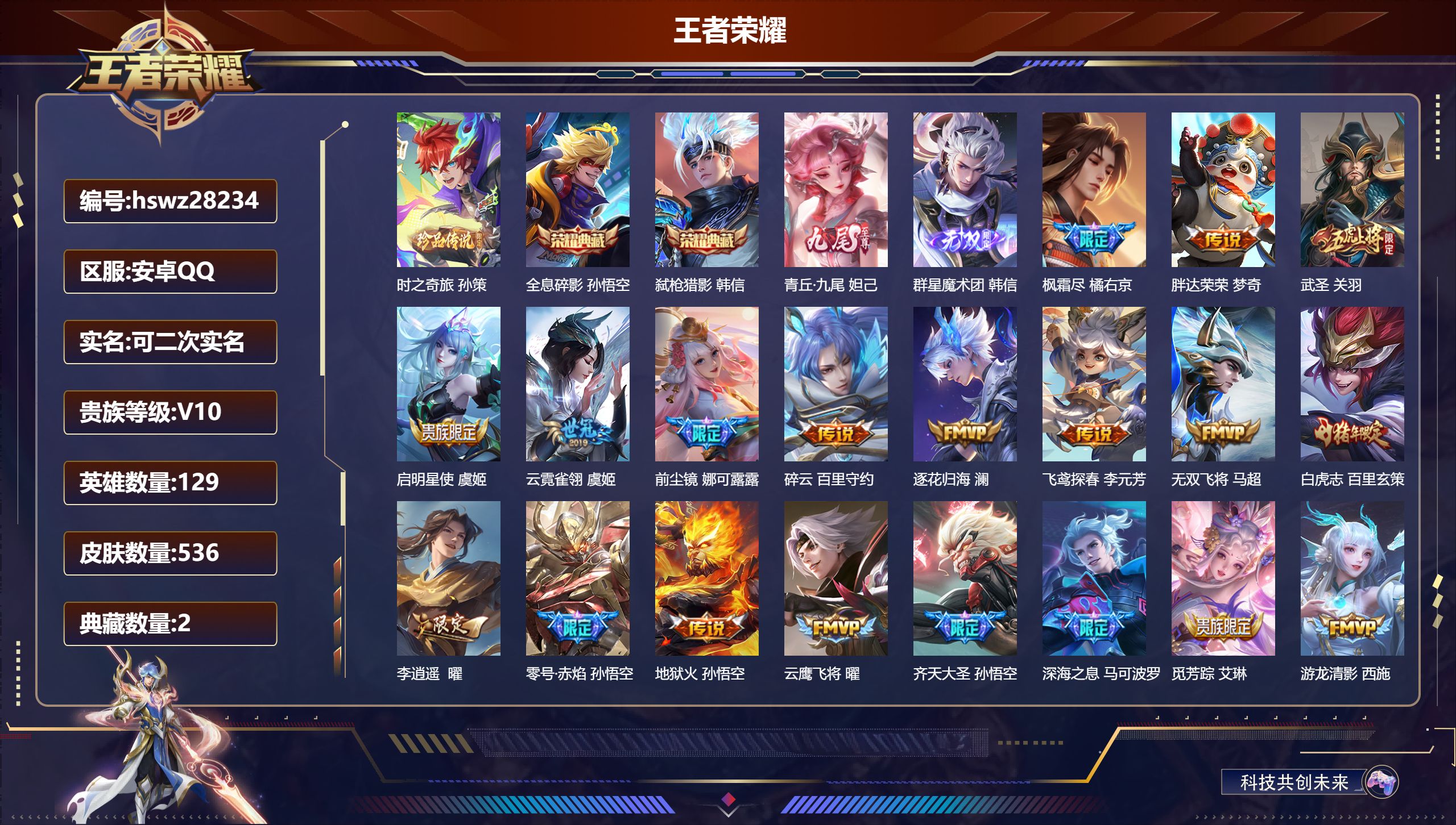 PX_2557831-Q/至尊星耀/536皮肤/129英雄/2典藏/0珍品无双/2无双/1珍品传说/68传说/174史诗/9稀有英雄 【1,珍品传说】时之奇旅,孙策, 【2,典藏皮肤】全息碎影,孙悟空,弑枪猎影,韩信, 【2,无双皮肤】青丘·九尾,妲己,群星魔术团,韩信, 【68,传说皮肤】枫霜尽,橘右京,胖达荣荣,梦奇,武圣,关羽,启明星使,虞姬,云霓雀翎,虞姬,前尘镜,娜可露露,碎云,百里守约,逐花归海,澜,飞鸢探春,李元芳,无双飞将,马超,白虎志,百里玄策,李逍遥,,曜,零号·赤焰,孙悟空,地狱火,孙悟空,云鹰飞将,曜,齐天大圣,孙悟空,深海之息,马可波罗,觅芳踪,艾琳,游龙清影,西施,凤求凰,李白,诗剑行,李白,燃星之曲,花木兰,灼幽烈阳,东皇太一,浮生妄,夏洛特,猫影幻舞,貂蝉,仲夏夜之梦,貂蝉,落雪白狼,亚连,惊梅引,宫本武藏,地狱之眼,宫本武藏,鹤羽星尊,诸葛亮,海洋之心,武则天,音你心动,周瑜,炽阳神光,镜,黄金射手座,后羿,霜月吟,露娜,寅虎·瑞焰,鲁班七号,怒海麟威,吕布,乞巧织情,王昭君,乘龙·问璇玑,孙尚香,时之恋人,刘备,挚爱之约,孙策,黄金狮子座,达摩,久胜战神,干将莫邪,末日机甲,孙尚香,乘龙·淬吴钩,孙策,末日机甲,孙策,山海·炽霜斩,李信,一念神魔,李信,音你心动,小乔,天魔缭乱,吕布,淬星耀世,赵云,乘龙·铭钟鼎,赵云,琥珀纪元,铠,绛天战甲,铠,寅虎·赤拳,裴擒虎,超时空战士,狄仁杰,山海·苍雷引,曜,琥珀纪元,马超,霜北刀,夏侯惇,冥王哈迪斯,铠,冠军飞将,花木兰,音你闪耀,孙尚香,黄金白羊座,张良,群星魔术团,云中君,黄金天蝎座,墨子,神树通天,后羿,幻光神枪,云缨,鸣野蒿,桑启, 【174,史诗皮肤】龙鼓争鸣,蒙犽,时之奇旅,安琪拉,电玩小子,鲁班七号,末日机甲,吕布,蔬乡物语,鲁班七号,超元猎域,百里玄策,逐梦之星,马可波罗,紫霞仙子,露娜,百解令,蒙犽,高山流水,庄周,银河之约,李元芳,匿光追影者,镜,雪夜绮愿,周瑜,奇遇舞章,艾琳,暗渊魔法,司马懿,乘龙·忆丹青,大乔,暗影游猎,马可波罗,燃音魔法,高渐离,冰霜恋舞曲,干将莫邪,苍穹之光,项羽,天秀·启明,杨戬,狮舞东方,鲁班七号,猫狗日记,大乔,妄想食味,姬小满,德古拉伯爵,刘邦,山海·玄木吟,马可波罗,心灵战警,亚瑟,五谷丰年,鬼谷子,诗语江南,西施,无心,元歌,鬼剑武藏,宫本武藏,迷踪丽影,阿轲,星夜王子,白起,无限星赏官,公孙离,千筹问战,张良,地狱燃心,司空震,瓦猫非猫,太乙真人,线条小狗,周瑜,遇见飞天,杨玉环,摇滚巨星,嬴政,电玩高手,狂铁,顽趣,梦奇,冰锋战神,关羽,蜜橘之夏,公孙离,修罗,橘右京,拒霜思,嫦娥,魅力维加斯,妲己,黄金分割率,诸葛亮,滕王阁序,弈星,乐园奇幻夜,钟馗,偶像歌手,王昭君,荣光圣徽,蒙恬,女仆咖啡,妲己,白蛇,大乔,赏金猎手,澜,九幽镇关,项羽,星界游侠,暃,晚萤,娜可露露,猪悟能,猪八戒,遇见神鹿,瑶,舞动绿茵,蔡文姬,繁星吟游,蔡文姬,暗夜贵公子,嬴政,鹰眼统帅,狄仁杰,胡桃异想国,米莱狄,白晶晶,芈月,大圣娶亲,孙悟空,飞衡,韩信,玫瑰异探,镜,孙行者,孙悟空,李小龙,裴擒虎,纤云弄巧,云中君,龙骑士,墨子,金属风暴,墨子,逐梦之影,韩信,嘻哈天王,赵云,傲雪梅枪,韩信,特工魅影,百里守约,猫狗日记,孙策,原初追逐者,百里玄策,逐浪之夏,李元芳,奇幻香踪,扁鹊,未来纪元,赵云,引擎之心,赵云,灵蛊蚀心,扁鹊,黎明之约,雅典娜,石田雨龙,后羿,优雅恋人,嬴政,驭风魔法,戈娅,魔术师,狄仁杰,热力回旋,百里玄策,埋骨钱,暃,龙之律动,狂铁,唤灵魅影,貂蝉,神威,马超,顽岩魄,蒙犽,皇家上将,赵云,冰冠公主,雅典娜,至尊宝,孙悟空,涂山红红,少司缘,战舞者,姬小满,功夫厨神,程咬金,东方月初,大司命,梁祝,上官婉儿,电玩·爆裂旋风,刘禅,天才门将,刘禅,圣诞恋歌,貂蝉,云间偶戏,元歌,水晶猎龙者,花木兰,决胜骁骑,关羽,破空之剑,亚连,一生所爱,露娜,天秀·幻梦,庄周,心动手记,海诺,烈魂,黄忠,御风骁将,吕布,怒海争锋,黄忠,圣诞狂欢,吕布,青焰无极,镜,魅语,不知火舞,群星魔术团,上官婉儿,器灵·浮梦炉,赵怀真,奇遇星旅,桑启,顽趣,阿古朵,罗小黑战记,百里玄策,白龙吟,韩信,夏日便利店,蔡文姬,岱宗,典韦,天狼运算者,孙膑,星界战将,牛魔,永昼,夏洛特,天狼溯光者,伽罗,地狱岩魂,廉颇,茶境仙,孙膑,虎魄,张飞,冰雪圆舞曲,甄姬,火炮绅士,黄忠,青蛇,小乔,默契交锋,花木兰,月团寄思,沈梦溪,航海奇遇记,老夫子,雪上飞焰,哪吒,千年之狐,李白,节奏热浪,阿轲,暗夜猫娘,阿轲,超时空战士,钟无艳,游园惊梦,甄姬,曙光守护者,铠,万灵启世,女娲,心灵骇客,安琪拉,寅虎·御盾,廉颇,乘龙·聚宝船,安琪拉,鹤归松栖,赵怀真,箭羽风息,伽罗,乱世虎臣,张飞,真我赫兹,镜,琥珀纪元,伽罗,万物之道,弈星,龙胆,赵云,谪仙醉月,李白,绅士熊喵,刘禅,缤纷独角兽,小乔,魔法小厨娘,安琪拉,百相守梦,百里守约,蓝屏警告,典韦,天狼狩猎者,裴擒虎,真爱魔法,干将莫邪,时之恋人,孙尚香,水果甜心,孙尚香,化蝶舞,阿轲,江河有灵,阿古朵,幽灵船长,曹操,乘风破浪,夏侯惇,暗隐猎兽者,兰陵王, 【211,勇者皮肤】时空谍影,海诺,玲珑珍味,西施,圆桌骑士,盾山,烛龙,曹操,爱心护理,阿轲,太极少年,赵怀真,星际陆战队,达摩,沙漠行僧,达摩,大漠名商,沈梦溪,暖冬絮语,程咬金,缤纷绘卷,张良,纽约教父,刘备,拳王,达摩,大发明家,达摩,龙舞盛年,沈梦溪,乐园追猎者,白起,丁香结,小乔,功夫炙烤,廉颇,铁甲之心,典韦,沉稳之力,孙尚香,幻夜卜梦,芈月,海盐诗旅,桑启,幻泉雾影,海月,朔风刀,夏侯惇,醍醐杖,老夫