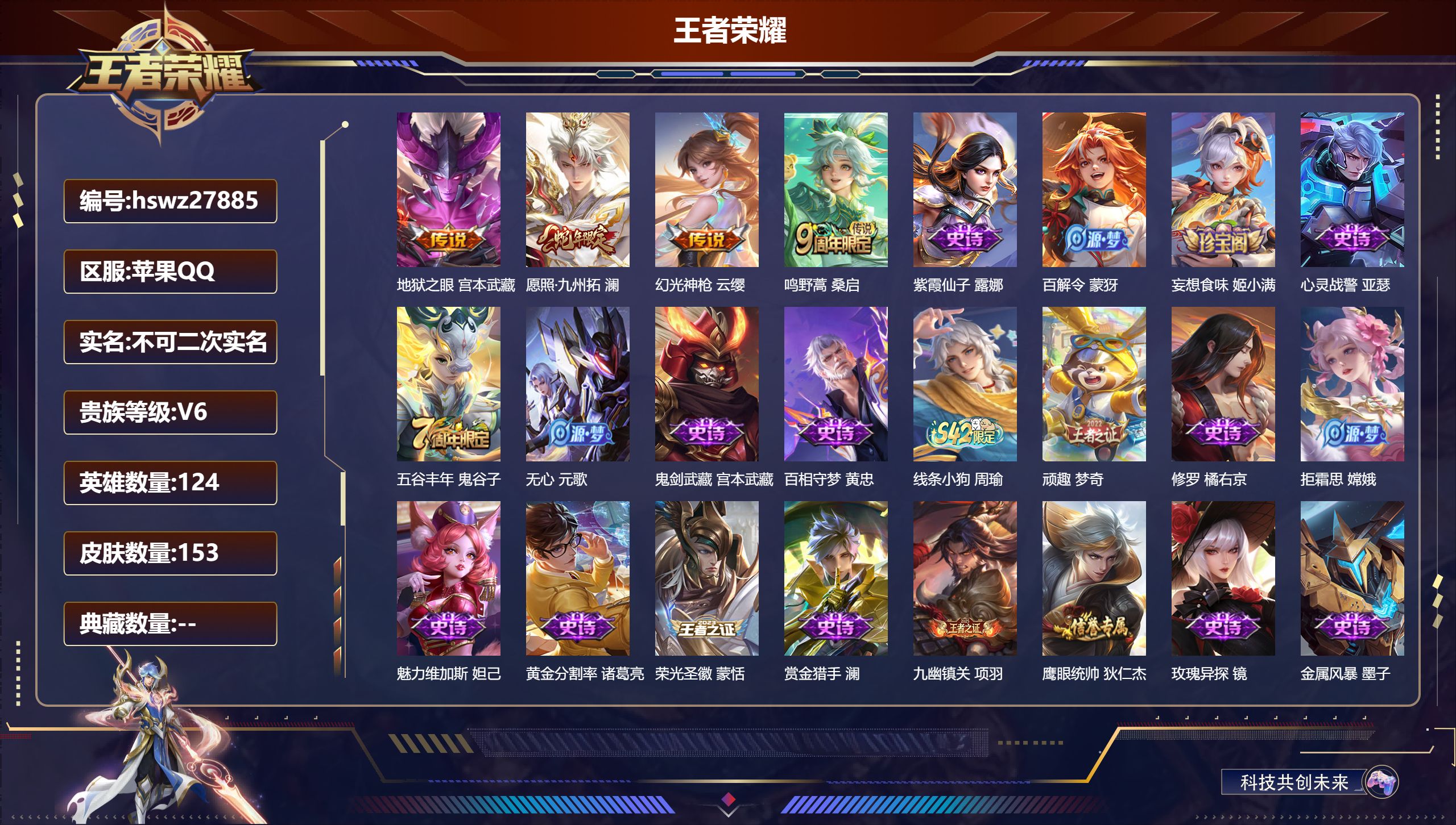 PX_2549105-Q/最强王者/153皮肤/124英雄/0典藏/0珍品无双/0无双/0珍品传说/4传说/38史诗/7稀有英雄 【4,传说皮肤】地狱之眼,宫本武藏,愿照·九州拓,澜,幻光神枪,云缨,鸣野蒿,桑启, 【38,史诗皮肤】紫霞仙子,露娜,百解令,蒙犽,妄想食味,姬小满,心灵战警,亚瑟,五谷丰年,鬼谷子,无心,元歌,鬼剑武藏,宫本武藏,百相守梦,黄忠,线条小狗,周瑜,顽趣,梦奇,修罗,橘右京,拒霜思,嫦娥,魅力维加斯,妲己,黄金分割率,诸葛亮,荣光圣徽,蒙恬,赏金猎手,澜,九幽镇关,项羽,鹰眼统帅,狄仁杰,玫瑰异探,镜,金属风暴,墨子,匿光侦查者,李元芳,原初追逐者,百里玄策,魔术师,狄仁杰,龙之律动,狂铁,皇家上将,赵云,圣诞狂欢,吕布,青焰无极,镜,星界战将,牛魔,冰雪圆舞曲,甄姬,火炮绅士,黄忠,节奏热浪,阿轲,万灵启世,女娲,心灵骇客,安琪拉,匿光破解者,沈梦溪,乱世虎臣,张飞,水果甜心,孙尚香,江河有灵,阿古朵,乘风破浪,夏侯惇, 【79,勇者皮肤】圆桌骑士,盾山,太极少年,赵怀真,沙漠行僧,达摩,大漠名商,沈梦溪,缤纷绘卷,张良,拳王,达摩,龙舞盛年,沈梦溪,功夫炙烤,廉颇,沉稳之力,孙尚香,幻夜卜梦,芈月,爱与正义,程咬金,海盐诗旅,桑启,归虚梦演,孙膑,汉昭烈帝,刘备,白色死神,白起,王牌新星,海月,阴阳师,狄仁杰,次元突破,哪吒,古海寻踪,张良,功夫老勺,老夫子,鲨炮海盗猫,沈梦溪,虎啸剑宗,刘邦,海滩派对,项羽,野性能量,吕布,潮玩探月行,猪八戒,天穹祈灯,鬼谷子,化身博士,扁鹊,五福同心,张飞,幻乐之宴,鬼谷子,死亡骑士,亚瑟,破局者,亚连,掌控之力,诸葛亮,海滩丽影,钟无艳,落日弦歌,高渐离,忍·炎影,赵云,雪境奇遇,西施,炽热元素使,姜子牙,坚韧之力,苏烈,逐霄战戟,吕布,擒涛扼浪,裴擒虎,乓乓大师,鲁班大师,极光幻客,蚩奼,探海日志,鲁班大师,雾都夜雨,干将莫邪,玩趣恶龙,高渐离,兔女郎,花木兰,龙腾万里,关羽,金庭之子,兰陵王,幻夜行动,兰陵王,未来纪元,宫本武藏,千军破阵,苏烈,荣光之誓,亚瑟,万象初新,宫本武藏,春野之旅,钟无艳,秘密基地,刘禅,教廷特使,韩信,街头霸王,韩信,云中旅人,李元芳,妄想特派,李元芳,西部大镖客,孙悟空,蔚蓝守将,蒙恬,驱傩正仪,钟馗,命运角斗场,狂铁,特工战影,狂铁,劲辣红锅,太乙真人,剑破天穹,刘邦,异域游侠,刘备,苍威无极,项羽,铁骨偃魂,典韦,苍林狼骑,苍,天穹之誓,姜子牙,长夏之忆,貂蝉,群星魔术团,程咬金,暗都幽影,大司命,鹤鸣心笺,艾琳,线条小狗,周瑜,噬灭天穹,东皇太一,敬我三分,盘古,爆裂喵拳,达摩, 【34,其他皮肤】前尘,金蝉,潮流仙人,老夫子,龙域领主,铠,生化警戒,钟无艳,超能战警,曹操,未来旅行,孙膑,万圣前夜,小乔,灼热之刃,李信,海之征途,孙策,精灵王,后羿,冰刃幻境,镜,碧珀绯影,暃,星航指挥官,诸葛亮,英喵野望,刘禅,启蛰,司空震,街头旋风,裴擒虎,东海龙王,东皇太一,剑舞者,花木兰,激情绿茵,马可波罗,埃及法老,杨戬,阿摩司公爵,鬼谷子,一千零一夜,张良,威尼斯狂欢,百里玄策,幸存者,马超,创世神祝,盘古,特种部队,李元芳,绝影神枪,百里守约,孤猎,澜,加勒比小姐,虞姬,赤焰之缨,云缨,地府判官,钟馗,美梦成真,梦奇,圆桌骑士,太乙真人,西部大镖客,孙悟空, 【7,稀有英雄】不知火舞,橘右京,夏洛特,娜可露露,韩信,艾琳,赵云, 营地ID:,
