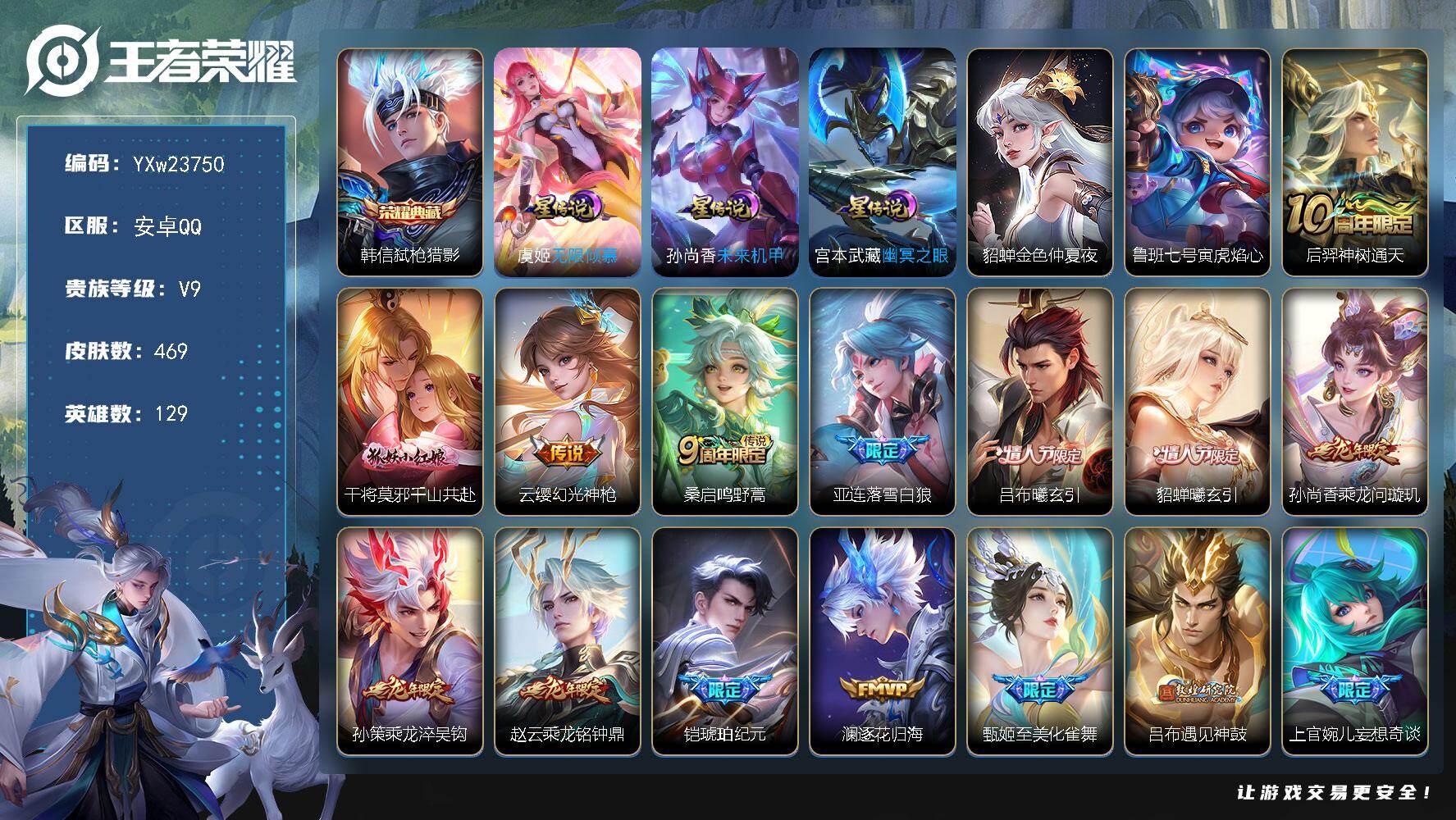 PX_2560274-??58传说v9·再消费5083点券升级到V10·弑枪猎影·5星传说·寅虎焰心·无限倾慕·满龙年·满兔年·满虎年·满牛年·至美化雀舞·补天·时之祈愿·寅虎赤拳·李逍遥·默契交锋·祈雪灵祝·时雨天司·武圣·太华·白虎志·武陵仙君·浮生妄·神器狴犴令·落雪白狼·吕布曦玄引·貂蝉曦玄引·无二次包过】YXw23750-安卓Q-129英雄-469皮肤-11王者印记-260铭文-贵族积分18w【贵族9】【1典藏·5星传说·58传说·1天幕·61按键】【因赛季更新游戏段付以上号为准!】 【英雄全皮】:刘禅全皮,刘邦全皮,孙权全皮,橘右京全皮,鬼谷子全皮,猪八戒全皮,敖隐全皮,桑启全皮,夏洛特全皮,戈娅全皮,空空儿全皮,影全皮,少司缘全皮 【荣耀典藏】:韩信弑枪猎影 【星元皮肤】:鲁班七号寅虎焰心,虞姬无限倾慕,孙尚香未来机甲,宫本武藏幽冥之眼,貂蝉金色仲夏夜 【天幕】:共赏芳华天幕 【传说皮肤】:后羿神树通天,干将莫邪千山共赴,云缨幻光神枪,桑启鸣野蒿,亚连落雪白狼,吕布曦玄引,貂蝉曦玄引,孙尚香乘龙问璇玑,孙策乘龙淬吴钩,赵云乘龙铭钟鼎,铠琥珀纪元,澜逐花归海,甄姬至美化雀舞,吕布遇见神鼓,上官婉儿妄想奇谈,马可波罗妄想实况,夏洛特浮生妄,花木兰燃星之曲,虞姬无限倾心,项羽无限倾心,小乔山海琳琅生,曜山海苍雷引,李信山海炽霜斩,李白诗剑行,狄仁杰神器狴犴令,不知火舞绯月行,王昭君星穹之声,橘右京枫霜尽,马可波罗深海之息,后羿无尽星芒,马超无双飞将,女娲补天,瑶时之祈愿,裴擒虎寅虎赤拳,鲁班七号寅虎瑞焰,曜李逍遥,,小乔音你心动,兰陵王默契交锋,公孙离祈雪灵祝,诸葛亮时雨天司,铠绛天战甲,镜炽阳神光,虞姬启明星使,孙悟空零号赤焰,关羽武圣,曜云鹰飞将,李信一念神魔,伽罗太华,张良黄金白羊座,达摩黄金狮子座,百里玄策白虎志,花木兰冠军飞将,梦奇胖达荣荣,诸葛亮武陵仙君,貂蝉仲夏夜之梦,孙尚香末日机甲,宫本武藏地狱之眼,狄仁杰超时空战士 【限定皮肤】:蔡文姬夏日便利店,虞姬夏日便利店,姜子牙天穹之誓,李白谪仙醉月,狄仁杰阴阳师,廉颇寅虎御盾,小乔山海琳琅生,赵云皇家上将,赵云龙胆,妲己时之彼端,妲己时之奇旅,嬴政优雅恋人,鲁班七号狮舞东方,鲁班七号寅虎瑞焰,庄周云端筑梦师,庄周高山流水,高渐离死亡摇滚,钟无艳超时空战士,孙膑天狼运算者,孙膑寅虎展翼,扁鹊奇幻香踪,白起夜都怪侠,芈月白晶晶,芈月幻夜卜梦,吕布御风骁将,吕布遇见神鼓,元歌云间偶戏,元歌无心,夏侯惇匿光决锋者,甄姬游园惊梦,甄姬落雪兰心,甄姬至美化雀舞,马可波罗逐梦之星,马可波罗暗影游猎,马可波罗深海之息,马可波罗山海玄木吟,马可波罗妄想实况,狄仁杰魔术师,狄仁杰万华元夜,狄仁杰神器狴犴令,达摩星际陆战队,达摩沙漠行僧,项羽海滩派对,项羽无限倾心,老夫子醍醐杖,关羽冰锋战神,关羽武圣,程咬金演武夺筹,露娜一生所爱,刘邦夺宝奇兵,韩信傲雪梅枪,王昭君午后时光,王昭君星穹之声,兰陵王默契交锋,兰陵王金庭之子,花木兰青春决赛季,花木兰默契交锋,花木兰燃星之曲,不知火舞绯月行,橘右京枫霜尽,亚瑟潮玩骑士王,孙悟空至尊宝,孙悟空大圣娶亲,孙悟空零号赤焰,孙悟空孙行者,牛魔奔雷神使,后羿如梦令,后羿圣弓游侠,后羿无尽星芒,刘备百相守梦,张飞虎魄,李元芳云中旅人,虞姬启明星使,虞姬无限倾心,钟馗驱傩正仪,杨玉环遇见飞天,杨玉环寅虎心曲,杨戬潮玩骑兵,女娲补天,干将莫邪冰霜恋舞曲,干将莫邪真爱魔法,雅典娜单词大作战,雅典娜黎明之约,太乙真人华丽摇滚,鬼谷子原初探秘者,鬼谷子五谷丰年,诸葛亮武陵仙君,诸葛亮时雨天司,黄忠烈魂,黄忠火炮绅士,铠青龙志,苏烈千军破阵,百里玄策白虎志,百里守约朱雀志,梦奇顽趣,公孙离祈雪灵祝,公孙离玉兔公主,沈梦溪大漠名商,沈梦溪匿光破解者,明世隐疑决卦,明世隐吟游魔法,裴擒虎天狼狩猎者,裴擒虎李小龙,裴擒虎寅虎赤拳,裴擒虎擒涛扼浪,狂铁电玩高手,米莱狄胡桃异想国,瑶时之祈愿,瑶山海碧波行,云中君纤云弄巧,云中君时之祈愿,李信山海炽霜斩,伽罗太华,伽罗天狼溯光者,猪八戒西部大镖客,猪八戒猪悟能,上官婉儿梁祝,上官婉儿天狼绘梦者,上官婉儿神器万象笔,上官婉儿妄想奇谈,嫦娥如梦令,嫦娥拒霜思,嫦娥暖冬兔眠,曜李逍遥,,曜山海苍雷引,西施玲珑珍味,西施至美乘鲤谣,蒙犽狂想玩偶喵,鲁班大师匿光启智者,鲁班大师探海日志,桑启海盐诗旅,夏洛特浮生妄,暃星界游侠,戈娅驭风魔法,艾琳女武神,艾琳流音漫舞,司空震地狱燃心,阿古朵江河有灵,张良古海寻踪,蒙犽百解令,蒙恬荣光圣徽,高渐离燃音魔法,妲己灵卜魔法,鬼谷子天穹祈灯,铠琥珀纪元,大乔乘龙忆丹青,安琪拉乘龙聚宝船,孙尚香乘龙问璇玑,孙策乘龙淬吴钩,赵云乘龙铭钟鼎,吕布曦玄引,貂蝉曦玄引,亚连落雪白狼,沈梦溪龙舞盛年,鲁班七号蔬乡物语,李元芳蔬乡物语,刘邦剑破天穹,程咬金群星魔术团,周瑜熔金海岸 【年限皮肤】:百里玄策白虎志,百里守约朱雀志,铠青龙志,伽罗太华,公孙离祈雪灵祝,诸葛亮时雨天司,吕布御风骁将,牛魔奔雷神使,裴擒虎寅虎赤拳,鲁班七号寅虎瑞焰,孙膑寅虎展翼,廉颇寅虎御盾,杨玉环寅虎心曲,小乔山海琳琅生,曜山海苍雷引,李信山海炽霜斩,瑶山海碧波行,马可波罗山海玄木吟,孙尚香乘龙问璇玑,孙策乘龙淬吴钩,赵云乘龙铭钟鼎,大乔乘龙忆丹青,安琪拉乘龙聚宝船,, 【赛季限定】:明