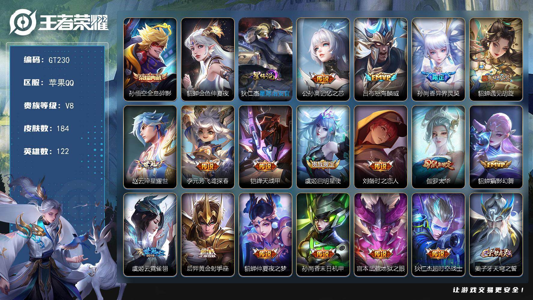 PX_2553508-可换绑【精品小号·1金标·孙悟空典藏·异界灵契·太华·记忆之芯·孙行者·神威·飞衡·岱宗·至尊宝】,2星传说,13王者印记,五级铭文270,可二次GT230,苹果Q-V8-184皮肤-1典藏皮肤-17传说-51史诗【荣耀典藏】:孙悟空全息碎影【星元皮肤】:貂蝉金色仲夏夜,狄仁杰星际治安官【传说皮肤】:公孙离记忆之芯,吕布怒海麟威,孙尚香异界灵契,貂蝉遇见胡旋,赵云淬星耀世,李元芳飞鸢探春,铠绛天战甲,虞姬启明星使,刘备时之恋人,伽罗太华,貂蝉猫影幻舞,虞姬云霓雀翎,后羿黄金射手座,貂蝉仲夏夜之梦,孙尚香末日机甲,宫本武藏地狱之眼,狄仁杰超时空战士【限定皮肤】:姜子牙天穹之誓,杨戬破阵退雄兵,狄仁杰阴阳师,赵云皇家上将,墨子神迹守卫,孙尚香异界灵契,庄周玄嵩,庄周高山流水,芈月幻夜卜梦,夏侯惇朔风刀,甄姬幽恒,甄姬游园惊梦,典韦岱宗,马可波罗逐梦之星,马可波罗暗影游猎,狄仁杰魔术师,狄仁杰万华元夜,达摩沙漠行僧,项羽海滩派对,老夫子醍醐杖,老夫子航海奇遇记,貂蝉遇见胡旋,程咬金演武夺筹,韩信飞衡,兰陵王金庭之子,孙悟空至尊宝,孙悟空孙行者,牛魔御旌,后羿如梦令,后羿圣弓游侠,李元芳银河之约,李元芳云中旅人,虞姬启明星使,钟馗驱傩正仪,干将莫邪真爱魔法,雅典娜黎明之约,鬼谷子原初探秘者,黄忠火炮绅士,苏烈千军破阵,百里玄策原初追逐者,弈星混沌棋,梦奇顽趣,公孙离蜜橘之夏,沈梦溪星空之诺,沈梦溪大漠名商,明世隐疑决卦,裴擒虎擒涛扼浪,狂铁御狮,米莱狄御霄,伽罗太华,盾山御銮,猪八戒西部大镖客,上官婉儿梁祝,嫦娥拒霜思,鲁班大师探海日志,桑启海盐诗旅,艾琳女武神,张良古海寻踪,鬼谷子天穹祈灯,沈梦溪龙舞盛年,刘邦剑破天穹,程咬金群星魔术团,周瑜熔金海岸【年限皮肤】:庄周玄嵩,甄姬幽恒,伽罗太华,典韦岱宗,韩信飞衡【赛季限定】:狂铁御狮,米莱狄御霄,牛魔御旌,盾山御銮,夏侯惇朔风刀,弈星混沌棋,明世隐疑决卦,老夫子醍醐杖,鬼谷子原初探秘者,狄仁杰万华元夜,程咬金演武夺筹,钟馗驱傩正仪,苏烈千军破阵,达摩沙漠行僧,兰陵王金庭之子,沈梦溪大漠名商,李元芳云中旅人,桑启海盐诗旅,裴擒虎擒涛扼浪,鲁班大师探海日志,张良古海寻踪,鬼谷子天穹祈灯,刘邦剑破天穹,姜子牙天穹之誓,东皇太一噬灭天穹,百里玄策原初追逐者,雅典娜黎明之约,梦奇顽趣【战令限定】:李元芳银河之约,沈梦溪星空之诺,马可波罗暗影游猎,猪八戒西部大镖客,老夫子航海奇遇记,墨子神迹守卫,干将莫邪真爱魔法,后羿圣弓游侠,黄忠火炮绅士,芈月幻夜卜梦【史诗皮肤】:梦奇顽趣,艾琳奇遇舞章,澜赏金猎手,雅典娜黎明之约,黄忠火炮绅士,嫦娥拒霜思,庄周高山流水,孙悟空孙行者,安琪拉时之奇旅,干将莫邪真爱魔法,老夫子航海奇遇记,百里玄策原初追逐者,马可波罗暗影游猎,孙尚香时之恋人,马超神威,橘右京修罗,后羿如梦令,庄周玄嵩,甄姬幽恒,典韦岱宗,韩信飞衡,娜可露露晚萤,李元芳银河之约,上官婉儿梁祝,狄仁杰鹰眼统帅,白起星夜王子,程咬金功夫厨神,李元芳逐浪之夏,公孙离蜜橘之夏,蔡文姬舞动绿茵,雅典娜冰冠公主,马可波罗逐梦之星,甄姬游园惊梦,诸葛亮黄金分割率,夏侯惇乘风破浪,刘邦德古拉伯爵,孙悟空至尊宝,张飞乱世虎臣,曹操幽灵船长,吕布圣诞狂欢,墨子金属风暴,妲己魅力维加斯,嬴政摇滚巨星,嬴政暗夜贵公子,孙尚香水果甜心,廉颇地狱岩魂,狄仁杰魔术师,甄姬冰雪圆舞曲,貂蝉圣诞恋歌,赵云皇家上将,鲁班七号电玩小子【其他皮肤】:东皇太一噬灭天穹,周瑜熔金海岸,姜子牙天穹之誓,杨戬破阵退雄兵,大司命暗都幽影,程咬金群星魔术团,刘邦剑破天穹,沈梦溪龙舞盛年,鬼谷子天穹祈灯,后羿完美运算,张良古海寻踪,鲁班大师探海日志,莱西奥西部游侠,裴擒虎擒涛扼浪,桑启海盐诗旅,刘备潮玩造梦师,李元芳云中旅人,蒙恬蔚蓝守将,沈梦溪大漠名商,米莱狄契约魔法,刘禅唤灵魔甲,兰陵王金庭之子,刘邦虎啸剑宗,程咬金无双福将,芈月幻夜卜梦,达摩沙漠行僧,马可波罗潮玩牛仔,妲己紫罗兰之誓,典韦铁甲之心,后羿圣弓游侠,苏烈千军破阵,鲁班大师乓乓大师,墨子神迹守卫,钟馗驱傩正仪,张良缤纷绘卷,程咬金演武夺筹,刘禅秘密基地,狄仁杰万华元夜,鬼谷子原初探秘者,狂铁特工战影,猪八戒西部大镖客,老夫子醍醐杖,盾山圆桌骑士,明世隐疑决卦,鲁班七号黑桃队长,哪吒次元突破,弈星混沌棋,沈梦溪星空之诺,夏侯惇朔风刀,姜子牙炽热元素使,盾山御銮,吕布野性能量,小乔丁香结,牛魔御旌,明世隐虹云星官,米莱狄御霄,狂铁御狮,诸葛亮掌控之力,孙尚香沉稳之力,牛魔制霸全明星,老夫子功夫老勺,王昭君幻想奇妙夜,钟无艳海滩丽影,关羽龙腾万里,刘备汉昭烈帝,狄仁杰阴阳师,后羿阿尔法小队,宫本武藏万象初新,甄姬花好人间,张飞五福同心,花木兰兔女郎,亚瑟死亡骑士,典韦黄金武士,妲己少女阿狸,孙膑天使之翼,白起白色死神,艾琳女武神,赵云忍炎影,达摩大发明家,韩信街头霸王,项羽海滩派对,暃碧珀绯影,金蝉前尘,云缨赤焰之缨,司空震启蛰,澜孤猎,镜冰刃幻境,蒙犽归虚梦演,西施归虚梦演,云中君荷鲁斯之眼,瑶森,盘古创世神祝,上官婉儿修竹墨客,李信灼热之刃,伽罗花见巫女,盾山极冰防御线,司马懿魇语军师,孙策海之征途,弈星踏雪寻梅,裴擒虎街头旋风,公孙离花间舞,干将莫邪第七人偶,大乔伊势巫女,黄忠芝加哥教父,苍维