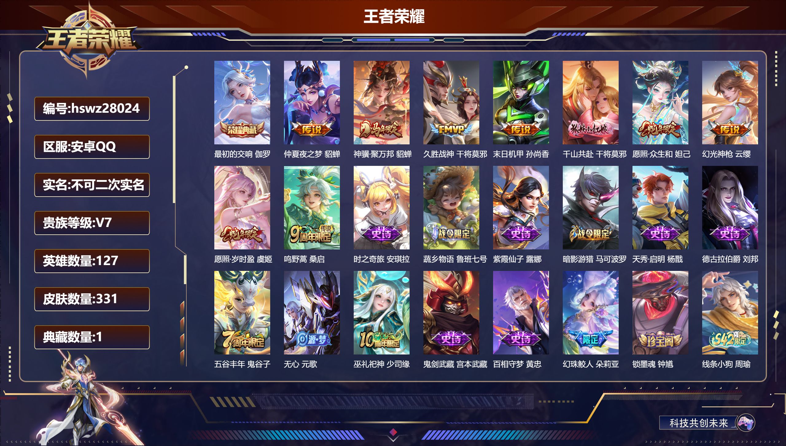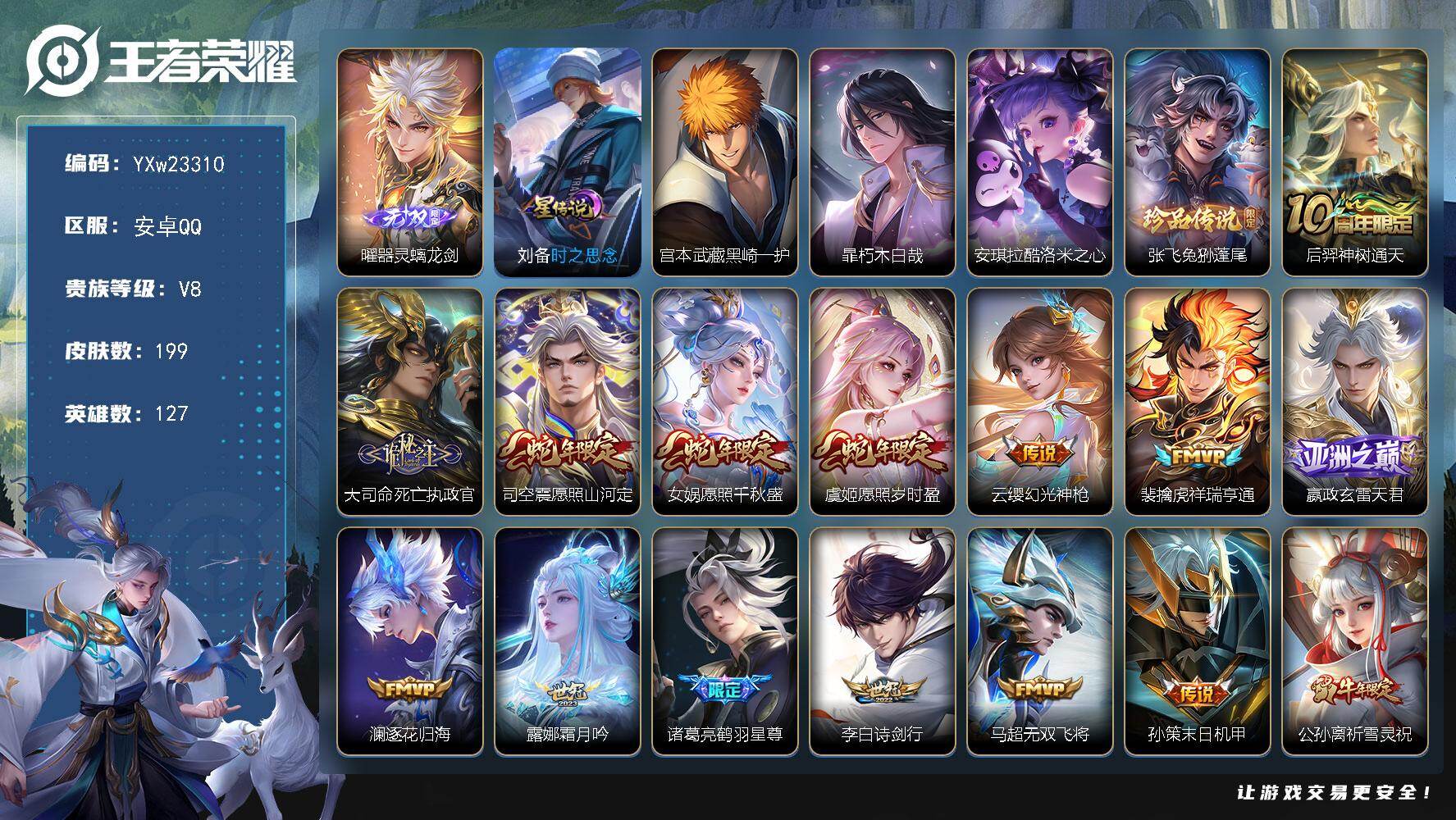 PX_2468273-??推荐·满蛇年限定·满兔年限定·活力突击·愿照山河定·愿照众生和·惊梅引·齐天大圣·山海苍雷引·山海炽霜斩·诗剑行·绯月行·傲雪梅枪·幽冥之眼·可二次】YXw16639-安卓Q-127英雄-245皮肤-6王者印记-150铭文-贵族积分4w【贵族7】【1典藏·2星传说·25传说·32按键】【因赛季更新游戏段付以上号为准!】 【英雄全皮】:孙权全皮,影全皮 【荣耀典藏】:程咬金活力突击 【星元皮肤】:刘备时之思念,宫本武藏幽冥之眼 【传说皮肤】:后羿神树通天,司空震愿照山河定,女娲愿照千秋盛,妲己愿照众生和,澜愿照九州拓,蔡文姬愿照福禄聚,虞姬愿照岁时盈,云缨幻光神枪,桑启鸣野蒿,宫本武藏惊梅引,干将莫邪画中仙,花木兰燃星之曲,虞姬无限倾心,伽罗炽翼辉光,孙悟空齐天大圣,小乔山海琳琅生,曜山海苍雷引,李信山海炽霜斩,李白诗剑行,不知火舞绯月行,孙尚香音你闪耀,铠绛天战甲,虞姬云霓雀翎,花木兰冠军飞将,宫本武藏地狱之眼 【限定皮肤】:姜子牙天穹之誓,杨戬破阵退雄兵,狄仁杰阴阳师,小乔山海琳琅生,赵云皇家上将,赵云龙胆,赵云百木心枪,高渐离玩趣恶龙,元歌无心,马可波罗山海玄木吟,狄仁杰魔术师,达摩沙漠行僧,项羽海滩派对,韩信傲雪梅枪,兰陵王金庭之子,花木兰燃星之曲,不知火舞绯月行,孙悟空齐天大圣,李元芳匿光侦查者,李元芳云中旅人,虞姬无限倾心,干将莫邪胡桃夹子,干将莫邪画中仙,鬼谷子原初探秘者,黄忠烈魂,梦奇顽趣,沈梦溪大漠名商,裴擒虎李小龙,裴擒虎擒涛扼浪,瑶山海碧波行,李信山海炽霜斩,伽罗炽翼辉光,盾山梦圆繁星,猪八戒猪悟能,嫦娥拒霜思,曜山海苍雷引,鲁班大师探海日志,桑启海盐诗旅,阿古朵江河有灵,张良古海寻踪,高渐离燃音魔法,妲己灵卜魔法,鬼谷子天穹祈灯,伽罗琥珀纪元,姬小满妄想食味,沈梦溪龙舞盛年,刘邦剑破天穹,程咬金群星魔术团,刘备异域游侠,周瑜熔金海岸 【年限皮肤】:小乔山海琳琅生,曜山海苍雷引,李信山海炽霜斩,瑶山海碧波行,马可波罗山海玄木吟,司空震愿照山河定,女娲愿照千秋盛,妲己愿照众生和,澜愿照九州拓,蔡文姬愿照福禄聚,虞姬愿照岁时盈 【赛季限定】:鬼谷子原初探秘者,达摩沙漠行僧,兰陵王金庭之子,沈梦溪大漠名商,李元芳云中旅人,桑启海盐诗旅,裴擒虎擒涛扼浪,鲁班大师探海日志,张良古海寻踪,鬼谷子天穹祈灯,刘邦剑破天穹,姜子牙天穹之誓,东皇太一噬灭天穹,太乙真人谧流熔炉,钟馗虚灵犬护,甄姬逆浪荇歌,亚瑟荣光之誓,梦奇顽趣,项羽九幽镇关 【战令限定】:高渐离燃音魔法,妲己灵卜魔法,亚连破空之剑,孙悟空神迹守卫,百里守约百相守梦,老夫子百相守梦,周瑜线条小狗,小乔线条小狗 【史诗皮肤】:赵云皇家上将,赵云未来纪元,貂蝉圣诞恋歌,甄姬冰雪圆舞曲,狄仁杰魔术师,廉颇地狱岩魂,宫本武藏鬼剑武藏,孙尚香水果甜心,嬴政摇滚巨星,妲己魅力维加斯,妲己女仆咖啡,墨子金属风暴,吕布圣诞狂欢,曹操幽灵船长,张飞乱世虎臣,夏侯惇乘风破浪,小乔缤纷独角兽,兰陵王暗隐猎兽者,诸葛亮黄金分割率,雅典娜冰冠公主,百里守约特工魅影,李元芳逐浪之夏,白起星夜王子,孙策猫狗日记,大乔猫狗日记,狄仁杰鹰眼统帅,赵云龙胆,黄忠烈魂,裴擒虎李小龙,猪八戒猪悟能,嫦娥拒霜思,韩信傲雪梅枪,赵云百木心枪,盾山梦圆繁星,元歌无心,梦奇顽趣,马可波罗山海玄木吟,瑶山海碧波行,刘禅电玩爆裂旋风,百里守约真我赫兹,李元芳匿光侦查者,阿古朵江河有灵,妲己灵卜魔法,高渐离燃音魔法,伽罗琥珀纪元,姬小满妄想食味,黄忠怒海争锋,亚连破空之剑,百里守约百相守梦,狂铁龙之律动,后羿石田雨龙,黄忠百相守梦,西施织梦人,女娲万灵启世,项羽九幽镇关,小乔线条小狗,周瑜线条小狗,太乙真人瓦猫非猫 【其他皮肤】:项羽海滩派对,韩信教廷特使,韩信街头霸王,露娜哥特玫瑰,赵云白执事,赵云忍炎影,芈月红桃皇后,白起白色死神,牛魔西部大镖客,武则天东方不败,扁鹊救世之瞳,宫本武藏未来纪元,安琪拉玩偶对对碰,孙膑天使之翼,妲己少女阿狸,典韦黄金武士,亚瑟死亡骑士,达摩拳王,花木兰兔女郎,张飞五福同心,甄姬花好人间,刘备万事如意,宫本武藏万象初新,后羿阿尔法小队,狄仁杰阴阳师,刘备纽约教父,刘备汉昭烈帝,关羽龙腾万里,钟无艳海滩丽影,王昭君幻想奇妙夜,狂铁命运角斗场,老夫子功夫老勺,牛魔制霸全明星,孙尚香沉稳之力,诸葛亮掌控之力,鬼谷子幻乐之宴,苏烈坚韧之力,明世隐虹云星官,小乔丁香结,吕布野性能量,孙膑归虚梦演,高渐离玩趣恶龙,沈梦溪鲨炮海盗猫,哪吒次元突破,狂铁特工战影,鬼谷子原初探秘者,刘禅秘密基地,杨戬次元傲视,鲁班大师乓乓大师,干将莫邪胡桃夹子,达摩沙漠行僧,程咬金无双福将,兰陵王金庭之子,刘禅唤灵魔甲,米莱狄契约魔法,沈梦溪大漠名商,蒙恬蔚蓝守将,李元芳云中旅人,戈娅危途狂花,刘备潮玩造梦师,桑启海盐诗旅,海月幻泉雾影,猪八戒潮玩探月行,白起乐园追猎者,赵怀真太极少年,裴擒虎擒涛扼浪,太乙真人劲辣红锅,莱西奥西部游侠,鲁班大师探海日志,李元芳妄想特派,张良古海寻踪,钟无艳聚星闪耀,海月王牌新星,亚连破局者,后羿完美运算,程咬金暖冬絮语,鬼谷子天穹祈灯,妲己灵卜魔法,海诺时空谍影,嫦娥漠中幻影,朵莉亚金色潮汐,廉颇功夫炙烤,亚瑟鸿运当头,沈梦溪龙舞盛年,钟无艳春野之旅,刘邦剑破天穹,盘古经纬探寻者,程咬金