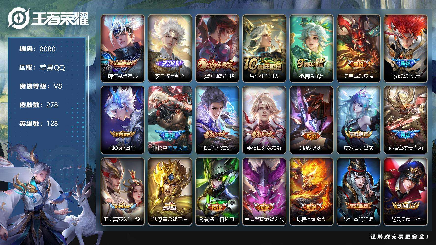PX_2548891-编号A00590,可二次,V8,278皮肤,1典藏,1无双,17传说,碎月剑心,弑枪猎影,至尊宝,神骥·越千峰,齐天大圣,山海·苍雷引,山海·玄木吟,山海·炽霜斩,零号·赤焰,前尘,绛天战甲,启明星使,吕布-末日机甲,踏浪烽翎,马超-琥珀纪元,战鼓燎原,逐花归海,冰锋战神,鸣野蒿,神树通天,鹤鸣心笺,久胜战神,时之恋人,孙尚香-末日机甲,黄金狮子座,傲雪梅枪,地狱之眼,地狱火,织梦人,幽灵船长,修