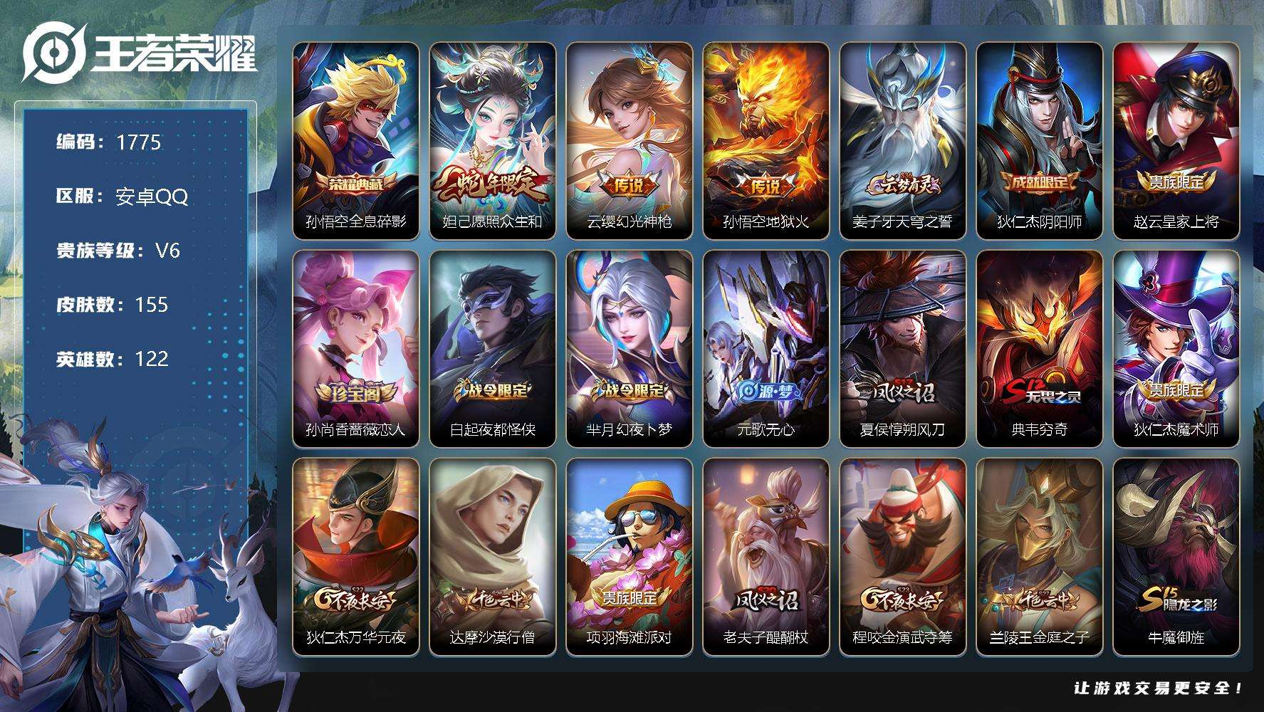 PX_2184761-【,209皮3传说乘龙铭钟鼎,绛天战甲,孙行者】:安卓Q-V7-至尊星耀IV段位-123英雄-209皮肤-0典藏-0无双-0珍品传说-3传说-63史诗 【内测皮肤】:高渐离玩趣恶龙,狂铁特工战影 【传说皮肤】:铠绛天战甲,赵云乘龙铭钟鼎,桑启鸣野蒿 【限定皮肤】:姜子牙天穹之誓,狄仁杰阴阳师,赵云皇家上将,高渐离玩趣恶龙,扁鹊奇幻香踪,吕布御风骁将,元歌无心,典韦岱宗,马可波罗山海玄木吟,狄仁杰魔术师,项羽海滩派对,兰陵王金庭之子,孙悟空美猴王,孙悟空孙行者,刘备百相守梦,李元芳银河之约,李元芳云中旅人,杨戬潮玩骑兵,鬼谷子五谷丰年,铠青龙志,沈梦溪大漠名商,裴擒虎擒涛扼浪,云中君纤云弄巧,上官婉儿梁祝,嫦娥拒霜思,嫦娥暖冬兔眠,西施玲珑珍味,鲁班大师探海日志,桑启海盐诗旅,暃星界游侠,戈娅驭风魔法,艾琳流音漫舞,司空震地狱燃心,阿古朵江河有灵,张良古海寻踪,蒙犽百解令,高渐离燃音魔法,妲己灵卜魔法,鬼谷子天穹祈灯,赵云乘龙铭钟鼎,鲁班七号蔬乡物语,李元芳蔬乡物语,刘邦剑破天穹,镜青焰无极,项羽苍威无极,周瑜熔金海岸 【年限皮肤】:铠青龙志,孙悟空美猴王,吕布御风骁将,典韦岱宗,马可波罗山海玄木吟,赵云乘龙铭钟鼎 【赛季限定】:兰陵王金庭之子,张良古海寻踪,李元芳云中旅人,沈梦溪大漠名商,裴擒虎擒涛扼浪,鲁班大师探海日志,桑启海盐诗旅,鬼谷子天穹祈灯,刘邦剑破天穹,姜子牙天穹之誓 【战令限定】:扁鹊奇幻香踪,艾琳流音漫舞,李元芳银河之约,杨戬潮玩骑兵,嫦娥暖冬兔眠,西施玲珑珍味,司空震地狱燃心,暃星界游侠,戈娅驭风魔法,高渐离燃音魔法,妲己灵卜魔法,鲁班七号蔬乡物语,李元芳蔬乡物语,镜青焰无极,项羽苍威无极 【史诗皮肤】:露娜紫霞仙子,赵云皇家上将,赵云未来纪元,貂蝉圣诞恋歌,甄姬冰雪圆舞曲,王昭君偶像歌手,狄仁杰魔术师,宫本武藏鬼剑武藏,孙尚香水果甜心,嬴政暗夜贵公子,妲己魅力维加斯,墨子金属风暴,吕布圣诞狂欢,刘禅绅士熊喵,曹操幽灵船长,李白千年之狐,吕布末日机甲,花木兰水晶猎龙者,夏侯惇乘风破浪,小乔缤纷独角兽,兰陵王暗隐猎兽者,诸葛亮黄金分割率,亚瑟心灵战警,雅典娜冰冠公主,安琪拉心灵骇客,百里守约特工魅影,铠曙光守护者,李元芳逐浪之夏,白起星夜王子,阿轲节奏热浪,孙策猫狗日记,铠青龙志,狄仁杰鹰眼统帅,公孙离无限星赏官,上官婉儿梁祝,李元芳银河之约,典韦岱宗,橘右京修罗,云中君纤云弄巧,吕布御风骁将,沈梦溪月团寄思,钟馗乐园奇幻夜,孙悟空孙行者,嫦娥拒霜思,夏洛特永昼,鬼谷子五谷丰年,元歌无心,暃星界游侠,马可波罗山海玄木吟,扁鹊奇幻香踪,刘备百相守梦,刘禅电玩爆裂旋风,戈娅驭风魔法,司空震地狱燃心,阿古朵江河有灵,蒙犽百解令,妲己灵卜魔法,高渐离燃音魔法,鲁班七号蔬乡物语,镜青焰无极,亚连破空之剑,孙膑茶境仙,阿轲化蝶舞,狂铁龙之律动 【其他皮肤】:亚连破局者,钟无艳聚星闪耀,宫本武藏万象初新,韩信教廷特使,韩信街头霸王,安琪拉玩偶对对碰,蒙恬蔚蓝守将,典韦黄金武士,孙尚香沉稳之力,赵怀真太极少年,刘备汉昭烈帝,刘备纽约教父,吕布野性能量,妲己少女阿狸,孙膑天使之翼,孙膑归虚梦演,赵云白执事,赵云忍炎影,亚瑟死亡骑士,甄姬花好人间,狂铁特工战影,狂铁命运角斗场,钟无艳海滩丽影,米莱狄契约魔法,达摩大发明家,达摩拳王,后羿阿尔法小队,哪吒热血海滩,哪吒次元突破,芈月红桃皇后,老夫子功夫老勺,李元芳妄想特派,程咬金无双福将,鬼谷子幻乐之宴,刘禅唤灵魔甲,刘禅秘密基地,猪八戒潮玩探月行,张飞五福同心,太乙真人劲辣红锅,姜子牙时尚教父,明世隐虹云星官,扁鹊化身博士,大乔守护之力,姬小满零食大作战,关羽龙腾万里,白起乐园追猎者,白起白色死神,莱西奥西部游侠,诸葛亮掌控之力,花木兰兔女郎,小乔丁香结,沈梦溪鲨炮海盗猫,李元芳蔬乡物语,钟无艳春野之旅,周瑜熔金海岸 【营地ID】:1705064271
