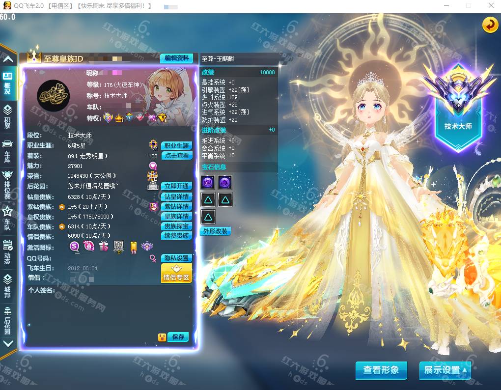 DS8888【电信一区】寄售,电信带id:阎王,魅力红人,赛车红人,2730天钻皇,荣誉5313万,公开赛S2皇冠,全国公开赛冠军背景,名人堂选手,134页男装,3稀世,41页上装,男大天使翅膀,3T3,圣域炽天使满四,29三四级上古魔尊,29三四级创世之神,43S,19T,50A,29双四至尊涅槃,29双四爆天雷诺,29双四至尊盘龙,29双四至尊爆天甲,29双四终极众神之神,29双四黑曼巴,29双四众神之神麒麟,29光明之神,29终极银天使,29魅影M20,29争锋者,29双四终极爆天甲,29双四暗影龙骑,29双四终极烈焰新星,29双四终极猛兽,29双四黑鱼电摩,29四重毁灭者,29地狱火,29双四朋克爆天甲,29终极鬼战刀,29终极迈凯伦,29暗夜幽灵,29圣骑士,29风行者,29白龙马,猪八戒,29千机变永久雷诺,11雷诺,37座椅,骑宠:+10牛牛,+10子鼠,+10梅林,+10小太郎,黄金+10,5条龙,圣光大天使,+10小吕布,17个天生骑宠,其他游戏有很多,166666R